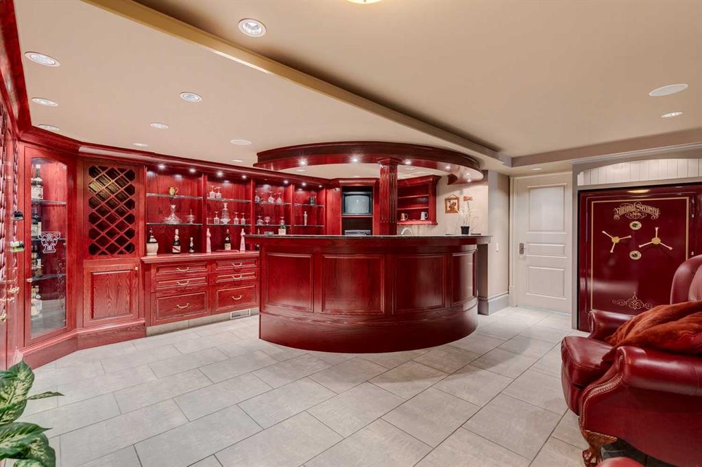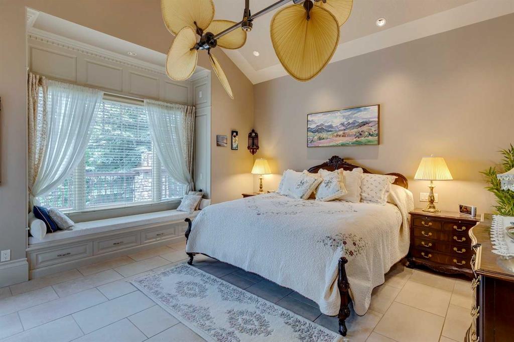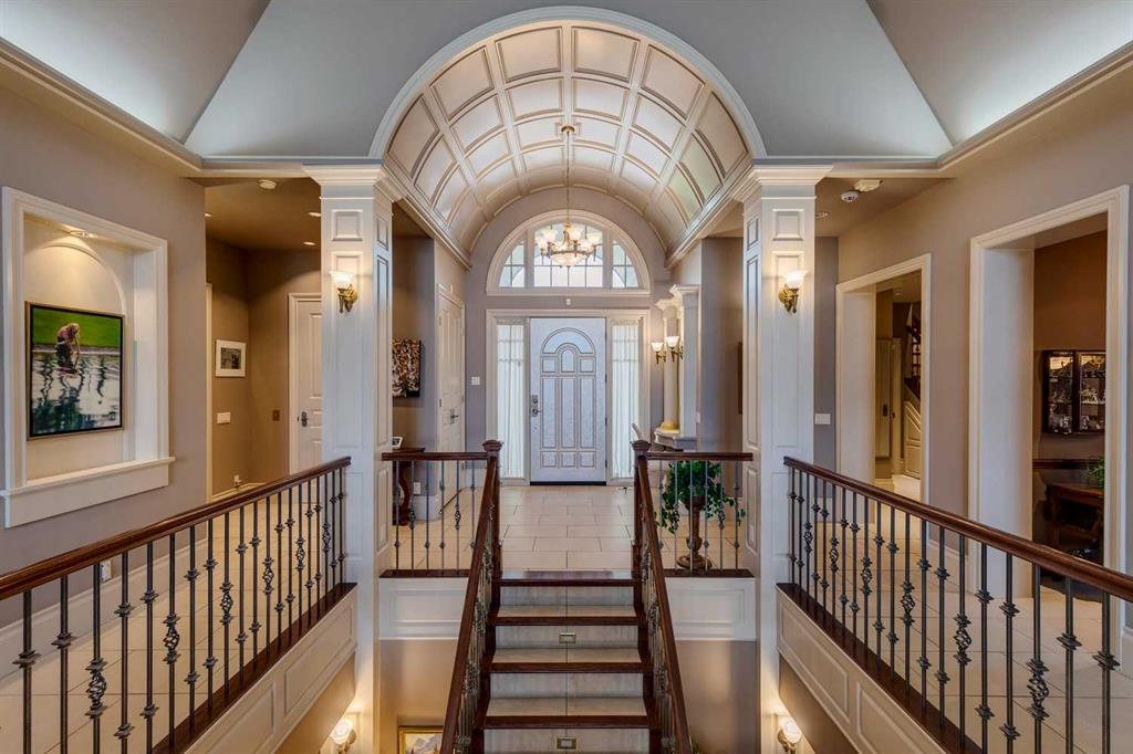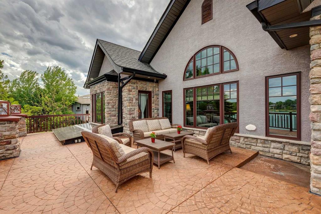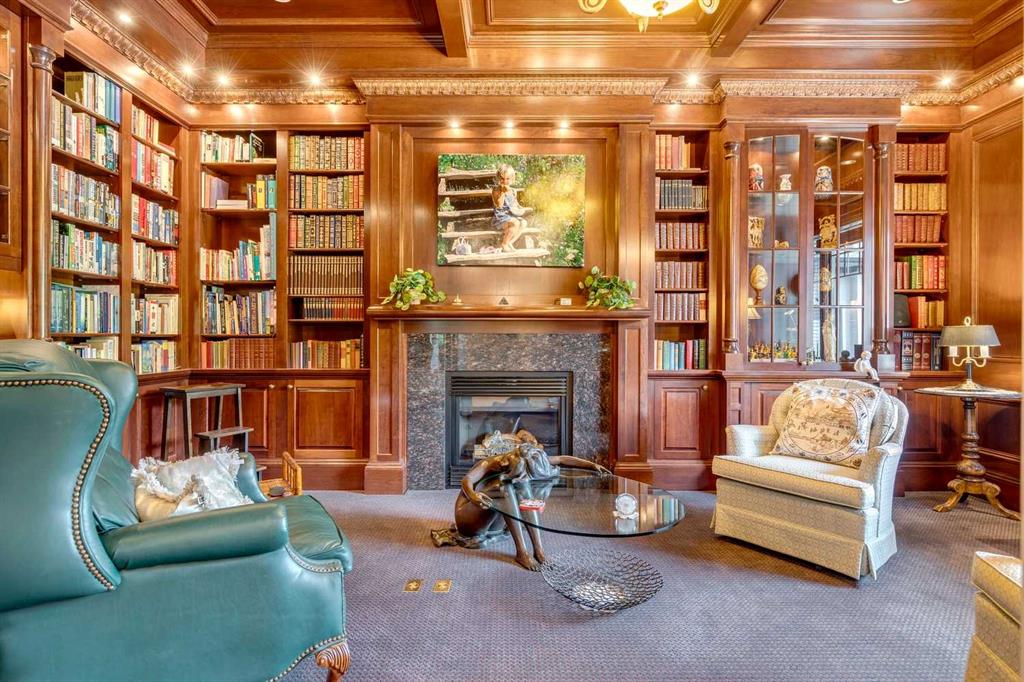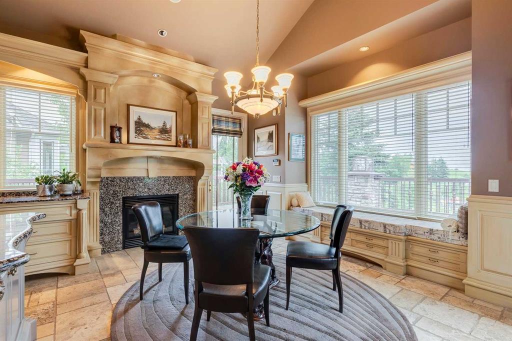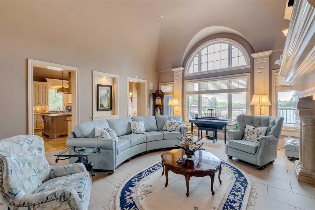 Discover one of the most iconic estate homes offered in prestigious Elbow Valley Estates—an extraordinary custom residence that combines European grandeur, architectural artistry, and exceptional craftsmanship. Perfectly positioned on a private lakefront lot, this executive walkout bungalow offers over 8000 square feet of exquisitely developed living space, designed with precision over years of thoughtful planning and executed by master artisans. From the moment you enter the grand foyer with its coffered and barrel-vaulted ceilings, it’s clear this is a home unlike any other. The main level features a sun-drenched great room with a double-sided fireplace and expansive windows framing unobstructed lake views. The heart of the home is the richly appointed ‘French Manor’ inspired kitchen—equipped for grand-scale entertaining with granite countertops, top-tier appliances including a Sub-Zero refrigerator, gas range with pot filler, two dishwashers, and a walk-in pantry. A cozy breakfast nook with fireplace and access to the expansive upper deck provides the perfect spot for morning coffee overlooking the water (with handi-cap access). An elegant formal dining room with custom glass cabinetry, a fully paneled library/office with fireplace, and a large laundry/sewing/hobby room complete the main level. A reverse osmosis water system is conveniently located in the craft room. The luxurious primary suite is a private sanctuary, featuring a vaulted sleeping area, two-way fireplace, and a spa-inspired circular ensuite with bubbling soaker tub, walk-in shower, dual vanities, and a generous dressing room with built-ins. The suite also offers deck access to enjoy tranquil lake views. A versatile loft functions as a full office or creative workspace, complete with multiple workstations—ideal for today’s remote professional or growing family. The lower level is designed for recreation and relaxation, boasting an authentic English-style pub with a full wet bar, games room, media/theatre room, and three additional spacious bedrooms—each with their own private ensuite and walk-in closet. Three solariums enhance the lower level, offering a fully enclosed hot tub retreat, home gym, and peaceful sitting room, all flooded with natural light. This remarkable residence is equipped with countless thoughtful upgrades, including two newer air conditioning units, newer hot water tank and sump pump, new sinks and hardware in the craft room and kitchen . The property also features a recently serviced irrigation system. Designed for effortless living, this home includes hydronic in-floor heating on all levels, a dramatic central staircase, private elevator, and a heated triple garage. Every detail reflects unparalleled quality and meticulous attention throughout. Outdoor living is equally exceptional, with sweeping views of the lake and beautifully landscaped grounds—an entertainer’s dream and a private oasis.