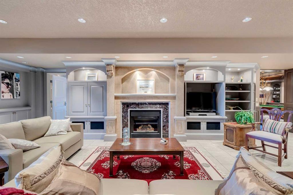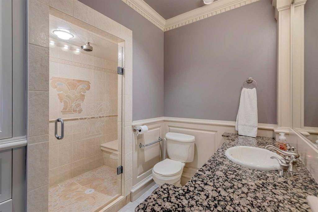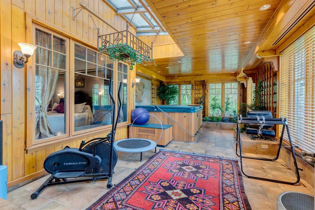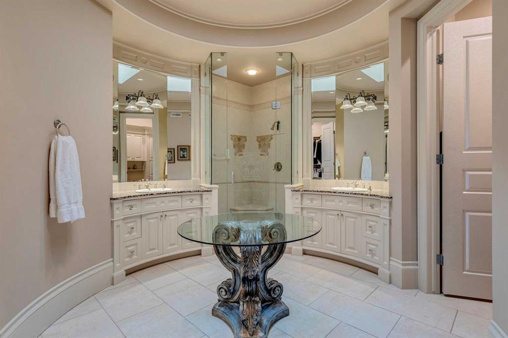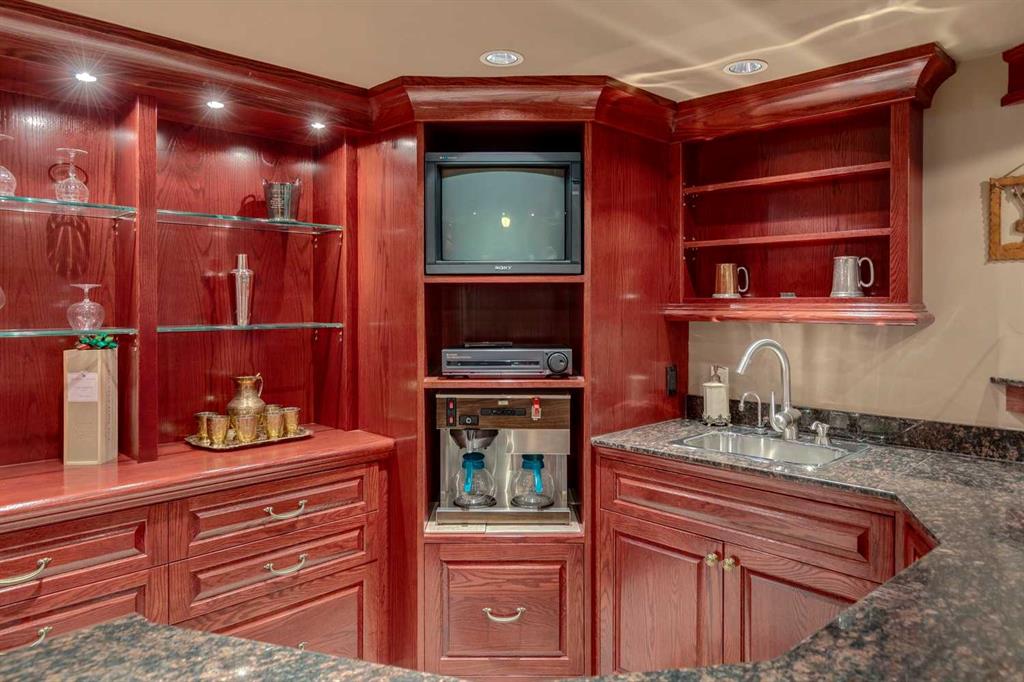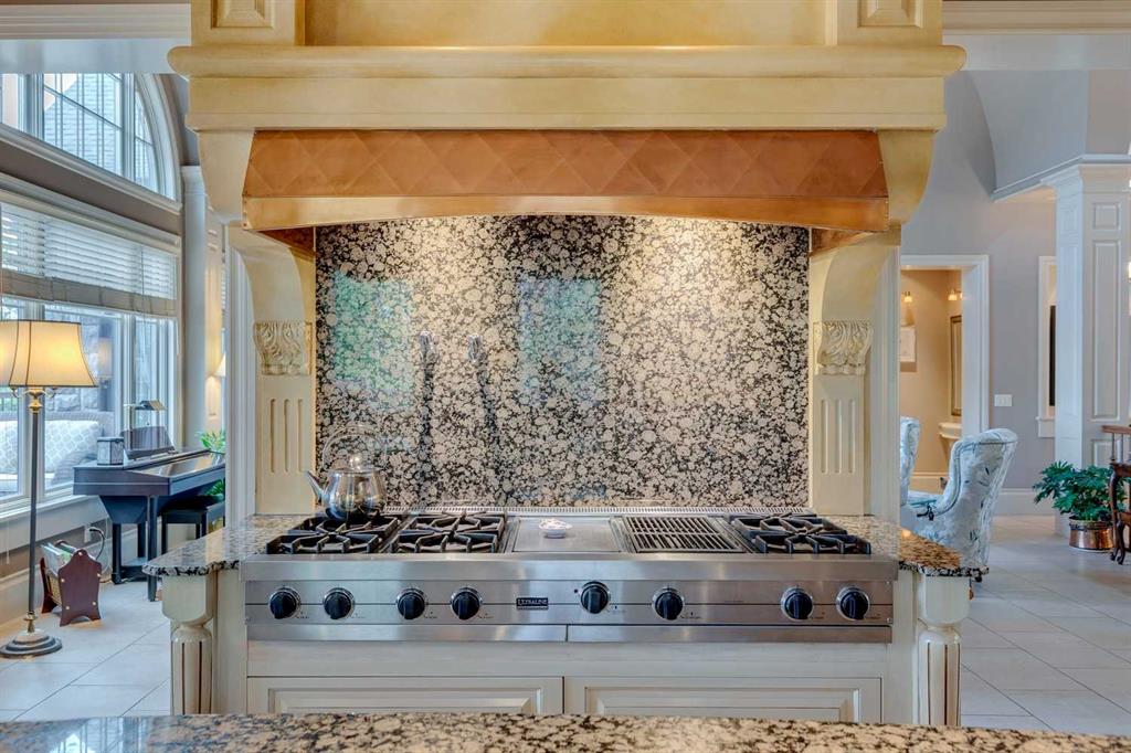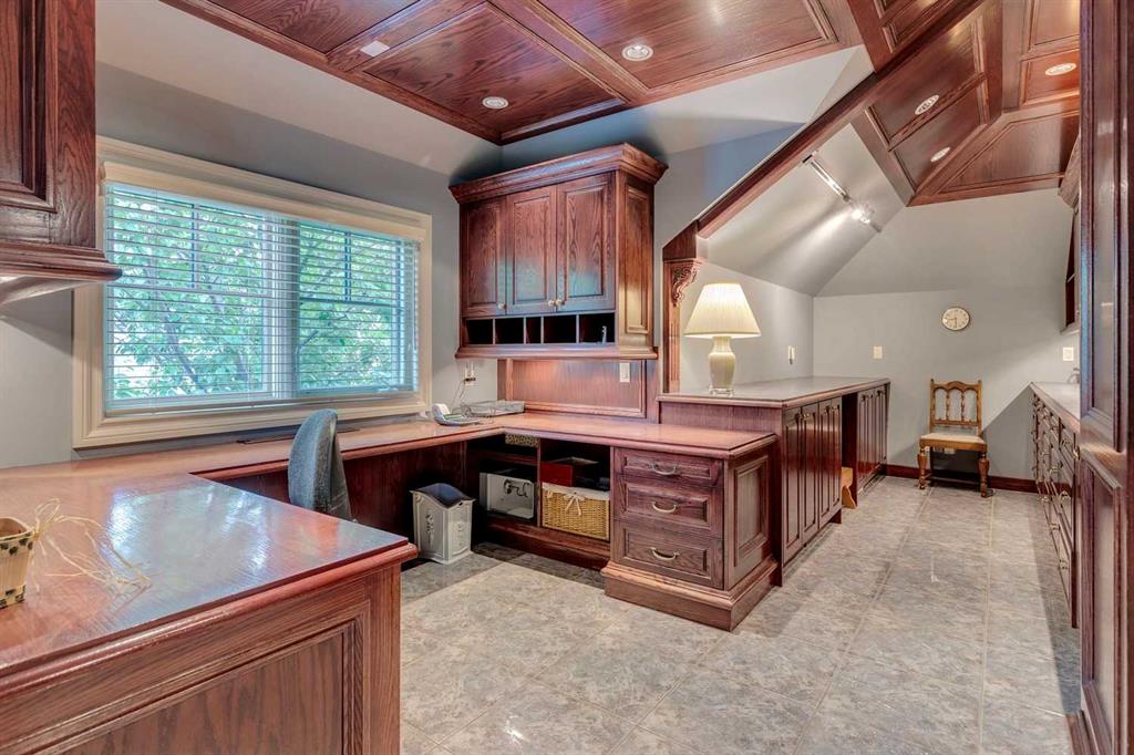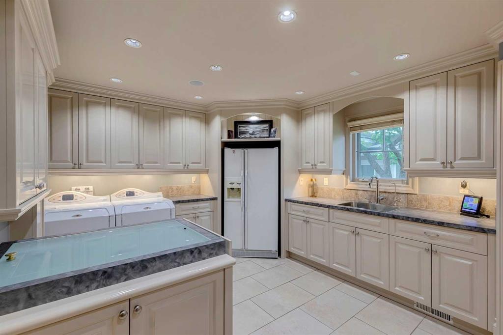 Discover one of the most iconic estate homes offered in prestigious Elbow Valley Estates—an extraordinary custom residence that combines European grandeur, architectural artistry, and exceptional craftsmanship. Perfectly positioned on a private lakefront lot, this executive walkout bungalow offers over 8000 square feet of exquisitely developed living space, designed with precision over years of thoughtful planning and executed by master artisans. From the moment you enter the grand foyer with its coffered and barrel-vaulted ceilings, it’s clear this is a home unlike any other. The main level features a sun-drenched great room with a double-sided fireplace and expansive windows framing unobstructed lake views. The heart of the home is the richly appointed ‘French Manor’ inspired kitchen—equipped for grand-scale entertaining with granite countertops, top-tier appliances including a Sub-Zero refrigerator, gas range with pot filler, two dishwashers, and a walk-in pantry. A cozy breakfast nook with fireplace and access to the expansive upper deck provides the perfect spot for morning coffee overlooking the water (with handi-cap access). An elegant formal dining room with custom glass cabinetry, a fully paneled library/office with fireplace, and a large laundry/sewing/hobby room complete the main level. A reverse osmosis water system is conveniently located in the craft room. The luxurious primary suite is a private sanctuary, featuring a vaulted sleeping area, two-way fireplace, and a spa-inspired circular ensuite with bubbling soaker tub, walk-in shower, dual vanities, and a generous dressing room with built-ins. The suite also offers deck access to enjoy tranquil lake views. A versatile loft functions as a full office or creative workspace, complete with multiple workstations—ideal for today’s remote professional or growing family. The lower level is designed for recreation and relaxation, boasting an authentic English-style pub with a full wet bar, games room, media/theatre room, and three additional spacious bedrooms—each with their own private ensuite and walk-in closet. Three solariums enhance the lower level, offering a fully enclosed hot tub retreat, home gym, and peaceful sitting room, all flooded with natural light. This remarkable residence is equipped with countless thoughtful upgrades, including two newer air conditioning units, newer hot water tank and sump pump, new sinks and hardware in the craft room and kitchen . The property also features a recently serviced irrigation system. Designed for effortless living, this home includes hydronic in-floor heating on all levels, a dramatic central staircase, private elevator, and a heated triple garage. Every detail reflects unparalleled quality and meticulous attention throughout. Outdoor living is equally exceptional, with sweeping views of the lake and beautifully landscaped grounds—an entertainer’s dream and a private oasis.