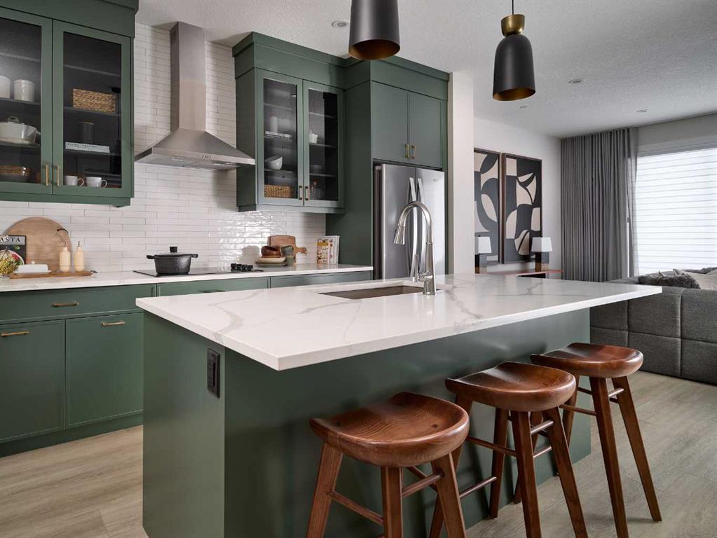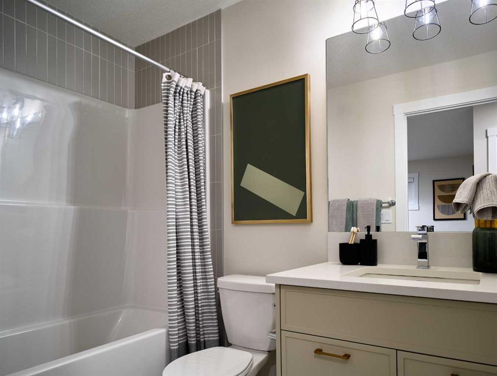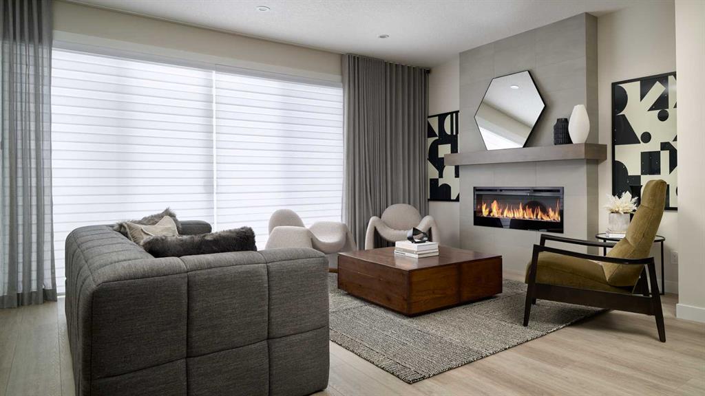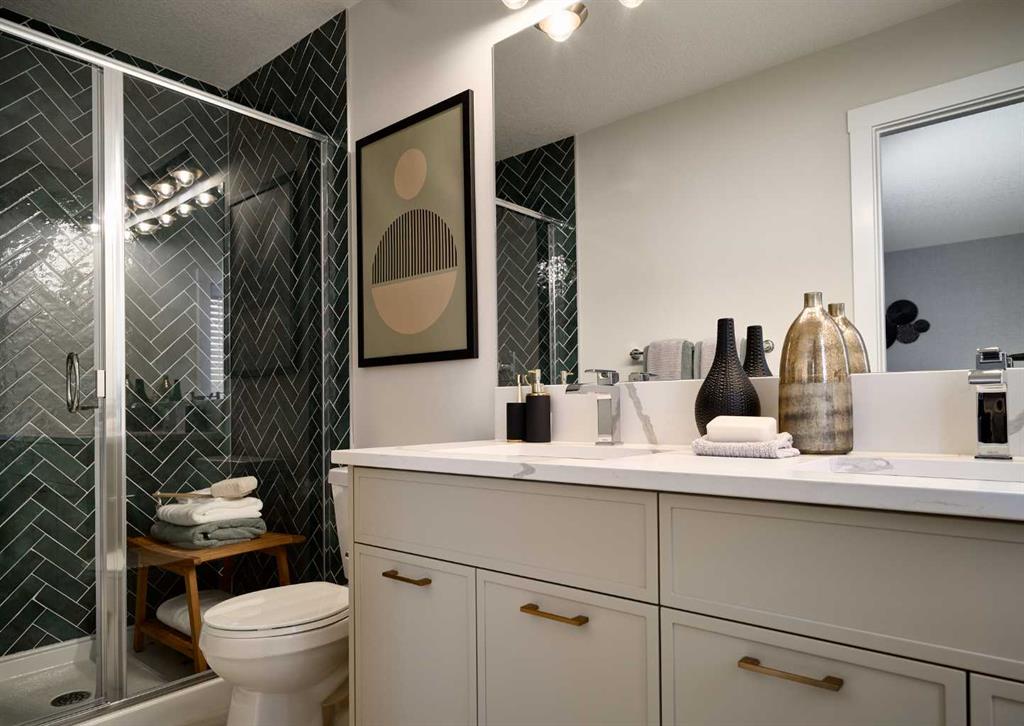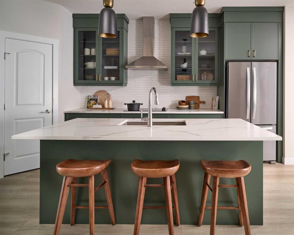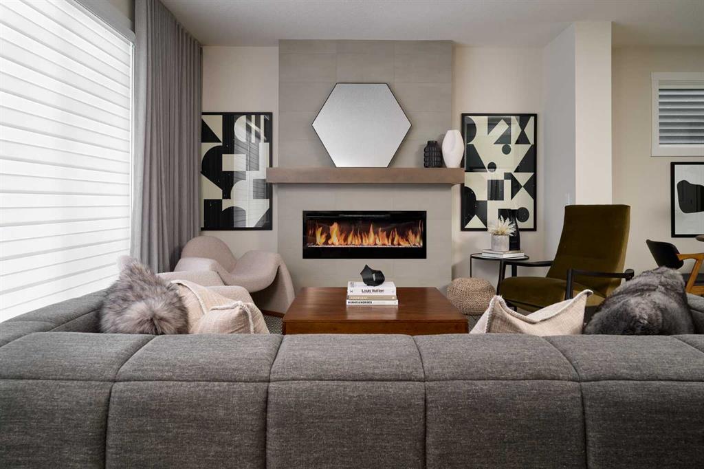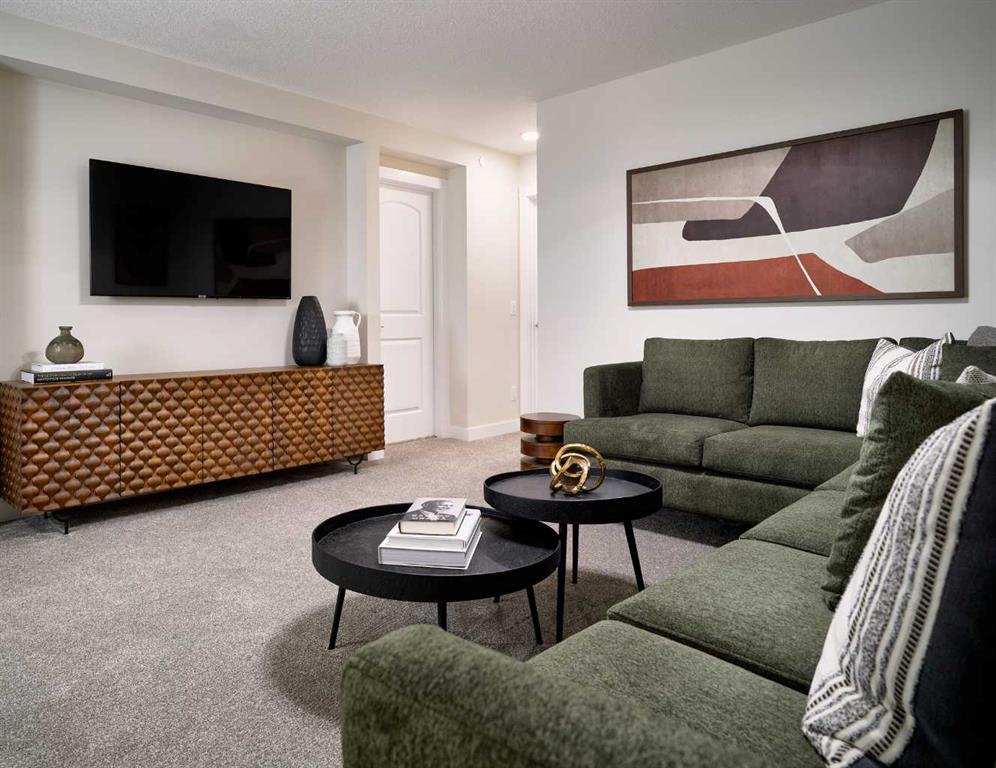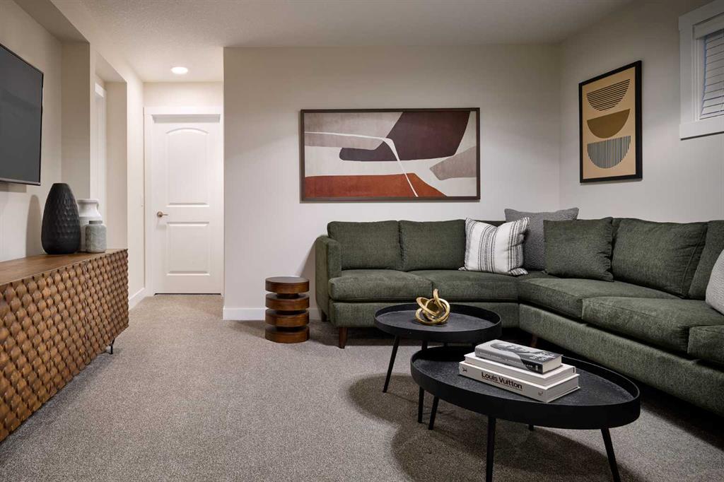 Welcome to the brand-new Carlisle II by Brookfield Residential in the sought-after community of Rockland Park. This thoughtfully designed home offers 3 bedrooms, 2.5 bathrooms, two spacious living areas, and a versatile flex room. At the front of the home, a bright flex space provides the perfect setting for a home office, playroom, or quiet reading area. The main level features a modern open-concept layout, with a central kitchen that overlooks the great room and dining area. The kitchen is equipped with stainless steel appliances, including a chimney-style hood fan and built-in microwave, along with a generous corner pantry for added storage. Upstairs, a large central bonus room creates an ideal separation between the primary suite and the secondary bedrooms, making it a perfect space for a media or family room. The spacious primary retreat includes a walk-in closet and a well-appointed ensuite with a tiled shower. Two additional bedrooms, a full 4-piece bathroom, and a convenient upper-level laundry room complete the second floor. The basement is unfinished but features 9-foot ceilings, offering excellent potential for future development. Additional highlights include a gas line rough-in for a range, a BBQ gas line at the rear of the home, and barn doors for the flex room. The backyard is ready for your personal touch and includes a double parking pad. This brand-new home comes complete with full builder warranty and Alberta New Home Warranty coverage.