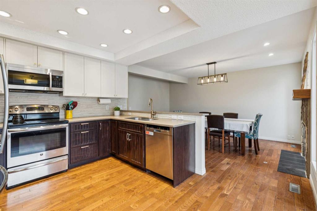 Welcome to your bright and breezy family haven in Woodbine—where comfort, style, and practicality all decided to move in together….Step inside to a main floor that feels instantly welcoming, with vaulted ceilings and a beautiful bay window that drenches the living room in natural light. Rich hardwood flooring leads you into the dining area, where a modern chandelier sets the mood and an impressive stone-faced fireplace adds both warmth and a touch of drama….The updated kitchen is ready for both everyday meals and weekend entertaining, featuring stainless steel appliances and a raised breakfast bar that overlooks the dining room—perfect for chatting with guests or supervising homework while you cook….Head upstairs to find three generously sized bedrooms. The serene primary retreat offers a walk-in closet and a private full ensuite, creating your own little escape at the end of the day. Two additional bright bedrooms share another full bathroom, giving everyone space and privacy (and reducing the morning line-up)….Everyday living is made easier with a convenient main-floor laundry room, complete with a modern LG washer and dryer—because hauling baskets up and down stairs is overrated….Outside, the backyard is truly an extension of your living space. A fully fenced yard offers peace of mind, while the wooden deck and permanent pergola over the paved patio set the stage for al fresco dining, sunset lounging, or a quiet coffee before the day begins. The massive children’s play structure will make you very popular with the younger crowd….The basement offers a flexible space that can adapt as your life does—home office, gym, hobby room, or extra storage—it’s ready for whatever you need…A practical bonus: the double attached garage keeps your vehicles warm, your storage organized, and your snow shoveling time to a minimum….Set in the established community of Woodbine, this home enjoys a prime southwest location. You’re conveniently close to the Ring Road, giving you easy commuting access around the city and a quick escape to the west and the mountains for weekend adventures. Adjacent to the community, Fish Creek Provincial Park offers endless nature trails, biking paths, and river views—so you can trade screen time for green time in just a few minutes…Tucked on a quiet, family-friendly crescent, with nearby schools, parks, major transit routes, and essential amenities, this is a home where everyday life becomes just a little more effortless—and a lot more enjoyable.