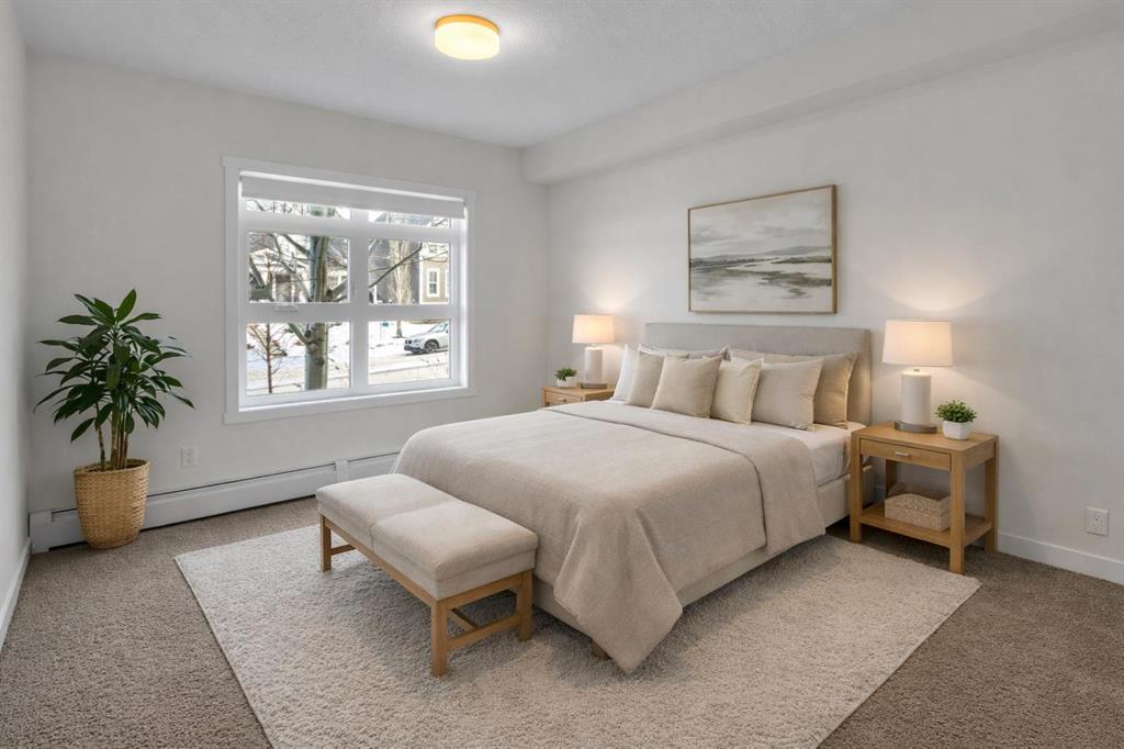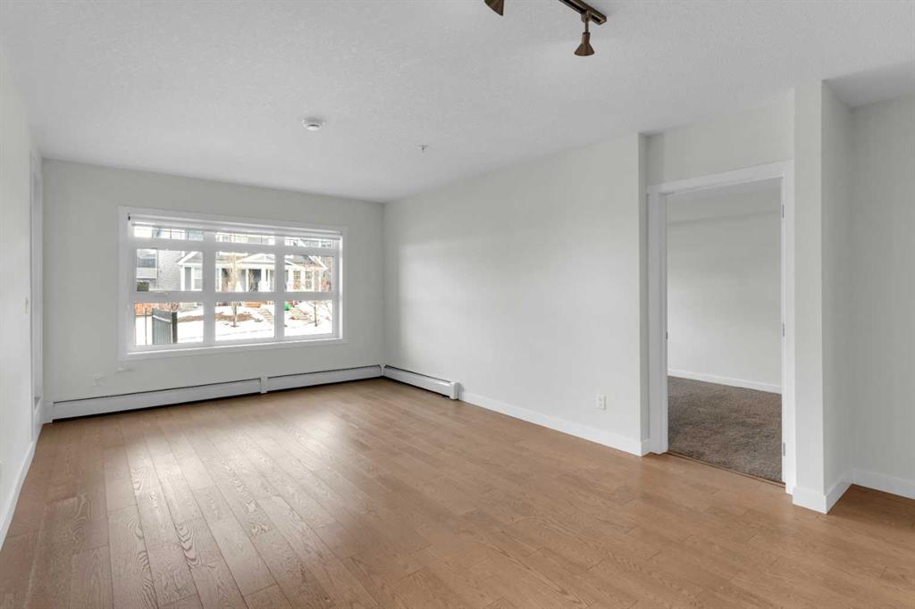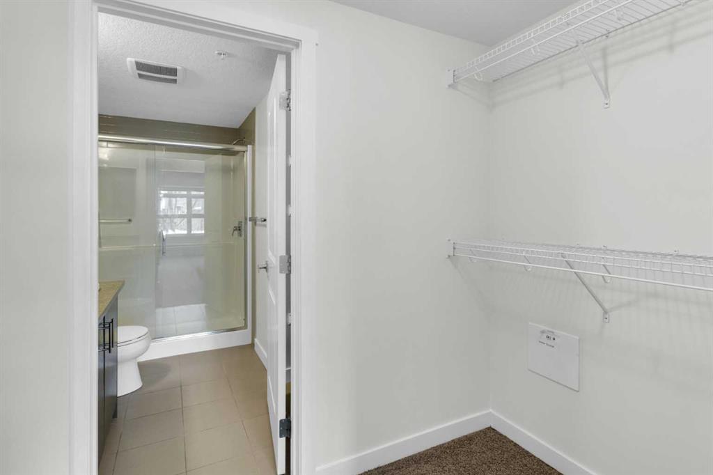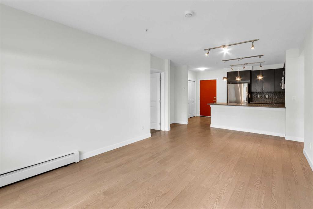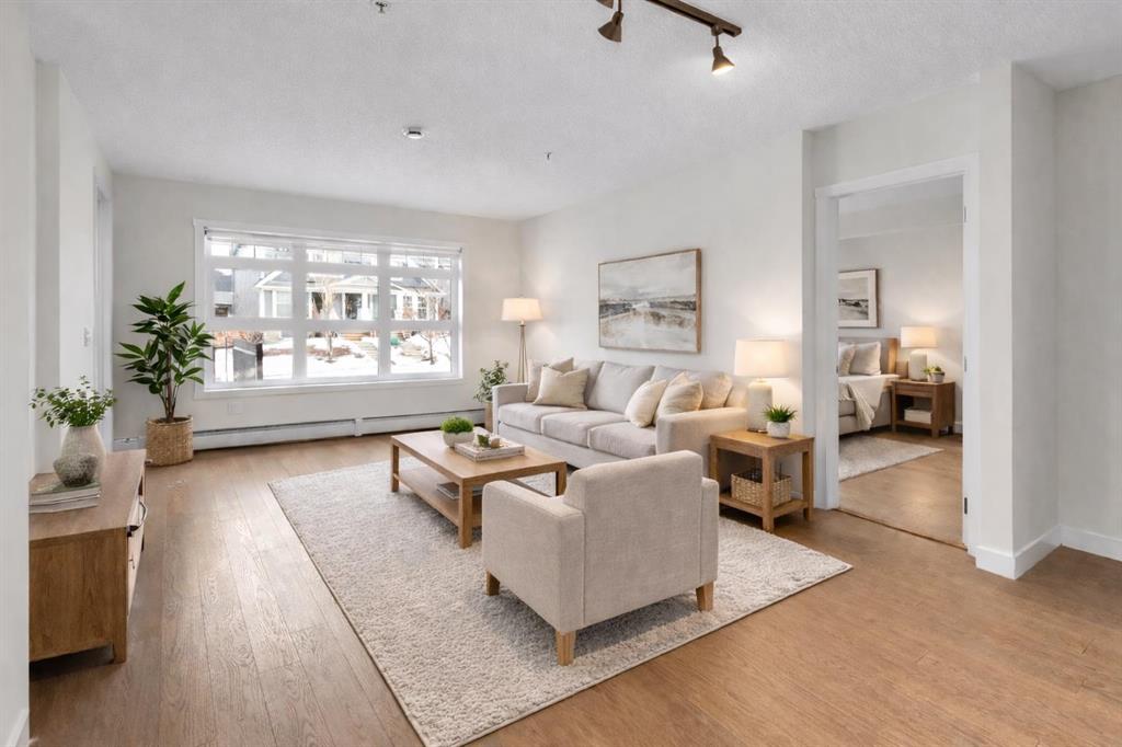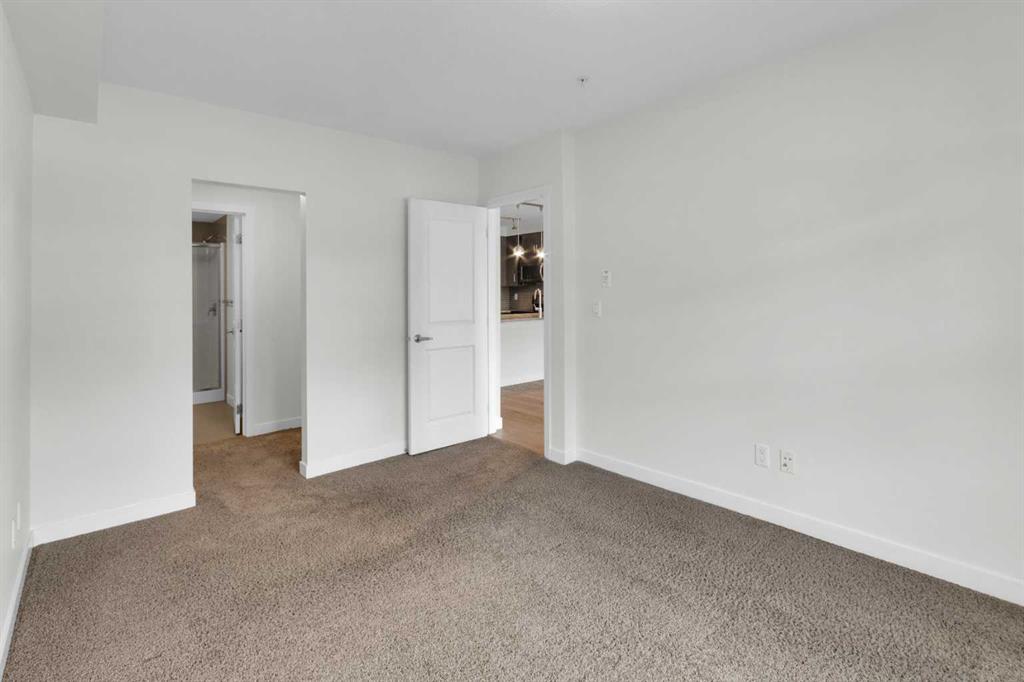 The open-concept layout features a modern kitchen with dark cabinetry, stainless steel appliances, tile backsplash, and granite countertops, along with a spacious peninsula with seating — perfect for everyday living or entertaining. The living area is filled with natural light and flows seamlessly to your private outdoor space. Durable laminate flooring runs throughout the main living areas, creating a clean and cohesive look, while both bathrooms feature tile flooring for added durability and style. The primary bedroom includes a walk-through closet and private 4-piece ensuite. The second bedroom is thoughtfully positioned on the opposite side of the unit, ideal for guests, a roommate, or a home office. A second full bathroom and in-suite laundry complete the interior. This unit also includes one titled underground parking stall and assigned storage for added convenience. Located just steps from shopping, restaurants, transit, and with full access to Auburn Bay Lake amenities, this is an excellent opportunity for first-time buyers, investors, or those looking to downsize.