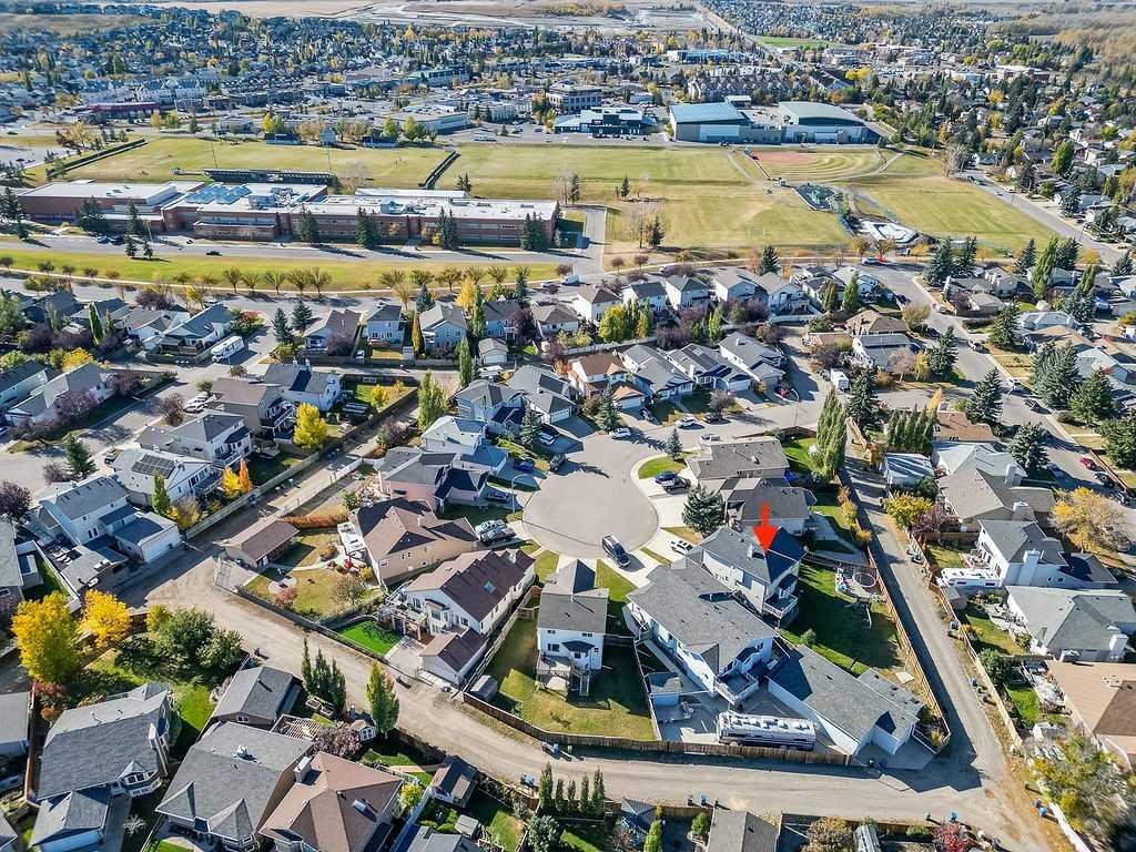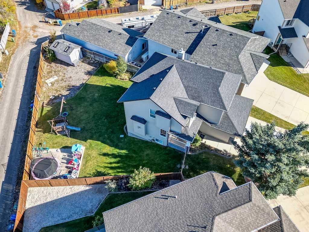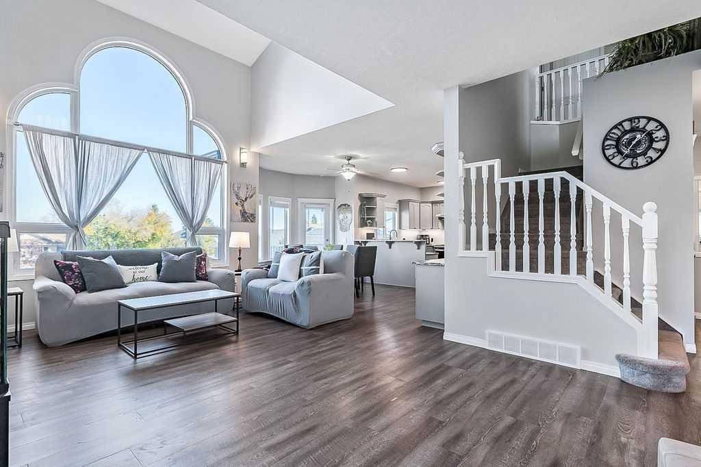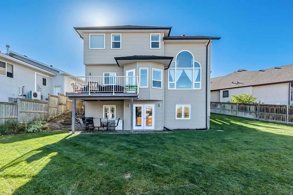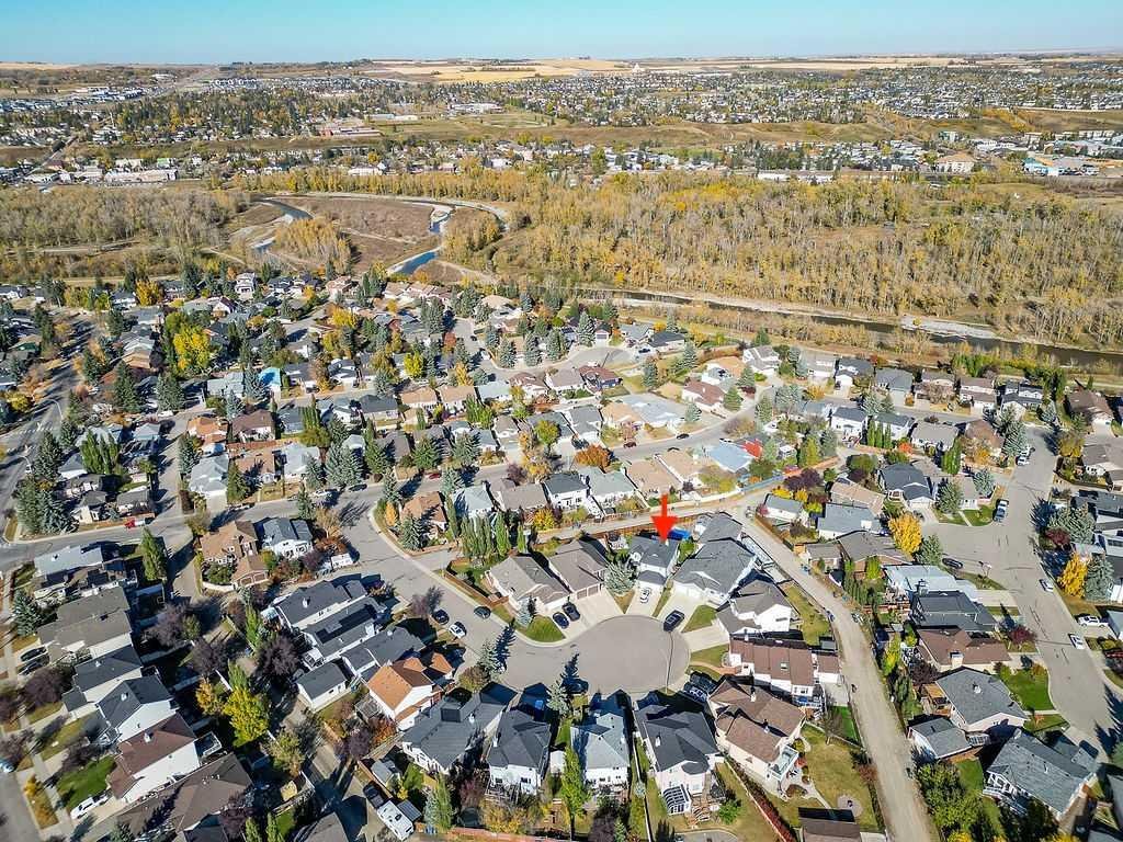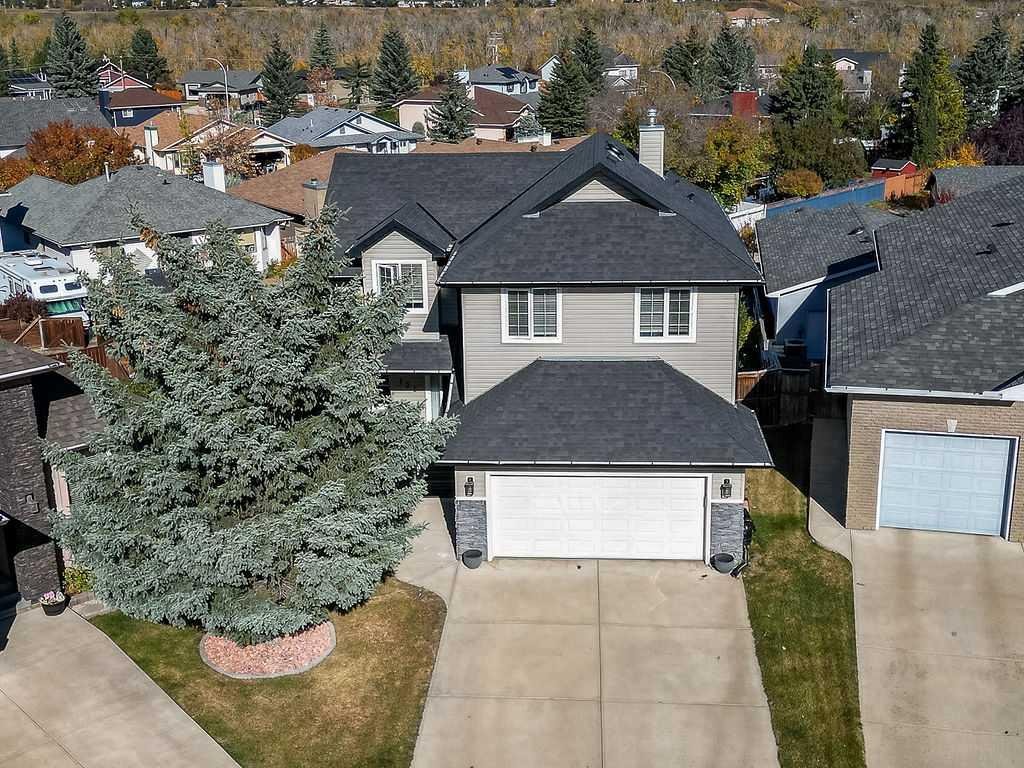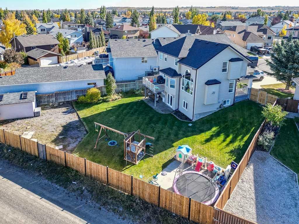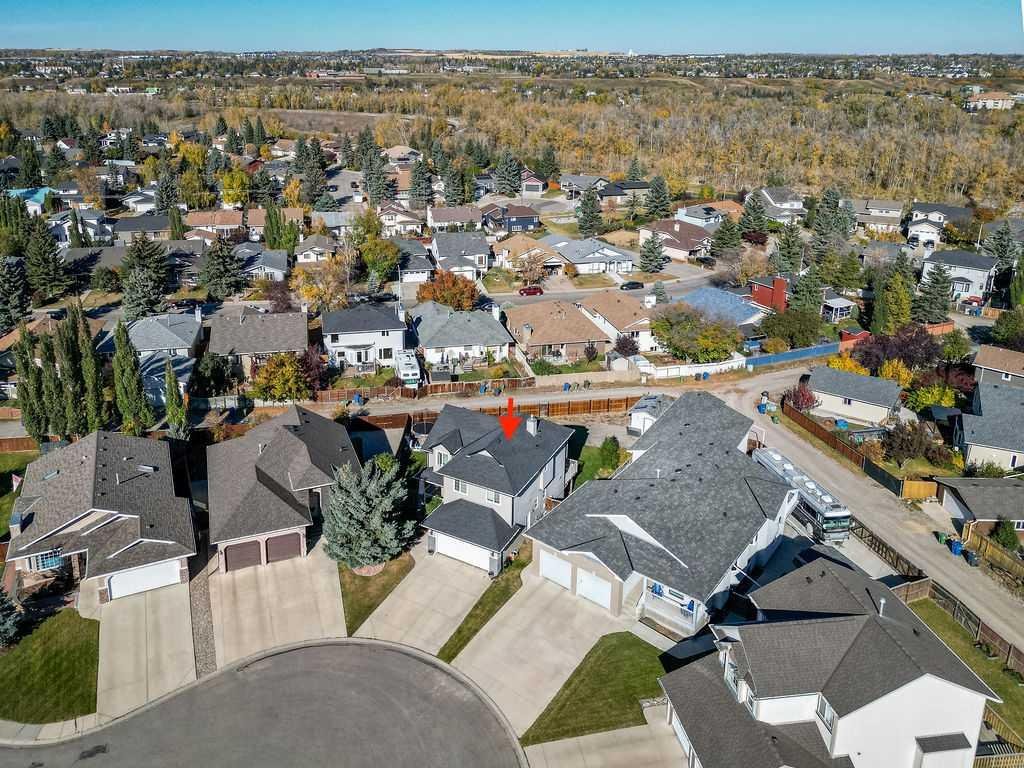 Beautiful Family Home on a Quiet Cul-de-Sac in Okotoks! Welcome to this stunning, fully finished home perfectly situated in a family-friendly cul-de-sac, tucked away from all the hustle and bustle of town. Sitting on an enormous pie lot, there’s plenty of room for the kids to play, entertain friends, or simply relax and enjoy the peaceful surroundings. As you arrive, a charming wrap-around veranda sets the tone for this warm and inviting property. Step inside to find large windows flooding the home with natural light, and tasteful updates throughout, including fresh paint and newer flooring. The main level features a bright, open living area that flows seamlessly into the kitchen complete with stainless steel appliances — perfect for family meals and gatherings. Upstairs, you’ll find a beautiful vaulted bonus room that’s open to below, creating a spacious, airy feel. The primary bedroom is thoughtfully tucked away at the back of the home for added privacy, featuring plenty of closet space and a luxurious 5-piece ensuite. Two additional bedrooms and a full bathroom complete the upper level. The fully finished lower level includes an office space that could easily be converted into a fifth bedroom, an additional bedroom, a 3-piece bathroom, and a large family room with walkout access to the perfectly manicured backyard. Additional highlights include in-floor heat, air conditioning, trendy soffit lights , and pride of ownership throughout. This is the perfect place to call home — a quiet retreat with space to grow, play, and make memories in one of Okotoks’ most welcoming neighbourhoods.