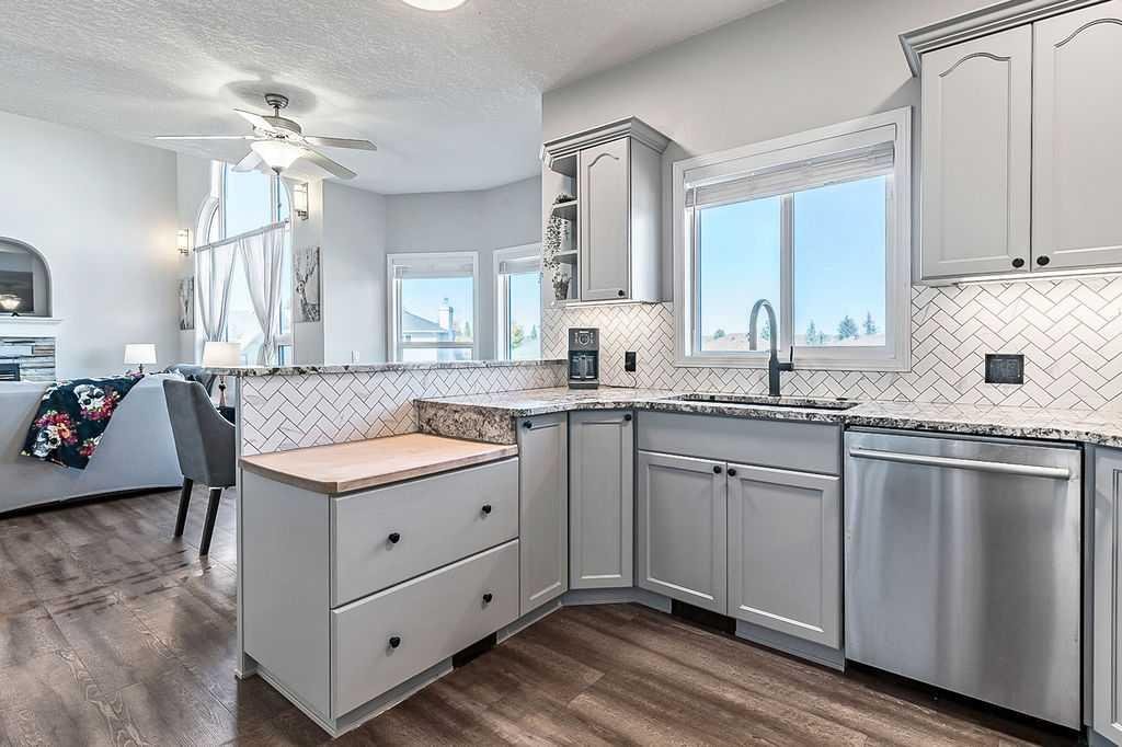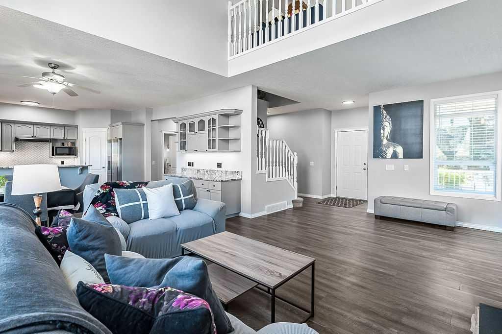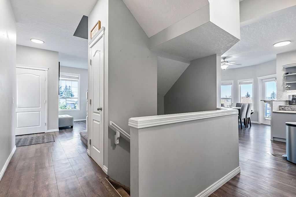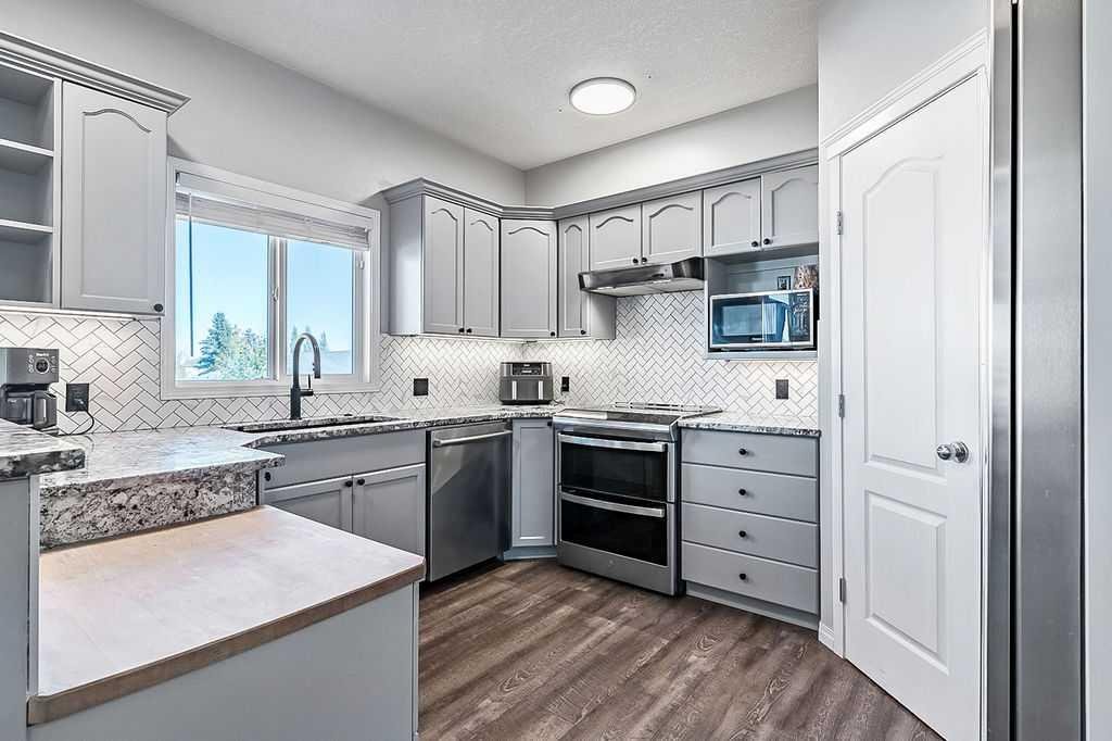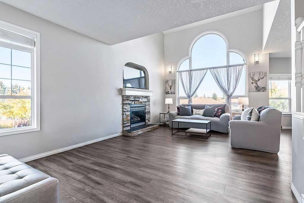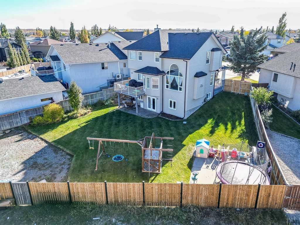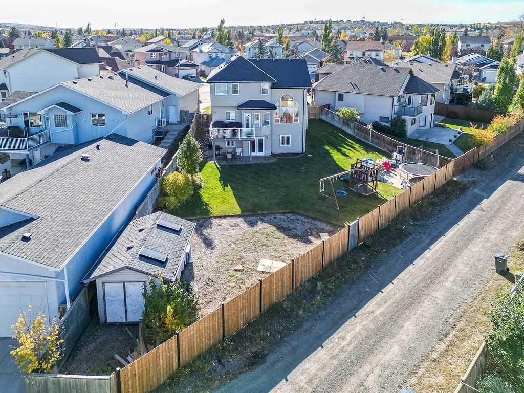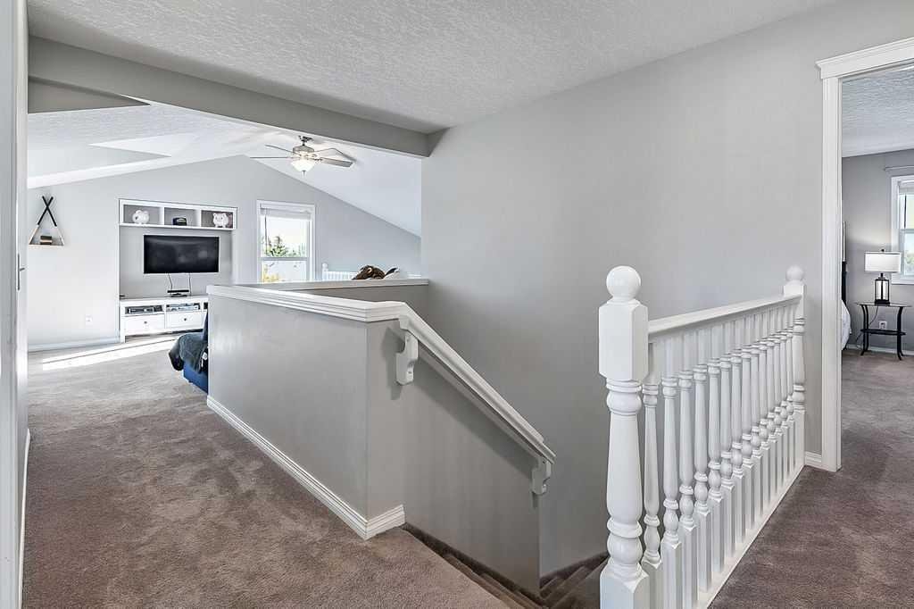 Beautiful Family Home on a Quiet Cul-de-Sac in Okotoks! Welcome to this stunning, fully finished home perfectly situated in a family-friendly cul-de-sac, tucked away from all the hustle and bustle of town. Sitting on an enormous pie lot, there’s plenty of room for the kids to play, entertain friends, or simply relax and enjoy the peaceful surroundings. As you arrive, a charming wrap-around veranda sets the tone for this warm and inviting property. Step inside to find large windows flooding the home with natural light, and tasteful updates throughout, including fresh paint and newer flooring. The main level features a bright, open living area that flows seamlessly into the kitchen complete with stainless steel appliances — perfect for family meals and gatherings. Upstairs, you’ll find a beautiful vaulted bonus room that’s open to below, creating a spacious, airy feel. The primary bedroom is thoughtfully tucked away at the back of the home for added privacy, featuring plenty of closet space and a luxurious 5-piece ensuite. Two additional bedrooms and a full bathroom complete the upper level. The fully finished lower level includes an office space that could easily be converted into a fifth bedroom, an additional bedroom, a 3-piece bathroom, and a large family room with walkout access to the perfectly manicured backyard. Additional highlights include in-floor heat, air conditioning, trendy soffit lights , and pride of ownership throughout. This is the perfect place to call home — a quiet retreat with space to grow, play, and make memories in one of Okotoks’ most welcoming neighbourhoods.