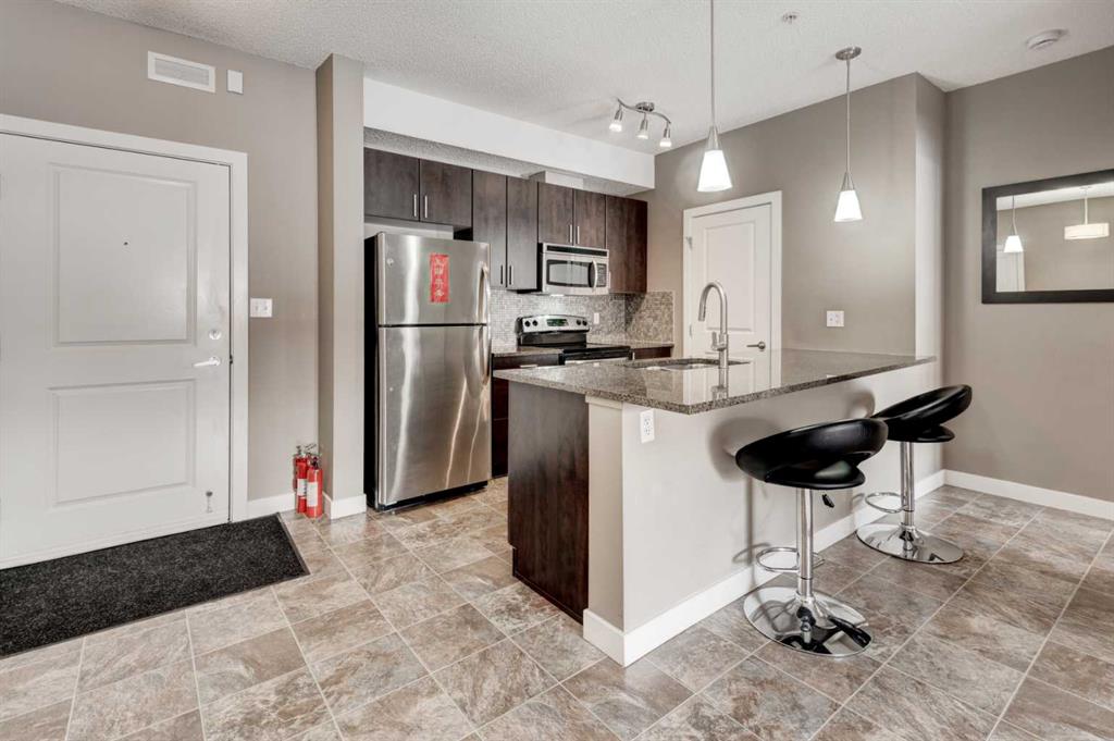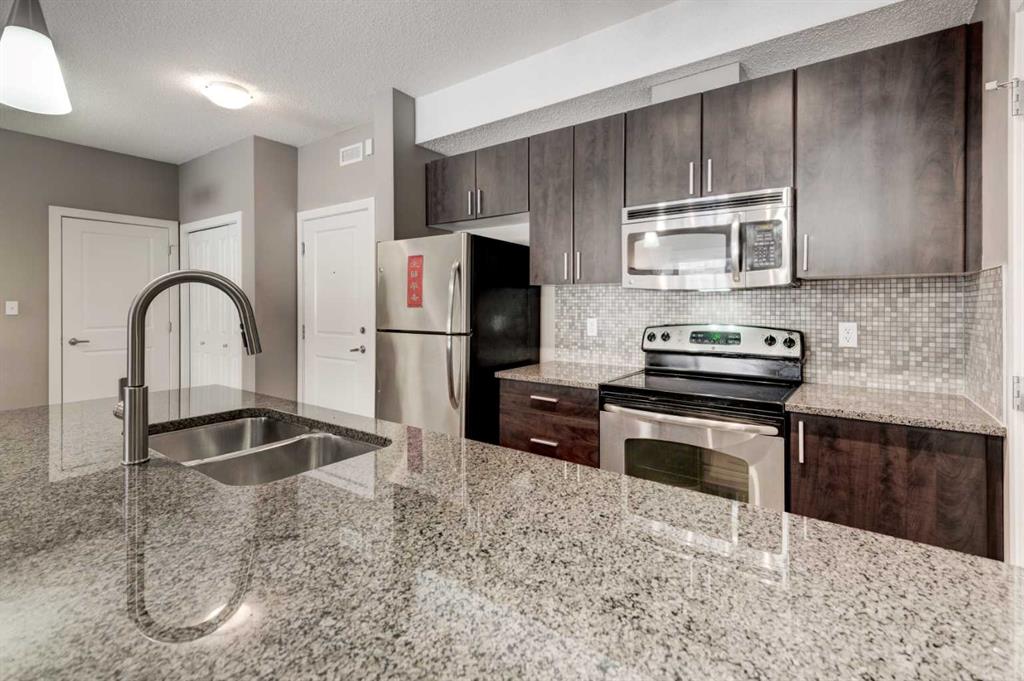 Aggressively priced below City’s assessments of $ 446,000, & Condo fee is ALL UTILITY INCLUSIVE! Well kept 2 twin masters (2 baths), 2 titled parking stalls & storage. Unit facing courtyard’s open space with park-like view. Bright & spacious Unit with ample kitchen cabinets, granite countertops, stainless steel appliances, separate walk-in pantry & breakfast bar. Thoughtful designed Living Room layout for furniture / own comfort & entertaining – that leads to the outdoor large covered concrete patio with gas line hookup. 9′ ceiling Floor Plan with 2 bedrooms separated for max. privacy – ideal for empty nest / retired / roommate sharing or even double-up. Professionally managed complex: Amenity Building (access from the side Lower entrance facing the surface Visitors Parking) – with a fully equipped gym / change rooms, & private Party Room with kitchen…. Easy access to everywhere, & close proximity to transportation (within walking distance to Shawnessy and Fish Creek LRT Stations) / schools / shopping & all amenities…. ** Realtors: Please note Private Remarks – few hours’ showing Notice req’d. **