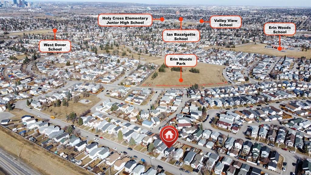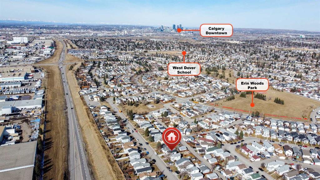 Welcome to 126 Erin Road SE, a well-maintained two-storey home offering 4 bedrooms and a functional layout. The main floor features a bright living room, dedicated dining area, and a practical kitchen, along with a convenient powder room, all finished with durable laminate and tile flooring. Upstairs, you’ll find three comfortable bedrooms and a full 4-piece bathroom, with continued laminate flooring throughout for a cohesive feel. The fully developed basement adds valuable living space with an additional bedroom, rec room, and storage area. Step outside to enjoy the backyard complete with a wood deck, shed, and rear alley access. Ideally located within walking distance to Erin Woods Park and Erin Woods School, with quick access to Peigan Trail, 52 Street, and Stoney Trail. Nearby schools include West Dover School, Ian Bazalgette School, Valley View School, and Holy Cross Elementary Junior High, making this a fantastic opportunity in a convenient, family-friendly community.