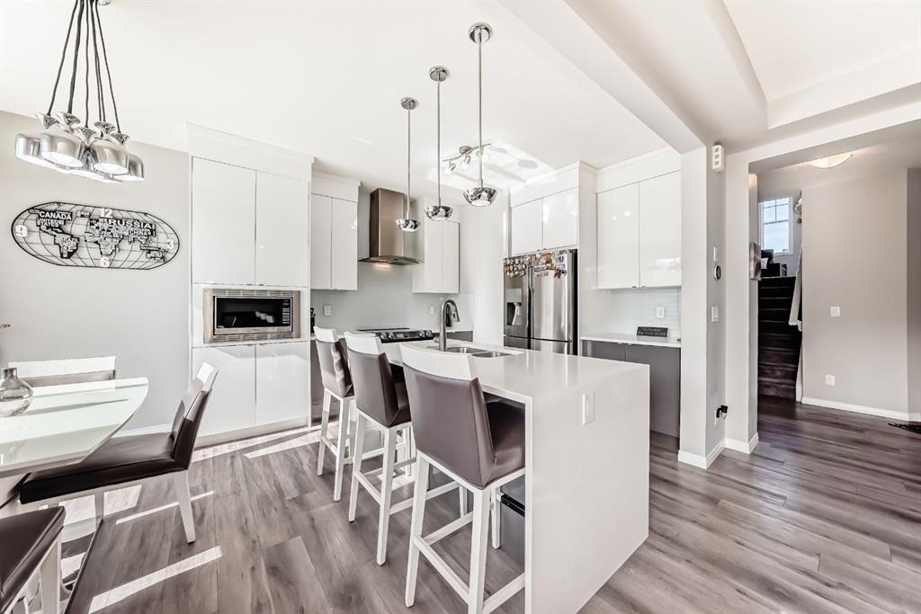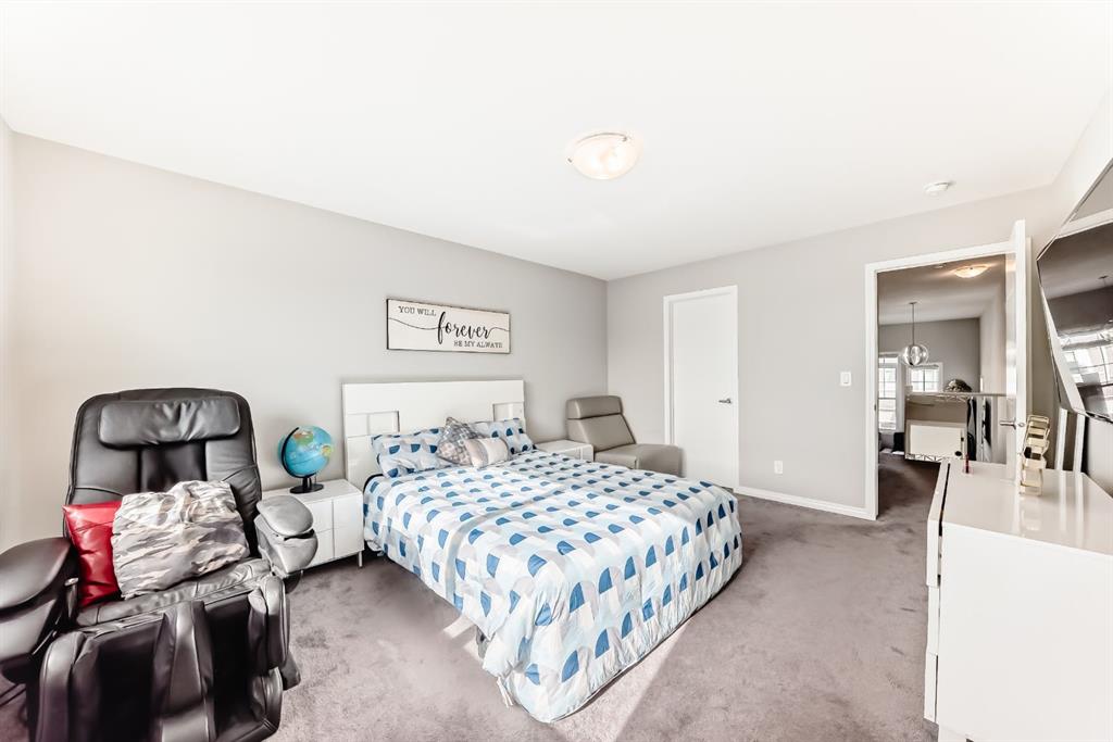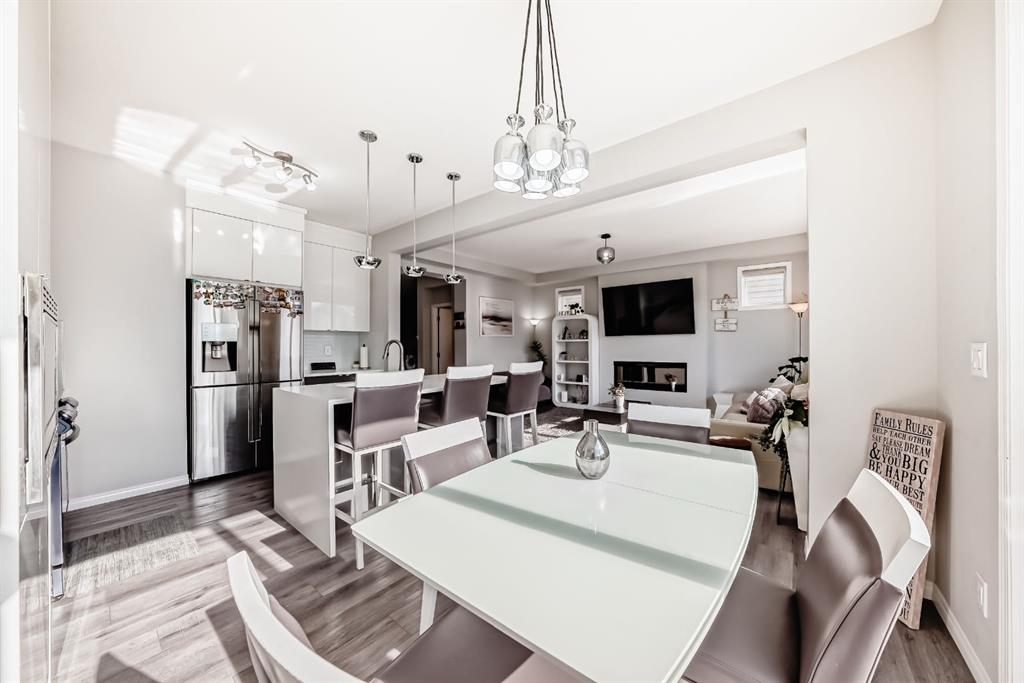 Public Remarks: Welcome to the desirable and sought after community of Carrington where this stunning and like-new, 2-storey Split level Dream home is sure to impress! Offering 3 + 1 beds, 3.5 baths, and a fully finished Legal Suite walk-up basement, this well-kept residence offers a perfect family environment! Walk up the foyer and enter the bright, open-concept main floor outfitted with beautiful wood vinyl flooring, walls painted with neutral tones that give that warm and homey vibe, and plenty of sunshine from the large windows. A fireplace, high-end light fittings around the living spaces. Central Air conditioning. The living room comes with an electric fireplace and is spacious enough to entertain a large number of guests on any occasion next to the dining area. Be inspired to cook delicious meals in the modern kitchen with gorgeous upgrades 2 tone, white and grey high gloss cabinetry adding brightness to the house accented by elegant drop pendant lighting, beautiful stainless steel kitchen appliances, and a quartz waterfall island. A garburator. Sliding doors in the dining area lead to a deck overlooking the large private fenced landscaped backyard. A 2pc powder room completes the main level. Upstairs, is a cozy great room ideal for any kind of recreational activities with the family, there’s a bonus kids’ play area attached to this loft too! As well as an access to the balcony where you can set a table and some comfortable chairs to create a perfect corner to unwind during sunny afternoons. Your private space awaits in the massive primary bedroom featuring a walk-in closet and a spa-like 5 pc ensuite (with extra large soaking tub). There are 2 more good-sized bedrooms on this floor plus a convenient upper-level laundry room with counter top and cabinets. Plenty of windows on all levels provide natural light throughout. The fully finished LEGAL basement is well designed and has a separate Walk up entrance complete with a living room and a bedroom for extra income option, and a 4 pc bathroom, it comes with its laundry, washer plus dryer. 2 extra storage areas under the stairs. There’s more space in the private landscaped yard with a deck for summer BBQs. So much space you can even set up a Gazebo Canopy perfect for hosting family and friends. Double attached garage that can house 2 cars and still has room for extra storage plus a full concrete driveway for extra parking. Located conveniently close to schools, transit, shopping, and all other amenities, this gem and rare find home provides all the elements for relaxing and comfortable living. Great value for this move-in-ready DREAM home in a terrific neighborhood! Call to book your appointment today! Listing realtor has interest in the property. * Refrigerator in Pictures is different. Brand new 2025 roof and some siding.