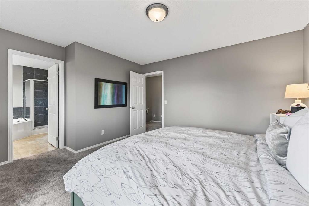 Tucked onto a quiet, family friendly street in the beautiful Lake Chaparral, this fully developed 2 storey home delivers the kind of space, upgrades, and backyard setting that’s hard to find. With over 2,300 sq ft of total developed space, this home offers tasteful renovations and pride of ownership throughout. The main floor has been completely elevated with a professionally renovated kitchen space, featuring quartz countertops, upgraded lighting, high-end appliances, built-in microwave, ceiling height shaker style cabinets and clever storage including deep appliance drawers. The layout flows into a bright living area with corner feature gas fireplace and dining space with soaring ceilings and oversized windows that bring in natural light year-round. A convenient laundry room/mudroom and 2 piece bath complete the level. Upstairs, you’ll find 3 bedrooms including a spacious primary retreat that easily fits a king-sized bed, complete with a walk-in closet and a refreshed ensuite with huge corner soaker tub. The additional bedrooms are generous and ideal for growing families. The fully finished basement adds additional versatility with a large rec room, fourth bedroom, full bathroom, and extra storage, ideal for guests, teens, or multi-purpose living. Where this home truly stands out is the backyard. Private, quiet, and lined with mature aspens, there are no direct rear neighbour allowing endless hours of afternoon sun. There’s alley access, plus the everyday convenience of back-lane garbage pickup. The yard itself is built for enjoyment, featuring raspberry bushes, a custom-built playhouse, and plenty of room to relax or entertain. Major updates have all been taken care of in the past 5 years, including the furnace, hot water tank, roof, and the addition of A/C. Durable German-made scratch-resistant flooring runs throughout, and bathrooms have been tastefully refreshed with a modern, bright feel. All of this in one of Calgary’s most established lake communities offering unlimited access to Chaparral Lake with tons of green space, and a true community feel. Enjoy summer beach days, winter skating and ice fishing, plus year-round programs and events. And with 2 schools nearby (one just a 5 minute walk), parks, playgrounds, and amenities all close by, the location checks every box. This Chaparral home checks the boxes buyers are waiting for!