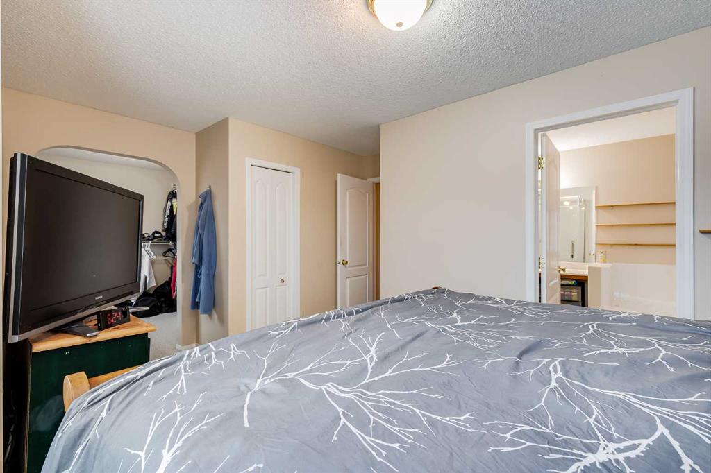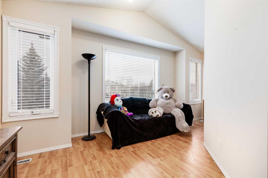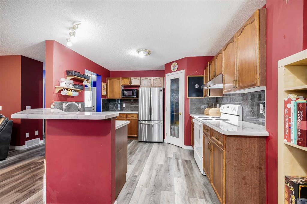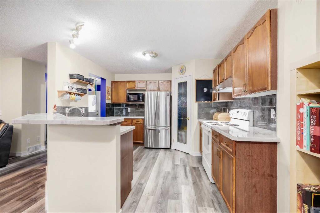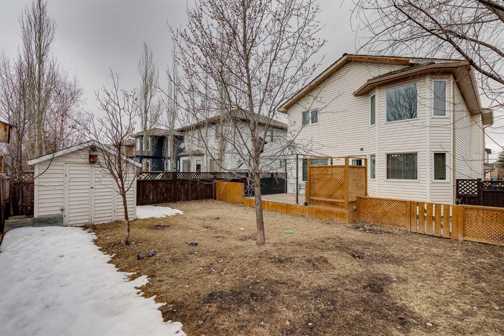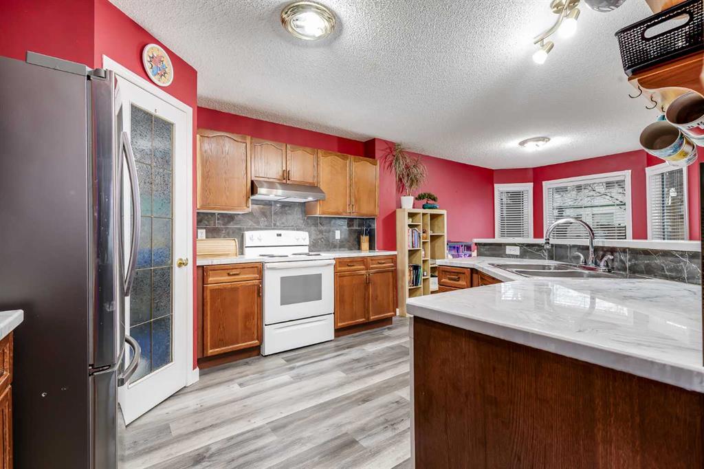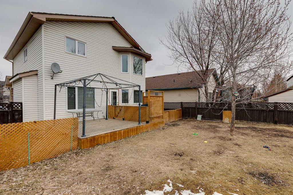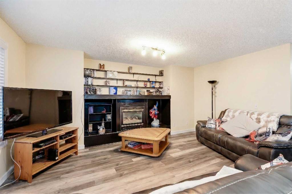 BRAND NEW TRIPLE PANE WINDOWS in this 5 Bedroom home in the Golf Community of Woodside in Airdrie. Tucked in a quiet street surrounded by the golf course, you’ll appreciate the slower pace of this mature neighbourhood. As you enter you’ll come to the oversized entrance way. Right away you’ll notice the new vinyl plank flooring. Moving through the main level you’ll come to the large living room, featuring a gas fireplace and built in shelving. The dining area is large enough for your family table, and the kitchen feature lots of cabinets, updated backsplash & countertops, and a large L-Shaped Island. Moving upstairs, you’ll find 4 BEDROOM UPSTAIRS, plus a bonus area as well. The master bedroom features a 4-Piece En-Suite with a New Oversized Shower & separate soaker tub, and a MASSIVE WALK-IN CLOSET! The 3 other bedrooms up here are all good sized for kids, office space, or guest room. Moving downstairs to the fully finished basement you’ll come to a great sized family room, and a large basement bedroom featuring another Huge Walk-In Closet, and a 3-Piece En-Suite. Don’t forget the NEW FURNACE down here as well. Moving out to the SOUTH FACING BACKYARD you’ll first notice the large mature trees, providing plenty of summertime privacy. The wood deck lowers onto a stone patio, with lots of grass space for kids or dogs completing the rest of the yard. Full sun back here, perfect for entertaining family and friends! Book your showing today!