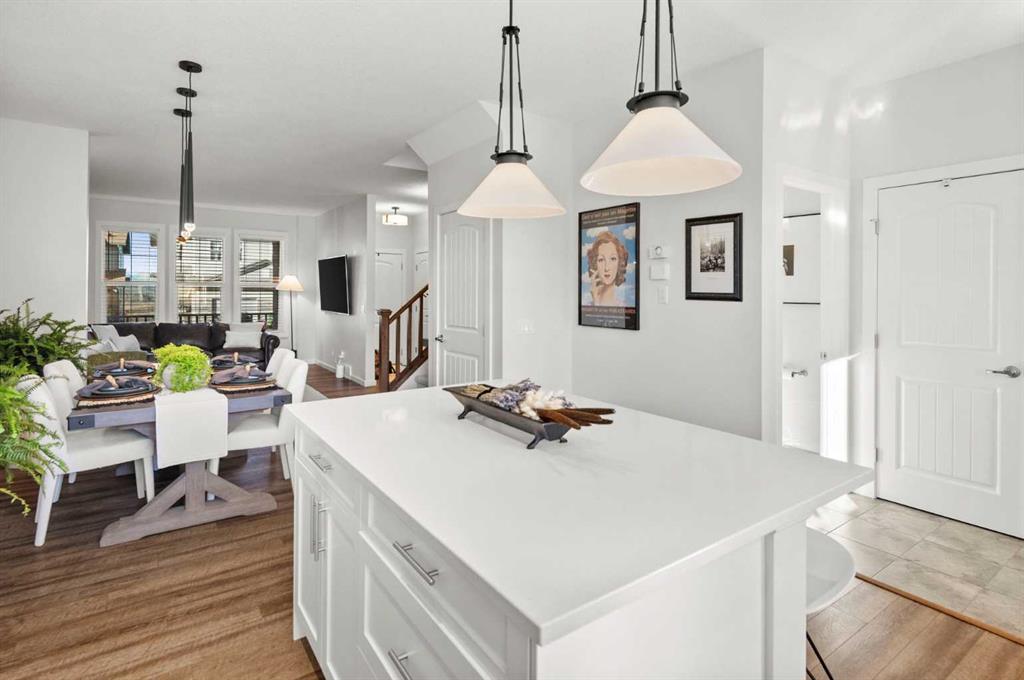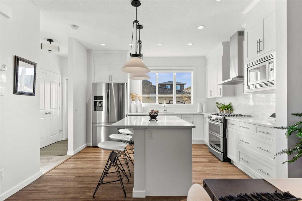 Welcome to this stunning 3 bedroom, 2.5 bathroom home in the desirable west Cochrane community of Heritage Hills. Combining modern comfort with timeless charm, this property offers the perfect balance of style, functionality, and location. From the inviting front porch to the thoughtfully designed interior, every detail has been carefully considered. The open concept main floor is filled with natural light, creating a warm and welcoming atmosphere. The spacious living room flows seamlessly into the dining area and modern kitchen complete with sleek stainless steel appliances including a gas range, ample cabinetry, and plenty of counter space — perfect for family meals or entertaining guests. Upstairs, you’ll find three generous bedrooms, including a primary suite featuring a walk-in closet and private ensuite bathroom. Two additional bedrooms, full laundry room and a full bath provide plenty of room for family or guests. The basement offers endless potential to customize the space to suit your needs — whether it’s a recreation room, home office, gym or additional living area. Outdoors, enjoy a low maintenance landscaped rear yard with a patio ideal for relaxing or hosting summer barbecues. The oversized detached double garage provides ample parking and storage space, and features a secondary overhead garage door offering convenient backyard access. Located just steps from a playground and minutes from amenities and scenic walking trails, with exceptional access to the majestic Rocky Mountains, this home perfectly blends convenience and community. Experience the best of Cochrane living in this exceptional Heritage Hills home.