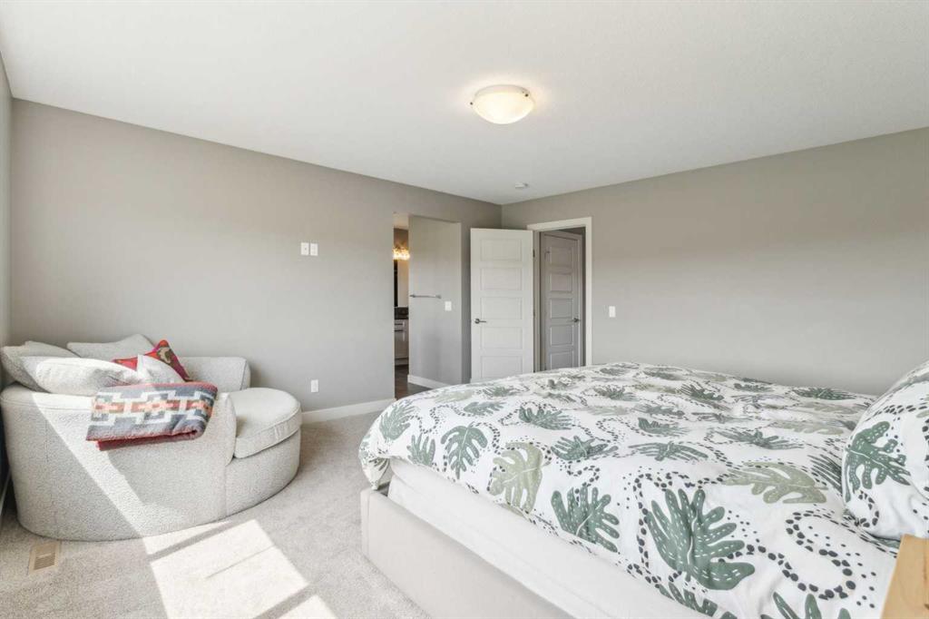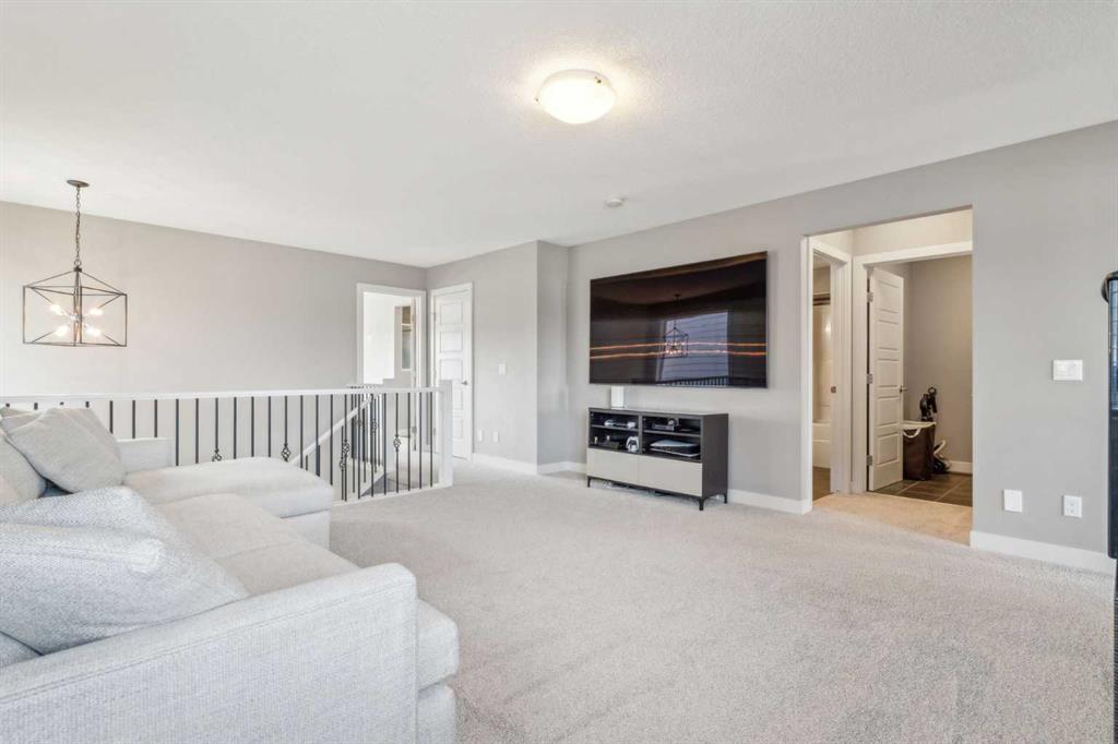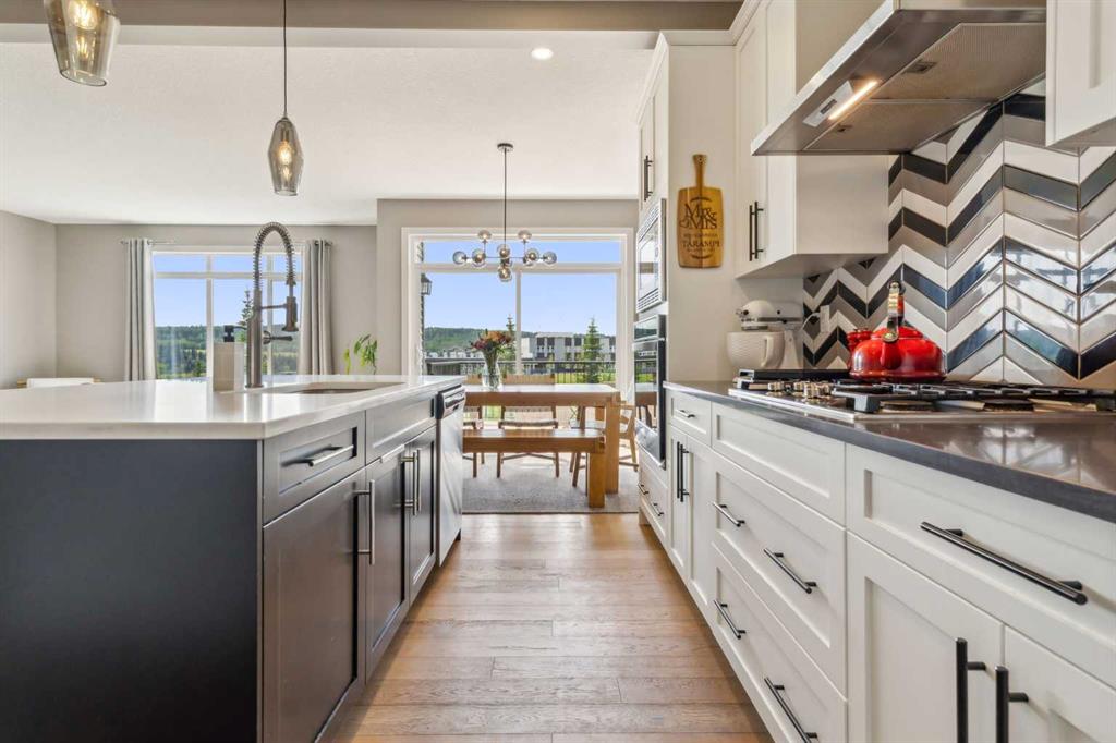 Sunset Ridge voted Cochrane’s Best Neighbourhood 2025!!!! Welcome to this stunning, two-storey walkout home, perfectly situated, backing onto expansive green space and Ranche View School (elementary and junior high) school yard, offering stunning mountain views to the west and to the east a beautiful forest hillside with cows occasionally grazing in the pasture. The backyard gate opens up to the vast school playground, allowing students to lunch at home and – running out the back door minutes before the bell rings! With a bright open-concept main floor, soaring ceilings, and large south-facing windows, this home is filled with an abundance of natural sunlight throughout the day. The main level features a spacious office with elegant French doors – ideal for working from home. The large functional kitchen with entertainment island, white cabinetry, quartz countertops, a convenient walk-through pantry and stainless appliances, make this THE spot for hosting events! The spacious living room with gorgeous fireplace wall flows into the lovely dining area with sliding glass doors which lead out to a large elevated deck, perfect for entertaining or simply enjoying the peaceful surroundings. Upstairs, you’ll find three generously sized bedrooms; including a luxurious primary suite with a 5-piece spa-ish ensuite featuring double vanities, a large soaker tub, a stand-alone shower and a spacious walk-in closet. An additional 4-piece bathroom is shared by two spacious bedrooms and a large bonus room provides plenty of space for family living and relaxation, games night and late night TV. The fully developed walkout basement offers incredible versatility, featuring a theatre room or optional fourth bedroom, and an additional 4-piece bath. Currently used as a gym, the walk-out offers large windows with a beautiful view to enjoy while on the treadmill. Step out to a gorgeous patio and landscaped back yard. Enjoy breathtaking views in every direction and “the peace” . A stunning home delivering the charm of country living with all the conveniences of Cochrane – AND – less than an hour to the mountains!!!! This exceptional home truly offers the best of both worlds; tranquility, space and modern comfort in a highly desirable location. Shows 10/10! Book your viewing today!