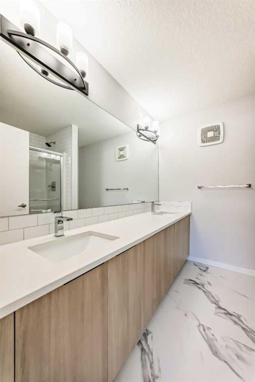 Upstairs offers three generously sized bedrooms, including a spacious primary bedroom with a 4-piece ensuite, dual sinks, oversized tiled shower, and a large walk-in closet. A second full bathroom and convenient upper-level laundry make daily routines easy for busy families.