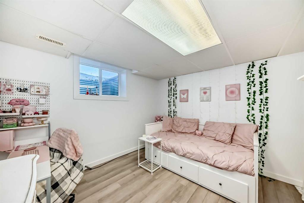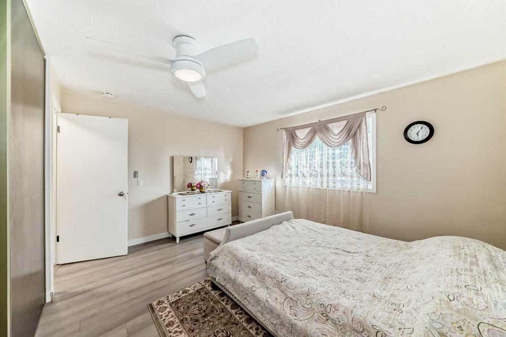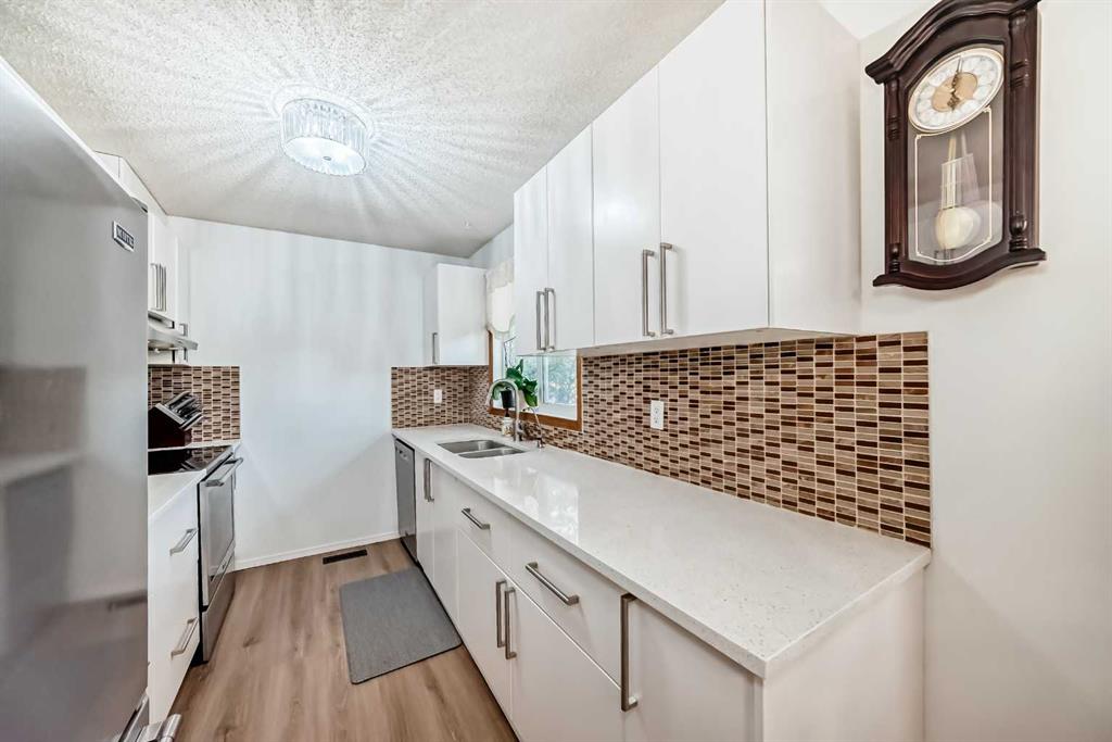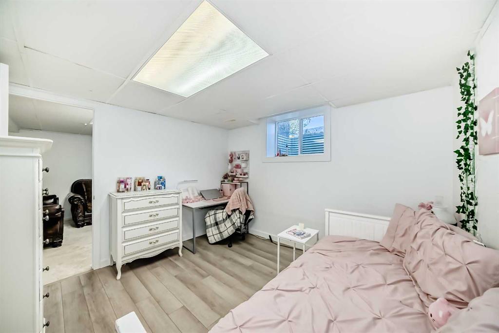 From the moment you step inside, you’ll appreciate the bright and cheerful living room, featuring (new) French doors that open to the private backyard. The dining area is filled with natural light, offering space for a generous table and additional cabinets and counter space. The kitchen has been fully renovated with quartz countertops, modern white cabinetry with soft-close drawers, and stainless steel appliances. The main floor includes three spacious bedrooms. The primary retreat features a 4-piece ensuite, large closet and ceiling fan for comfort. The main floor 4-piece bathroom has been beautifully updated to include a stand up shower and large vanity. Conveniently, the washer and dryer are also located on the main level. A separate entrance leads to the finished basement, which offers a cozy family room, a versatile flex space (perfect for an office or gym) and a spacious fourth bedroom with direct access to a full 3-piece bathroom, which is also accessible from the family room. Step outside to the large backyard, complete with a charming covered deck, mature landscaping with an amazing flower garden, a firepit area, and plenty of space for kids and pets to play. With no neighbours behind, you’ll enjoy privacy and quiet, plus a double parking pad off the back alley and ample street parking. Recent updates include new flooring throughout, new French doors in living room, updated bathroom, a fully renovated kitchen, a new roof (June 2025), a newer hot water tank (March 2019), and a well-maintained furnace. This home has been loved and meticulously cared for—move-in ready and waiting for you. Ideally located close to the Strathmore Aquatic Centre, Brentwood Elementary, Strathmore High School, and numerous parks and amenities and quick access to the highways. Call your favourite realtor and book a showing today!