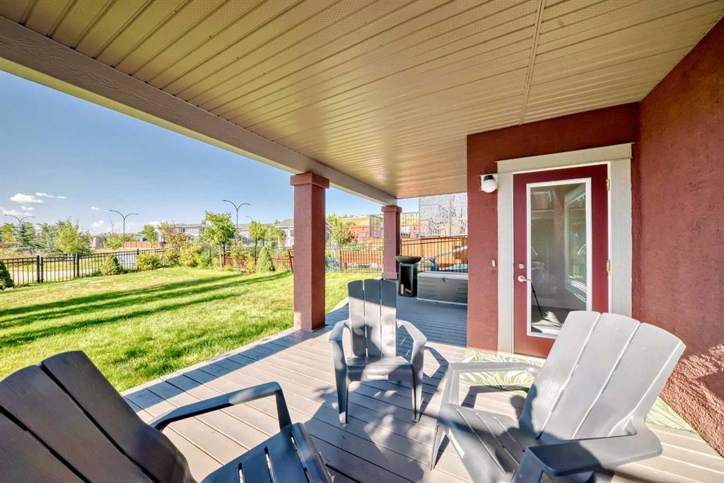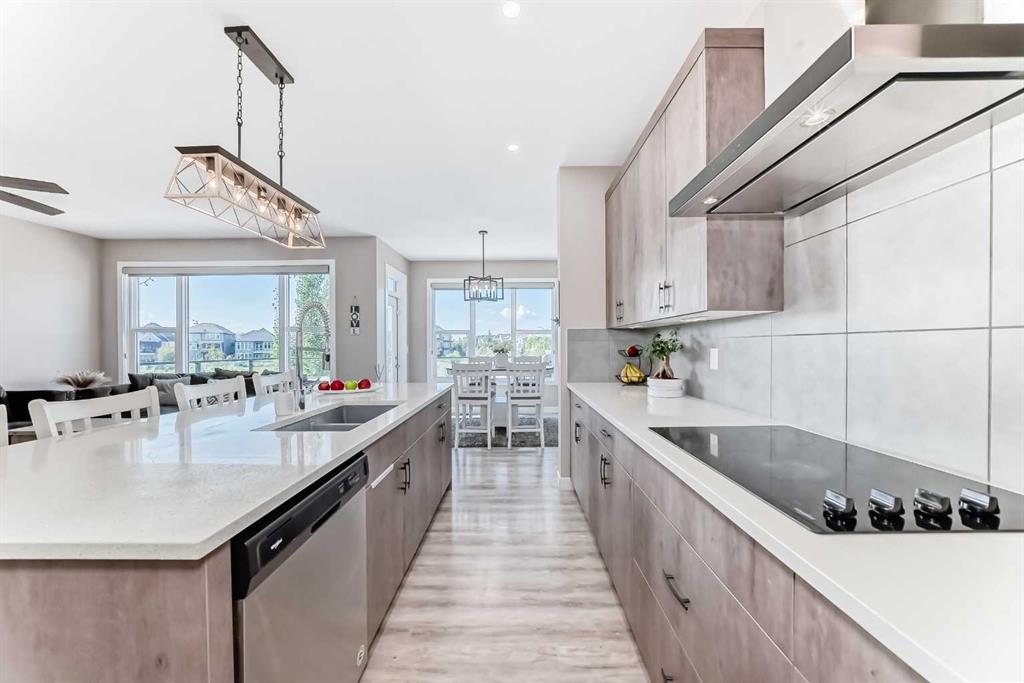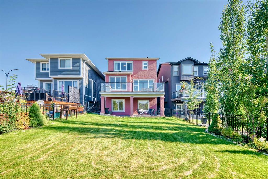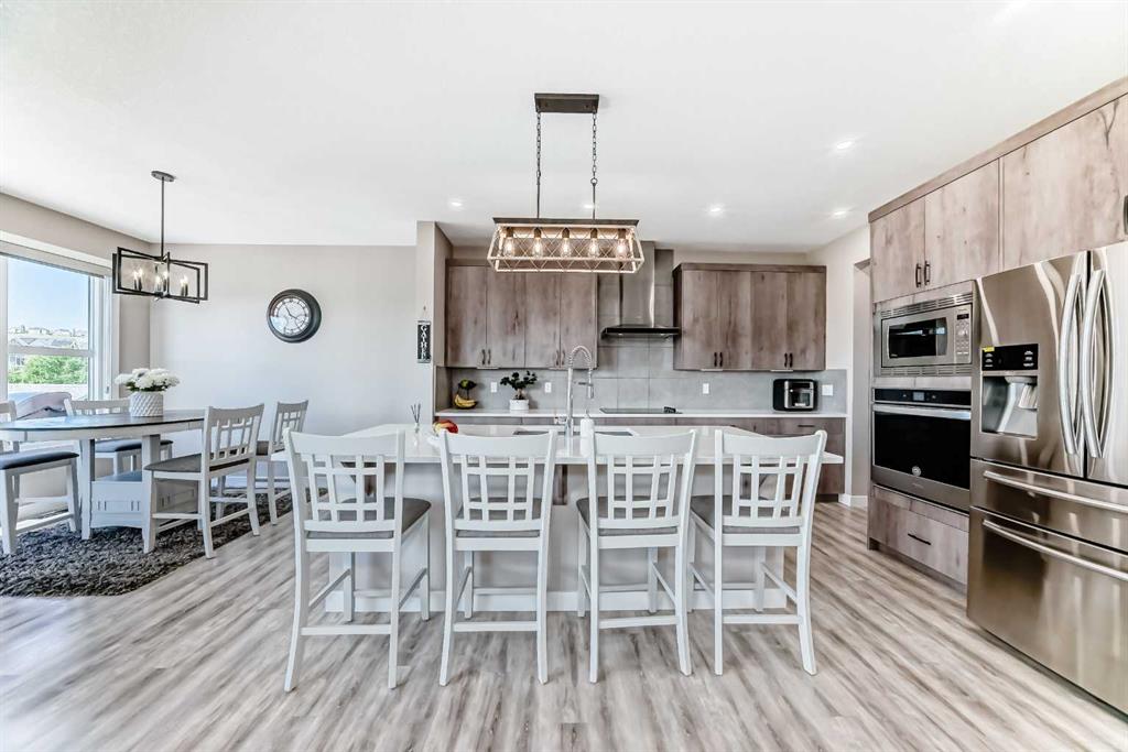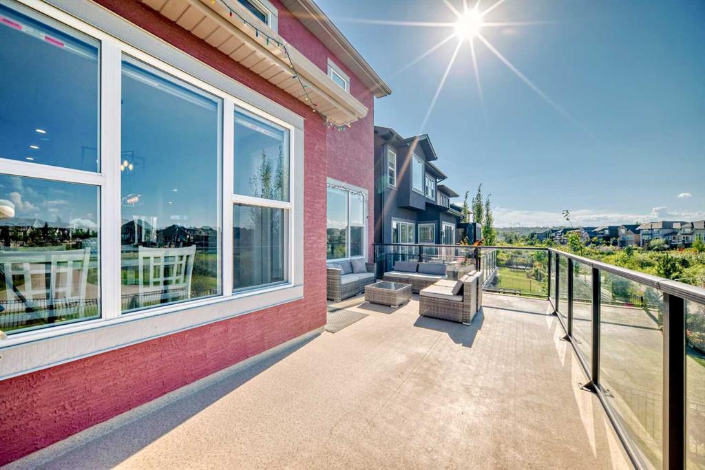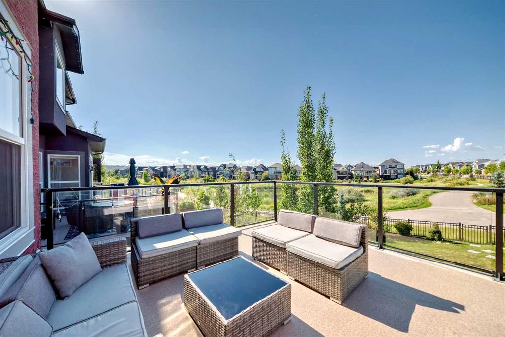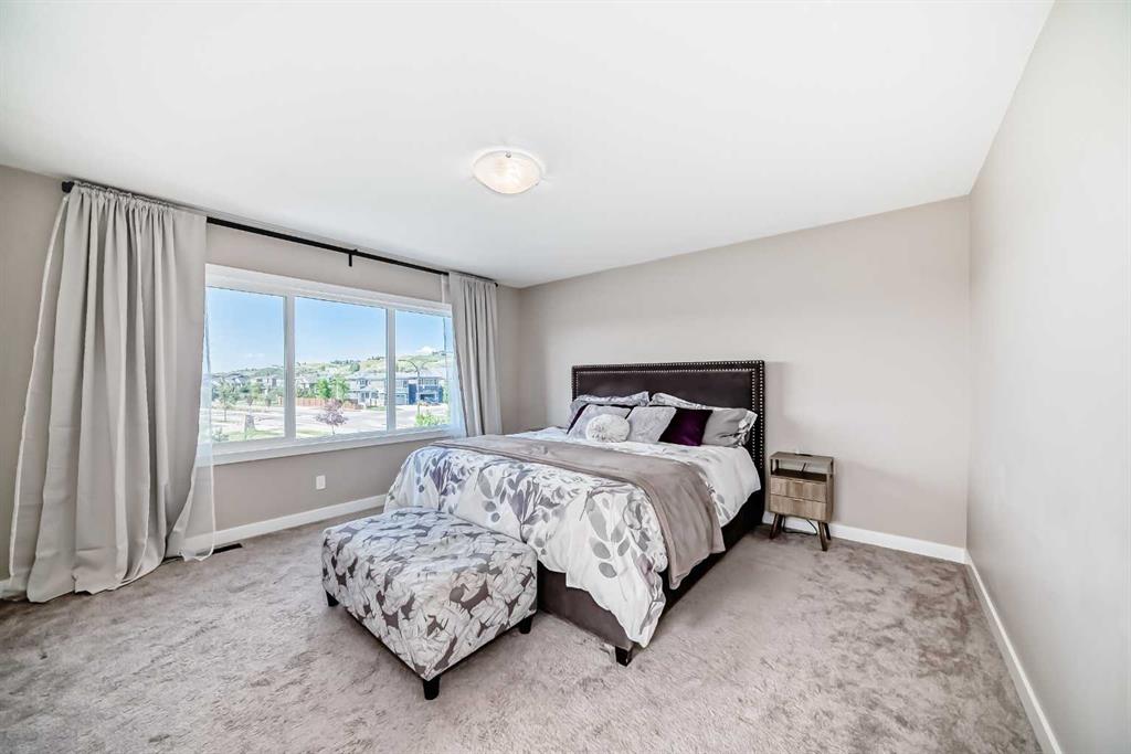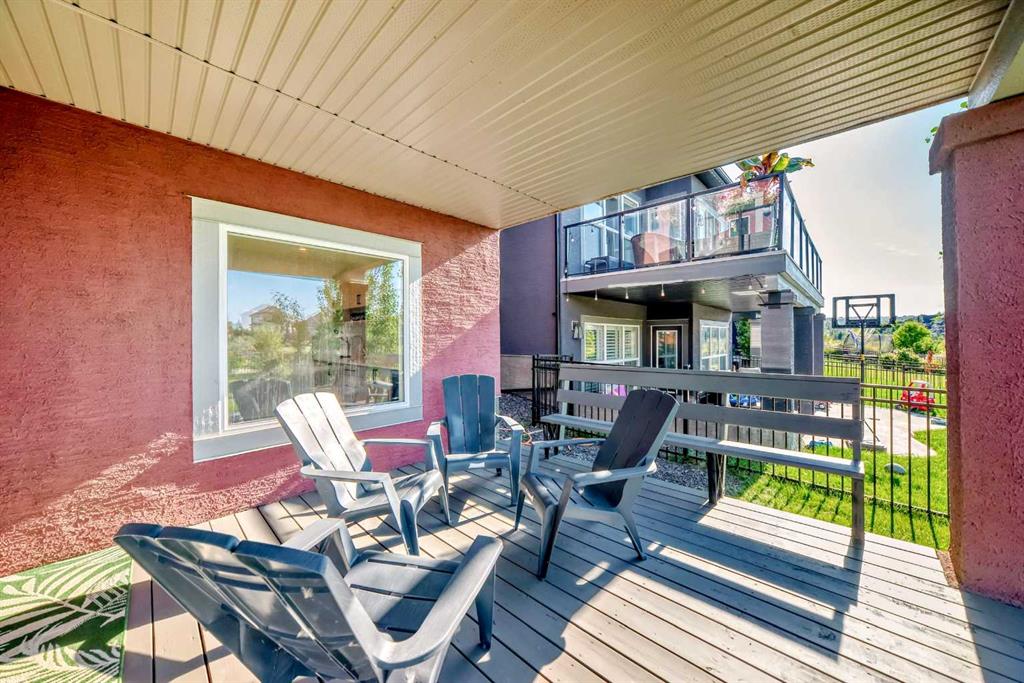 Nestled in the prestigious sought-after community of Riverstone, this exceptionally beautiful 4-bedroom, 3.5-bathroom retreat with a newly finished walkout basement offers just under 3000 sq ft of enjoyable space. It is truly an urban oasis. From the moment you walk in, you are greeted by a clear site line of the main level with 9-foot ceilings and oversized windows that flood the living spaces with natural light and mesmerizing vistas. The gourmet kitchen features an 8-foot island, stainless steel appliances and quartz countertops. The gathering area opens up into the family room and dining nook. The kitchen extends to a butler’s and dry pantry with more prep and storage space. This home seamlessly blends functionality with style. Imagine sitting on the oversized deck either enjoying coffee in the morning or a glass of wine at night while watching the sunset and overlooking the manicured yard, the pond and walking trails. The view is breathtaking. With nature in your backyard, this home gives you direct access to walking paths that are only steps away from one of Alberta’s most famous waterways, the Bow River. Upstairs, the three secondary bedrooms are well separated from the primary bedroom where the awe strikes you as enter. Overwhelmed by the oversized window and view, a deep soaker tub, a glass-in shower, a customized counter with dedicated vanity/makeup area, and a walk-in closet completes this space as an escape into sanctuary. The fully updated basement sports two large storage rooms, a rec/game area, an office nook, a full bathroom and a wet bar/kitchenette with ample counter/cabinet space. Outside, enjoy another oversized deck that oversees the backyard. Up the hill, you are a quick drive to all the amenities that the southeast offers and only minutes away to both Deerfoot and Stoney Trail. The neighbors are engaging. The children are interactive. Looking for your dream home? Your search is over. Book your showing today!