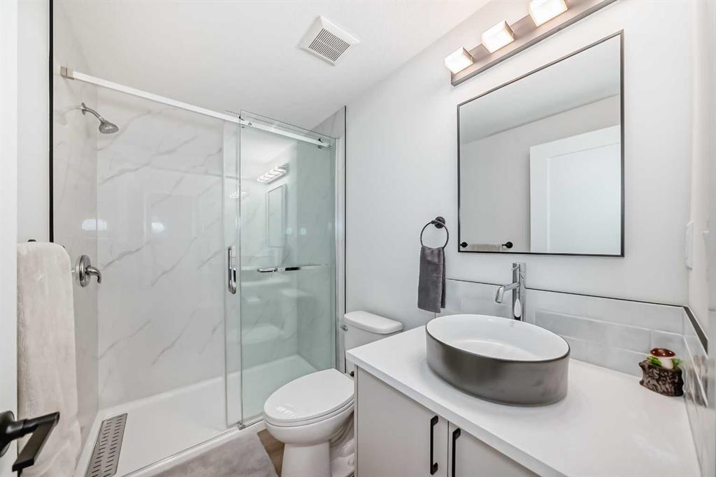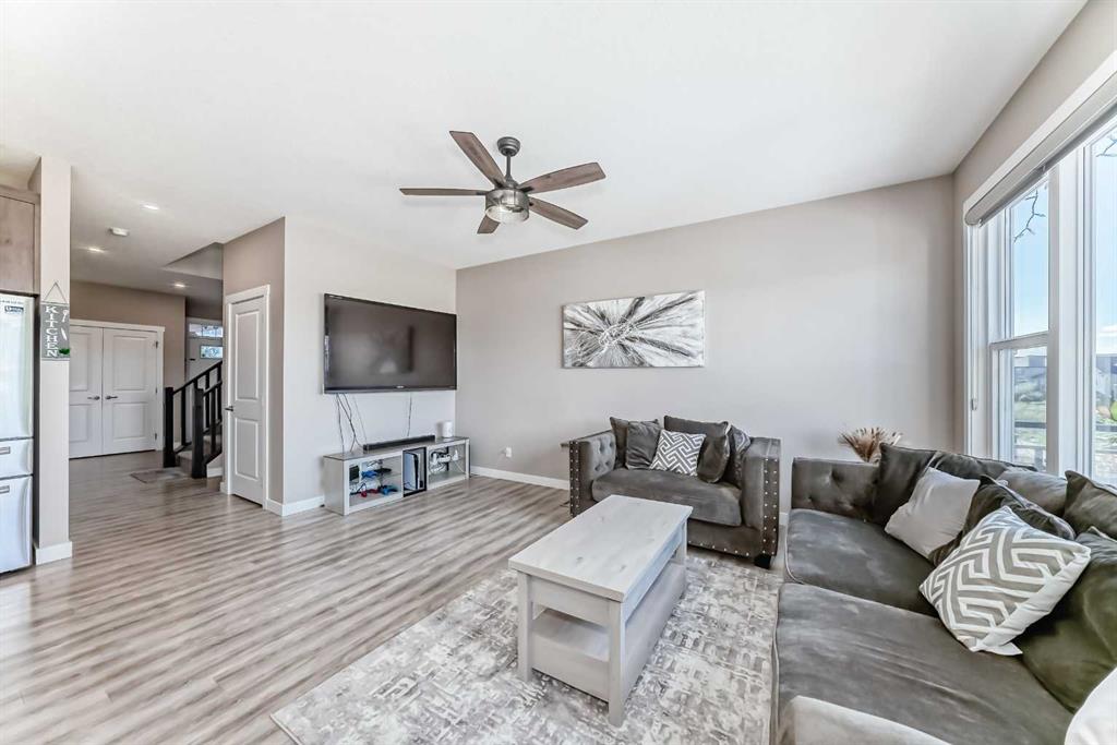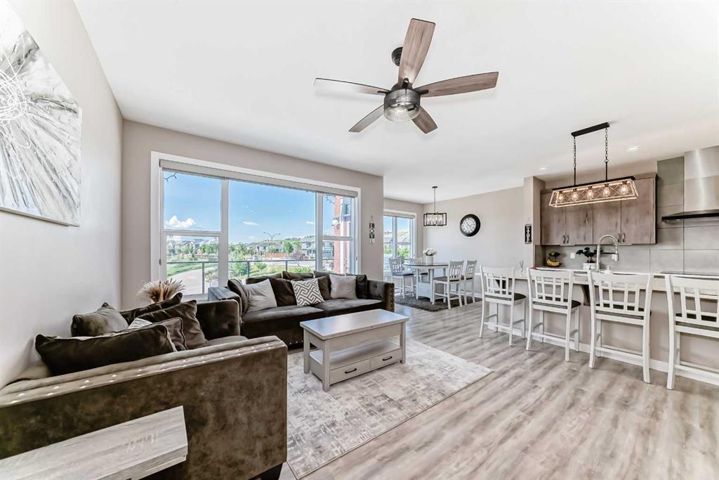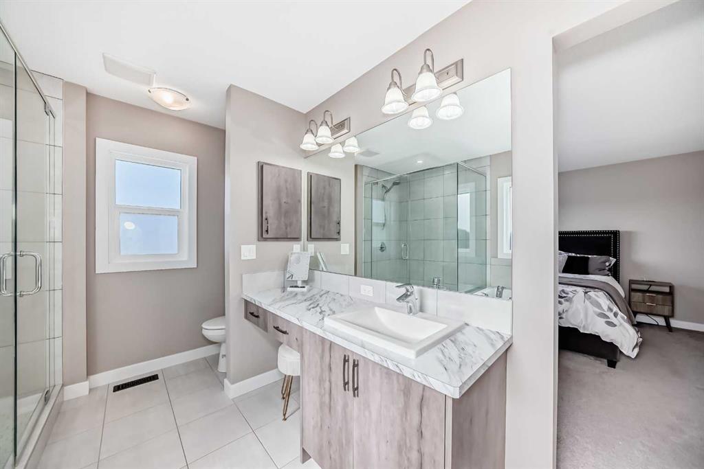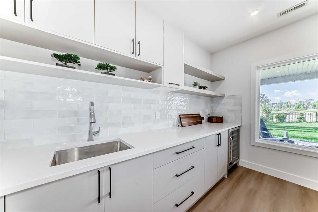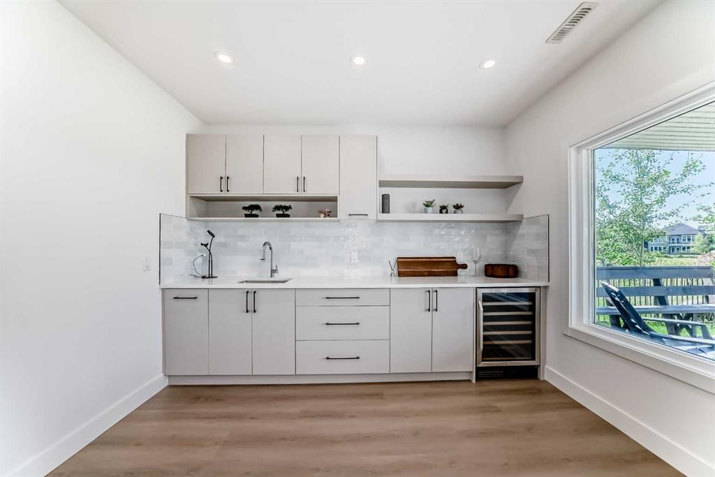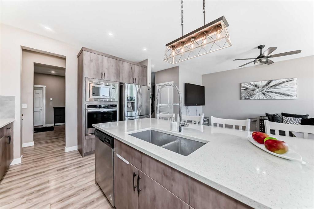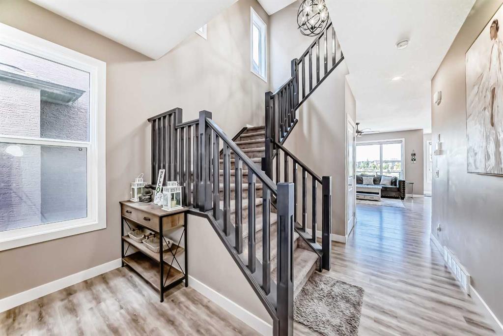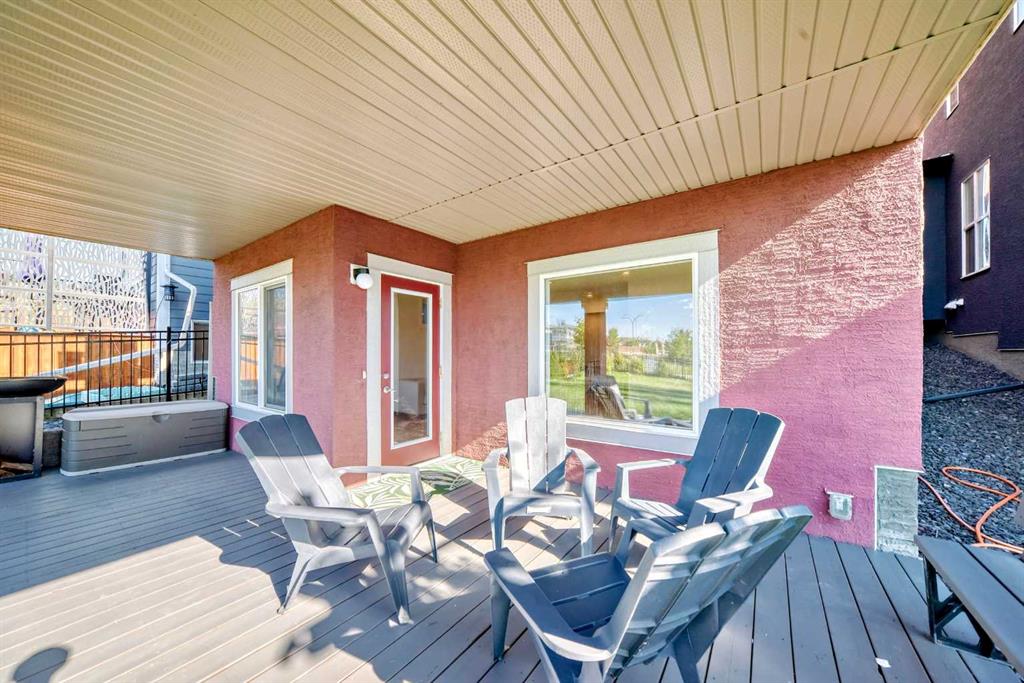 Nestled in the prestigious sought-after community of Riverstone, this exceptionally beautiful 4-bedroom, 3.5-bathroom retreat with a newly finished walkout basement offers just under 3000 sq ft of enjoyable space. It is truly an urban oasis. From the moment you walk in, you are greeted by a clear site line of the main level with 9-foot ceilings and oversized windows that flood the living spaces with natural light and mesmerizing vistas. The gourmet kitchen features an 8-foot island, stainless steel appliances and quartz countertops. The gathering area opens up into the family room and dining nook. The kitchen extends to a butler’s and dry pantry with more prep and storage space. This home seamlessly blends functionality with style. Imagine sitting on the oversized deck either enjoying coffee in the morning or a glass of wine at night while watching the sunset and overlooking the manicured yard, the pond and walking trails. The view is breathtaking. With nature in your backyard, this home gives you direct access to walking paths that are only steps away from one of Alberta’s most famous waterways, the Bow River. Upstairs, the three secondary bedrooms are well separated from the primary bedroom where the awe strikes you as enter. Overwhelmed by the oversized window and view, a deep soaker tub, a glass-in shower, a customized counter with dedicated vanity/makeup area, and a walk-in closet completes this space as an escape into sanctuary. The fully updated basement sports two large storage rooms, a rec/game area, an office nook, a full bathroom and a wet bar/kitchenette with ample counter/cabinet space. Outside, enjoy another oversized deck that oversees the backyard. Up the hill, you are a quick drive to all the amenities that the southeast offers and only minutes away to both Deerfoot and Stoney Trail. The neighbors are engaging. The children are interactive. Looking for your dream home? Your search is over. Book your showing today!