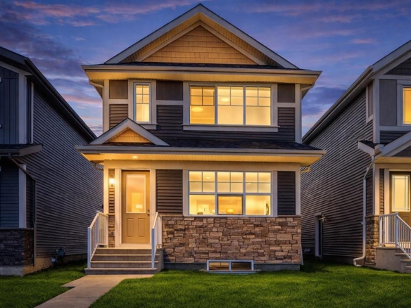 Welcome to this stunning walkout bungalow in Wedderburn, Okotoks, offering over 2,500 square feet of developed living space, mountain views, and a layout designed for both everyday living and entertaining. Featuring three bedrooms, two and a half bathrooms, a main floor den, a dedicated gym, and a fully finished walkout basement with a built-in dry bar, this home presents a rare opportunity to own a highly upgraded bungalow in one of Okotoks’ most desirable and growing communities. The main level is defined by soaring vaulted ceilings and expansive windows that fill the home with natural light. At the center of the space is an oversized chef-inspired kitchen designed to impress, complete with quartz countertops, a large island, full height cabinetry, a walk-in pantry, upgraded built-in appliances, and a custom hood fan. A built-in hutch adds both function and character, while the open concept layout connects seamlessly to the dining and living areas. The great room is anchored by a sleek linear fireplace and opens directly onto the main floor deck, creating an ideal setting for indoor-outdoor living and entertaining. The primary suite is thoughtfully positioned for privacy and offers a spacious walk-in closet and a beautifully finished ensuite featuring dual vanities, a soaker tub, and a fully tiled shower. A main floor den provides flexibility for a home office, study, or quiet retreat. The mudroom and laundry area are well designed with built-in cabinetry, quartz counters, and excellent storage, and connect directly to the double attached garage for everyday convenience. The fully finished walkout basement extends the living space with two generously sized bedrooms, a full bathroom, a dedicated gym, and a large recreation area with a second fireplace and built-in dry bar. Step outside to the lower patio and enjoy the seamless connection to the outdoors that walkout living provides. Located in Wedderburn, Okotoks, this home offers access to pathways, parks, and nearby amenities, with convenient access to Calgary. This is a rare opportunity to own a move-in ready walkout bungalow with elevated finishes, functional design, and exceptional living space.