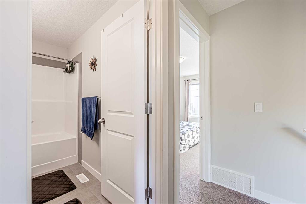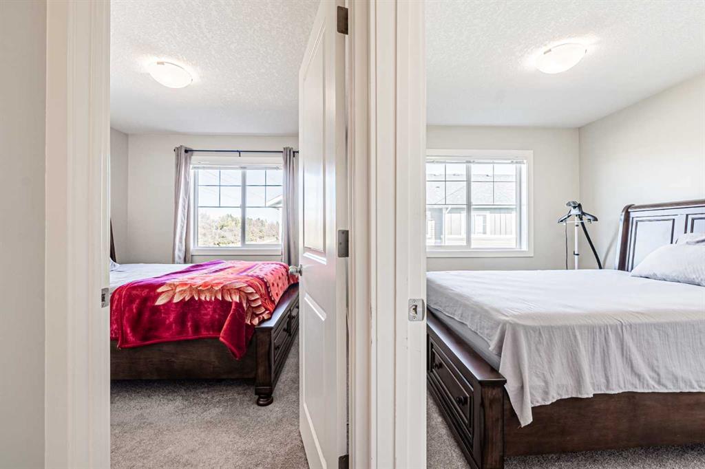 Welcome to your new home in Chestermere Station. This bright and spacious end-unit townhouse offers the perfect blend of comfort and convenience. Nestled beside a large green space and just steps from a leash dog park, this home provides the lifestyle you have been looking for. Visitor parking is conveniently located right next door and you will appreciate the Calgary Transit stop just a few steps away. Inside, you are greeted with 9-foot knock-down ceilings, stylish laminate flooring and an open-concept layout that seamlessly connects the living, dining and kitchen areas. The modern kitchen showcases rich dark cabinetry, granite countertops, and plenty of workspace for everyday living. From the dining area, step out to your fenced private yard ideal for morning coffee or evening relaxation. Upstairs, the primary suite easily fits a king bed and features a walk-in closet with window and a 4-piece ensuite. Two additional bedrooms, another full bath with granite counters, and convenient upper-floor laundry complete this level. The fully finished basement offers a spacious family room and a rough-in for a future bathroom, providing great flexibility for your growing needs. Enjoy the single attached garage with driveway parking, plus a location close to shopping, schools and amenities. This Chestermere townhouse is move-in ready and waiting for you. Book your private tour today!