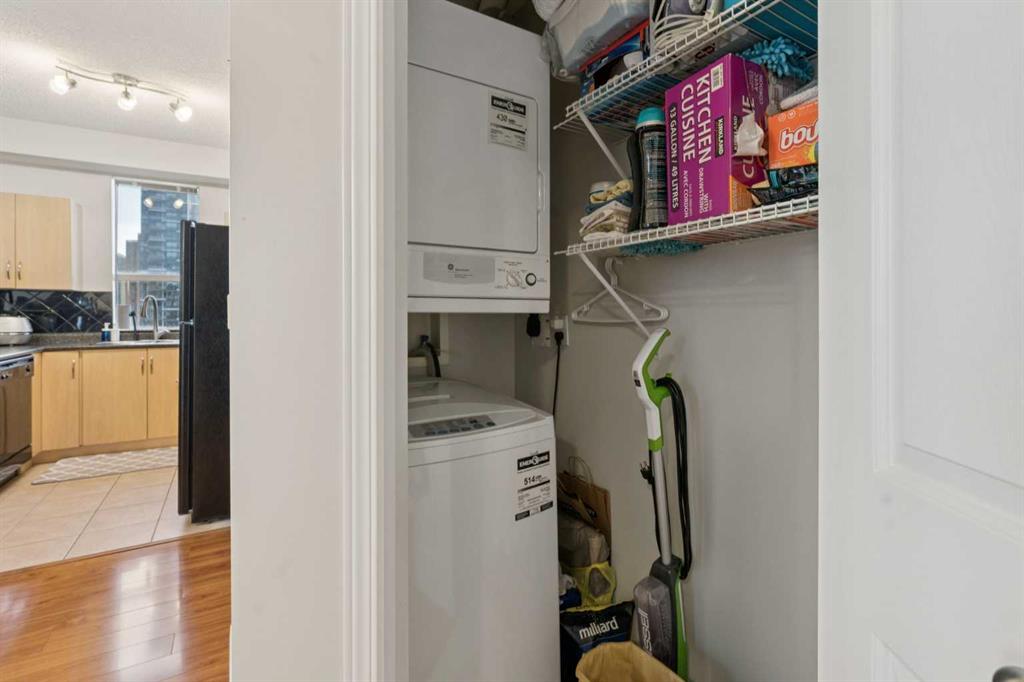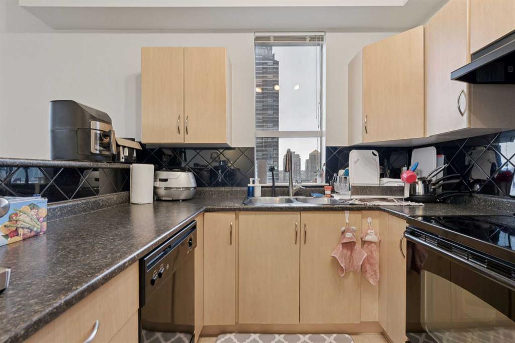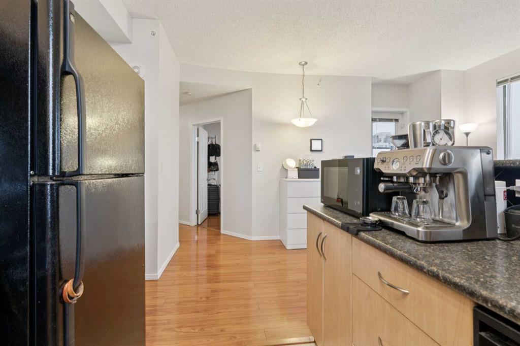 Experience breathtaking west-facing views from this beautiful 2-bedroom condo, showcasing stunning panoramas of the mountains, bow river, and downtown—all at an incredible value under $300,000. Perfect for first-time buyers and investors, this home is ideally located next to Co-op Market and within walking distance to restaurants, pubs, the LRT, 17th Ave, and downtown, offering both convenience and lifestyle. The open-concept layout features 9-foot ceilings, laminate flooring, and modern neutral tones throughout. Enjoy the sun-filled living space that leads to a private west-facing balcony, complete with a gas line for your BBQ—perfect for relaxing or entertaining. This well-maintained, secure building offers heated underground parking, with a stall ideally situated near the elevator for easy access., a fitness centre, and bike storage. Condo fees include essential utilities such as electricity, heat, and water. Book your private showing today and make this exceptional home yours!
