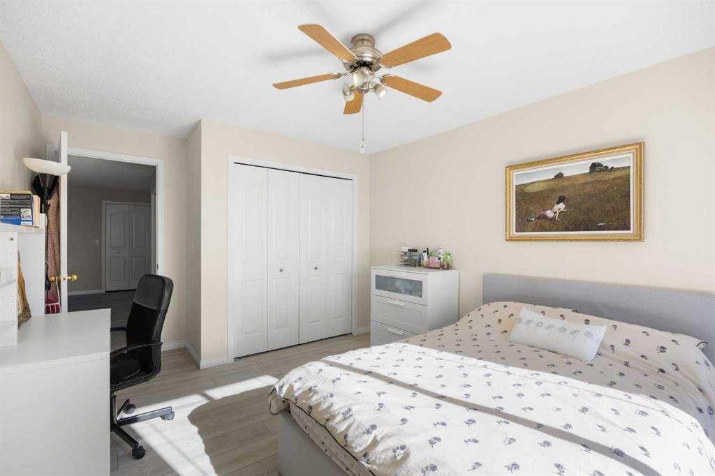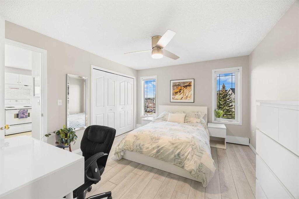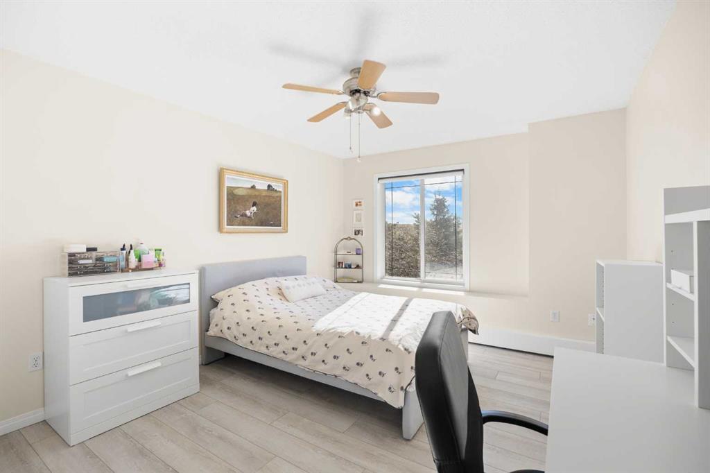 The thoughtfully designed floorplan provides excellent bedroom separation for added privacy. The spacious Primary Bedroom features dual windows, a ceiling fan, and a private 4-piece ensuite. The second Bedroom is also well-sized with a ceiling fan and is conveniently located beside the additional 4-piece Bathroom, making it ideal for guests, family, or a Home Office.