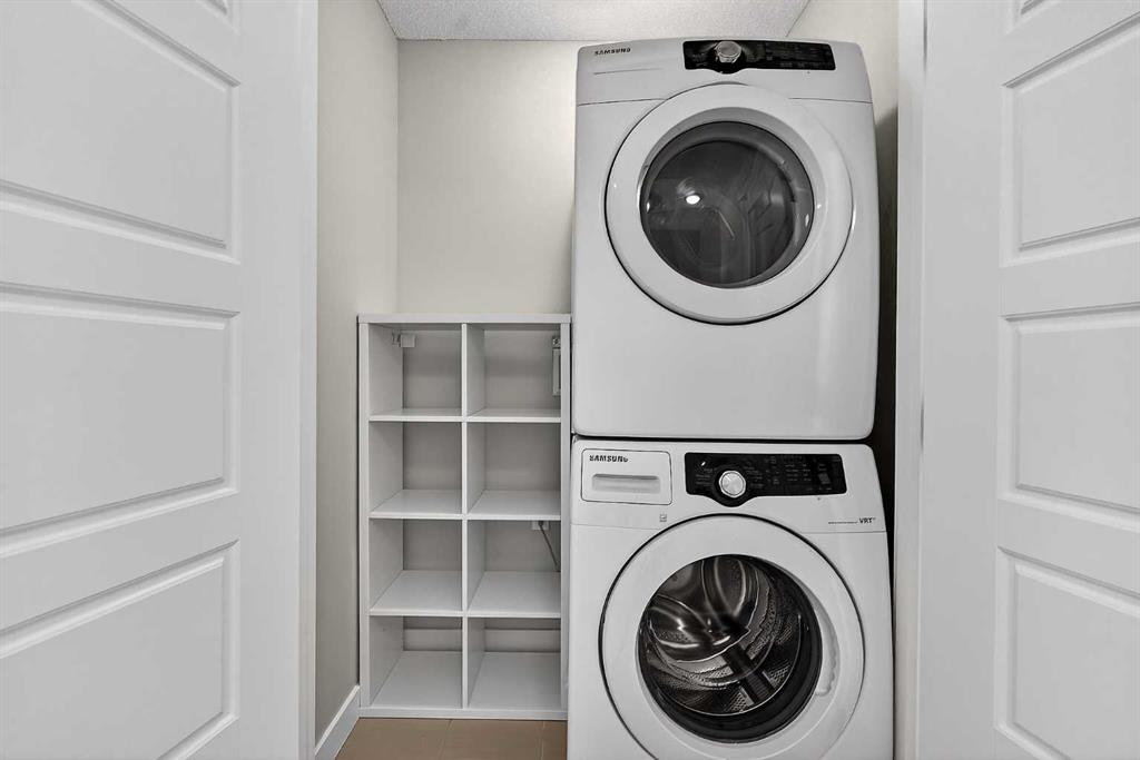 Both bedrooms are tucked away upstairs. The primary bedroom features an ensuite and plenty of storage while the secondary bedroom is generously sized too; and offers a cheater door to the primary bathroom. The stackable washer/dryer in the hall will make laundry day a breeze.