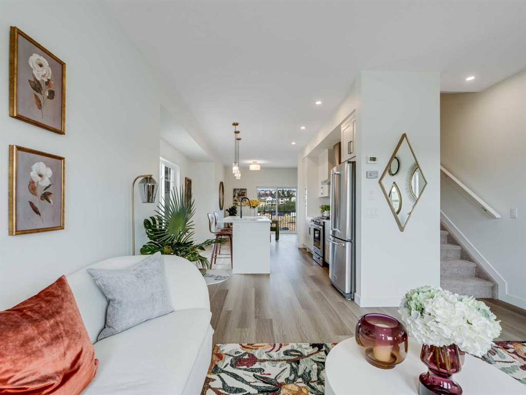 Discover a life of elegance and convenience in this stunning three-story townhome located in the heart of Westmount, Okotoks. Built by the reputable Slokker Homes, this exquisite property offers a blend of modern luxury and functional design within one of the town’s most desirable, family-friendly communities. The main level welcomes you with a bright, open-concept floor plan that seamlessly connects the living and dining areas, perfect for entertaining. The gourmet kitchen is a true highlight, boasting sleek quartz countertops, a breakfast bar, and high-end stainless steel appliances. This main floor features soaring knockdown ceilings, durable vinyl plank flooring, two-tone cabinetry with soft-close drawers, SS appliances, and much more. Upstairs, you’ll find the conveniently located laundry and three generous bedrooms, including the primary retreat complete with full ensuite. The home’s three-story layout, featuring 2.5 baths, provides an abundance of living space and thoughtful details throughout.This property comes with an attached garage and an EXTRA TITLED parking stall. The prime Westmount location is unbeatable, offering easy access to the Westmount K-9 school and extensive community walking trails and parks. Enjoy a lifestyle of convenience with essential shopping, dining, and services just moments away at the Westmount Centre retail hub.This home is the perfect blend of style, comfort, and location, providing a great base for your life in the foothills.
