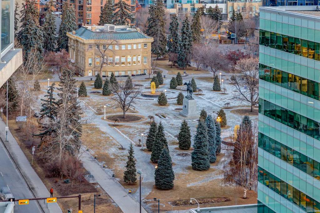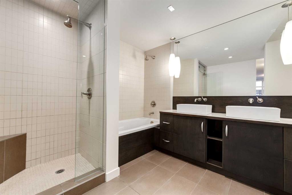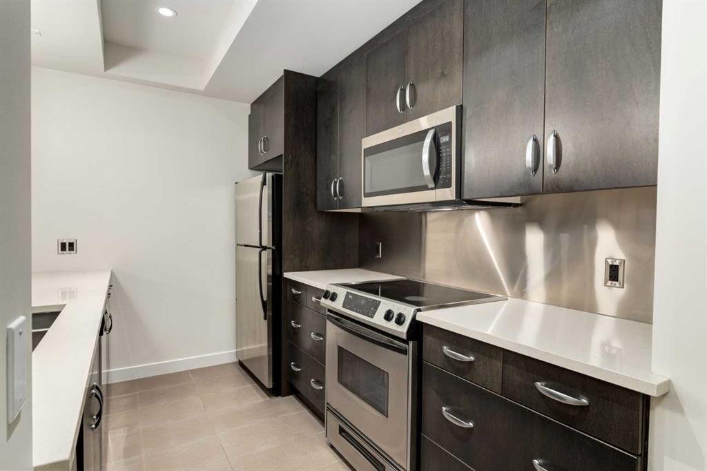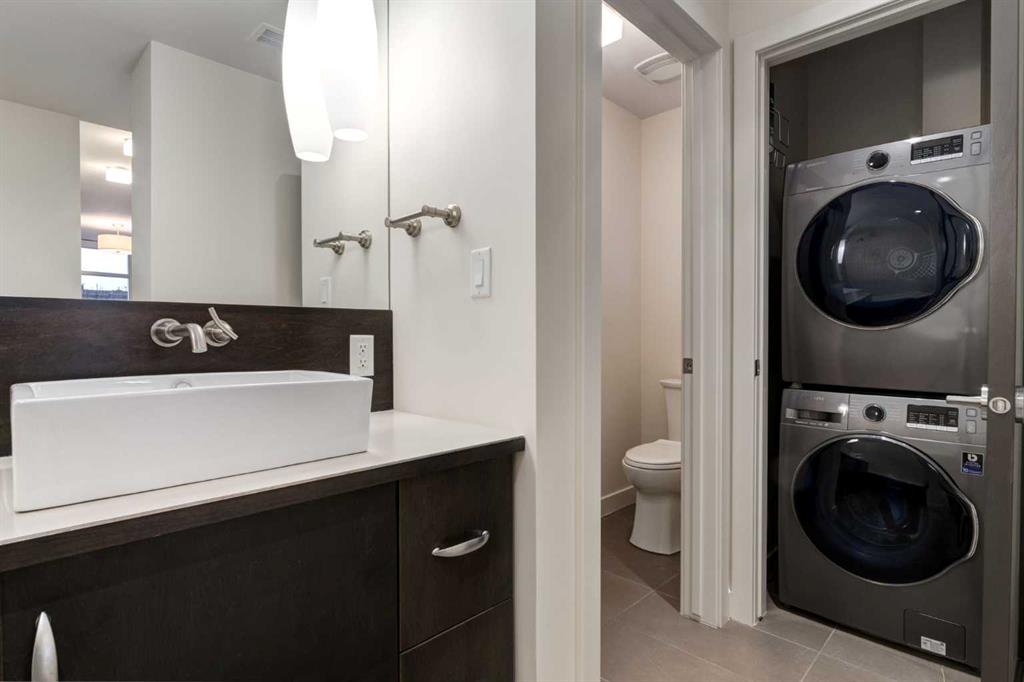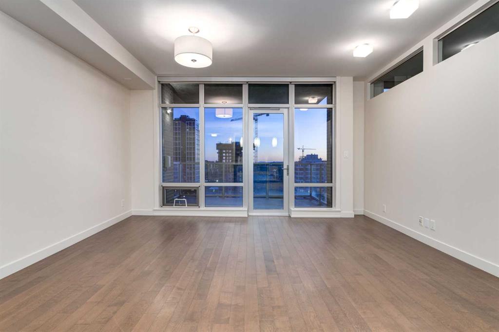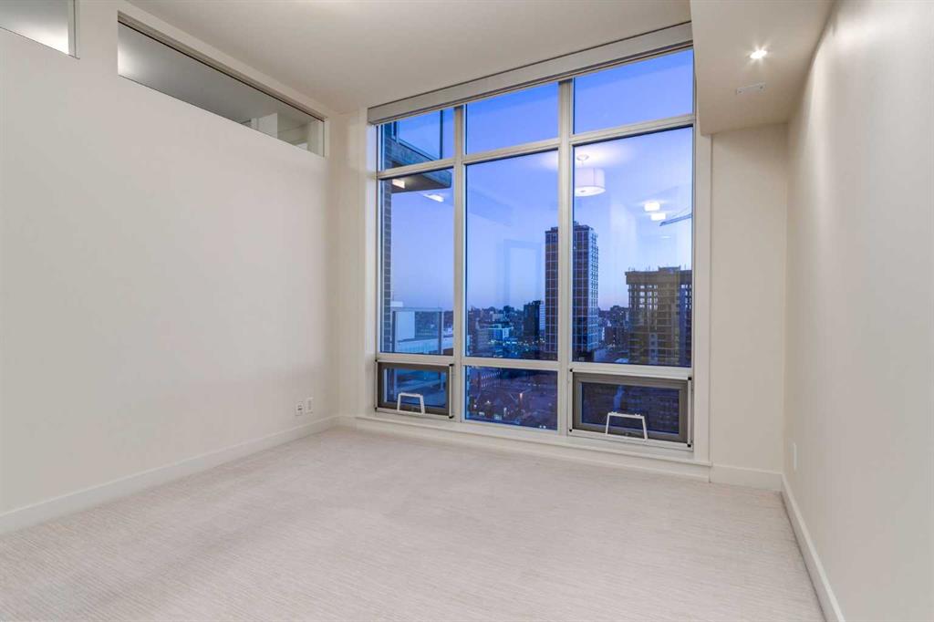 Entering this EXECUTIVE SUITE is a spacious foyer leading into the main living area, you’re greeted w/an EXPANSIVE open-concept floorplan w/9 ft Ceilings all framed w/FLOOR-TO-CEILING Windows, creating a BRIGHT, AIRY SPACE w/a seamless flow for EVERYDAY LIVING & ENTERTAINING. The MODERN Kitchen is designed to IMPRESS w/a STAINLESS STEEL WHIRLPOOL Appliance package, ELECTRIC STOVE, BUILT-IN DISHWASHER, MICROWAVE w/INTEGRATED HOOD FAN, FULL-SIZE FRIDGE + BEVERAGE FRIDGE. Enjoy the GENEROUS QUARTZ Countertops CEILING-HEIGHT Cabinetry w/Pull Out Drawers, a DOUBLE STAINLESS STEEL SINK + a COMMERCIAL-STYLE Pull-down Spray Faucet. The OPEN-CONCEPT Living & Dining Rooms provide a WELL-PROPORTIONED, INVITING space ideal for HOSTING Dinner Parties, RELAXING after a long day, or ENJOYING conversations w/ FRIENDS — all while feeling COMFORTABLE, FUNCTIONAL + EFFORTLESSLY STYLISH. Enhanced w/ DIMMER LIGHTING + WIRED-FOR-SOUND throughout, this space delivers BOTH AMBIENCE + ENTERTAINMENT at the touch of a button. Step outside to your SPACIOUS SOUTH-FACING BALCONY, w/a GAS LINE for BBQ’s + perfectly positioned for ALL-DAY SUN + SWEEPING VIEWS w/rare 3-DIRECTION VIEW CORRIDOR (SE, S, SW). Enjoy SUNRISE TO SUNSET, MOUNTAIN VIEWS, direct sight lines to CENTRAL MEMORIAL PARK + a PREMIUM vantage point for STAMPEDE FIREWORKS—all WELL ABOVE STREET ACTIVITY for ultimate privacy and comfort. A GUEST 2 pc POWDER ROOM adds convenience for hosting.