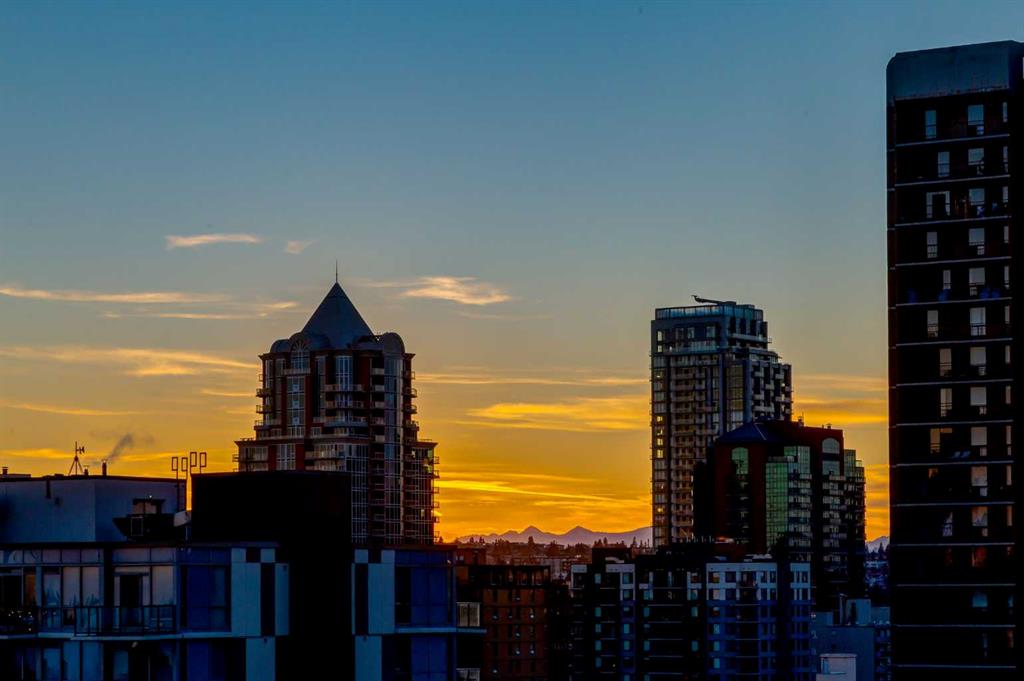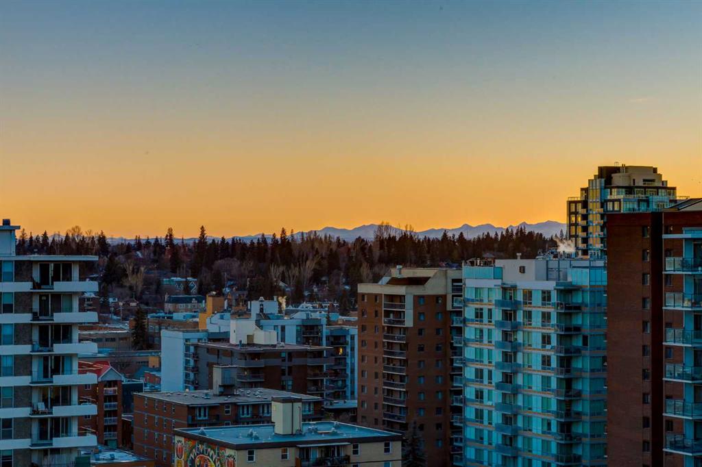 WELCOME to this MOVE IN READY 13th Floor AIR CONDITIONED UNIT, w/1 BEDROOM, 1 ½ BATHROOMS, in a 908 sq ft CONDO in the CONNAUGHT Area in the BELTLINE, w/1 TITLED Stall in the Underground HEATED Parkade + 1 TITLED Storage Unit + GORGEOUS MOUNTAIN VIEWS from the SOUTH-FACING Balcony.