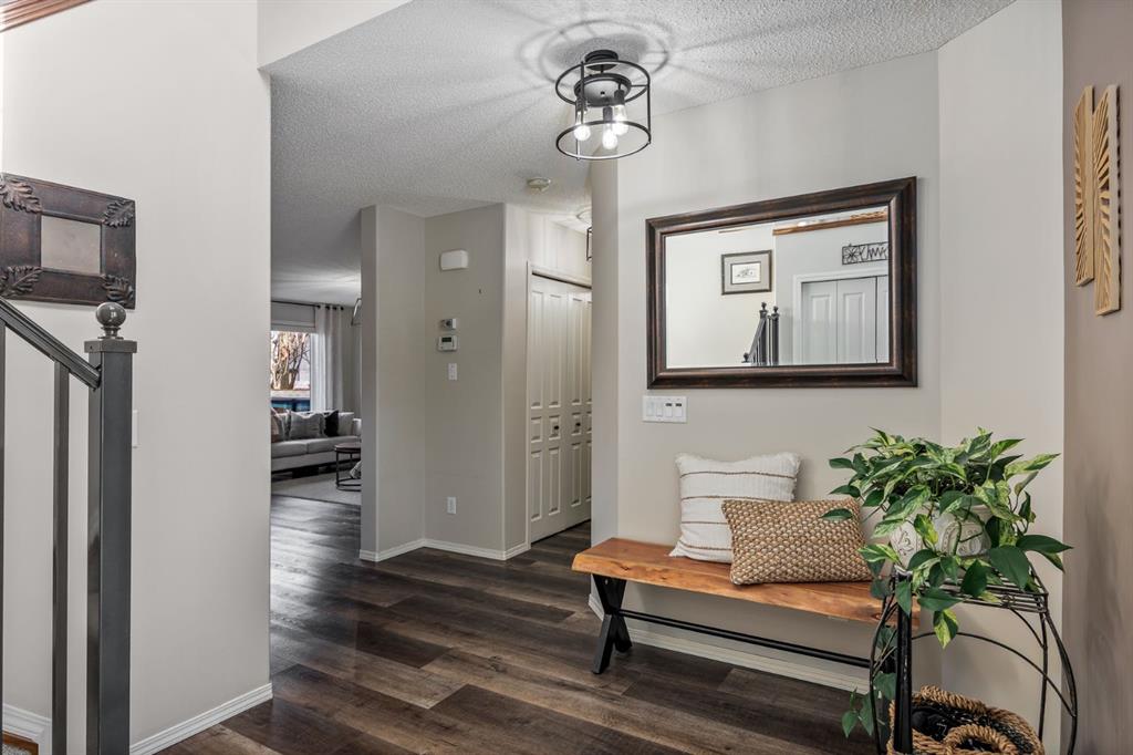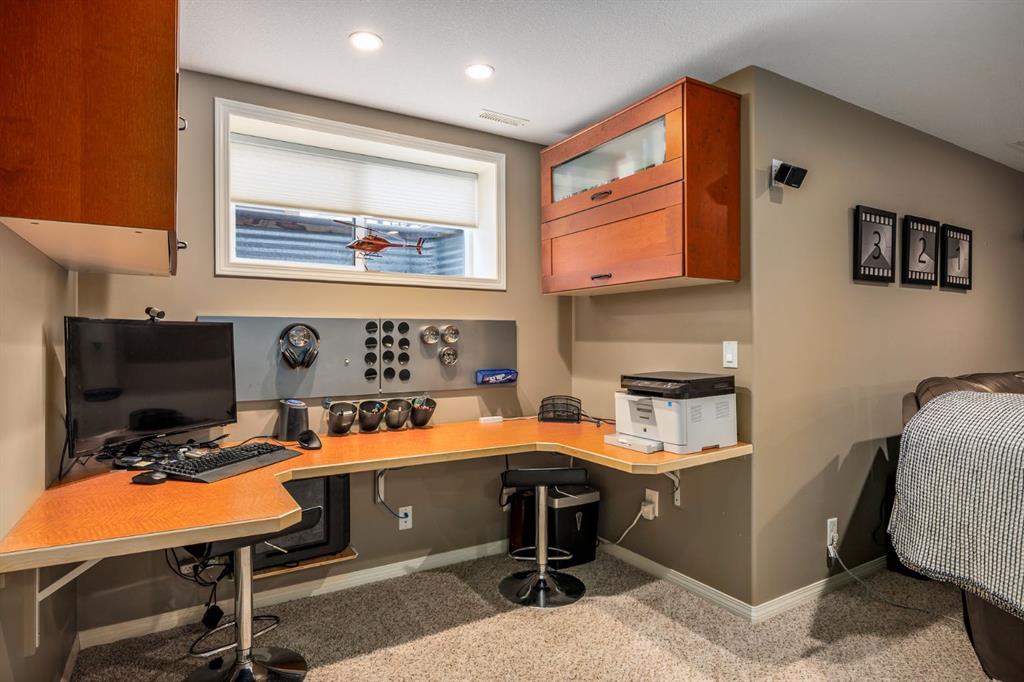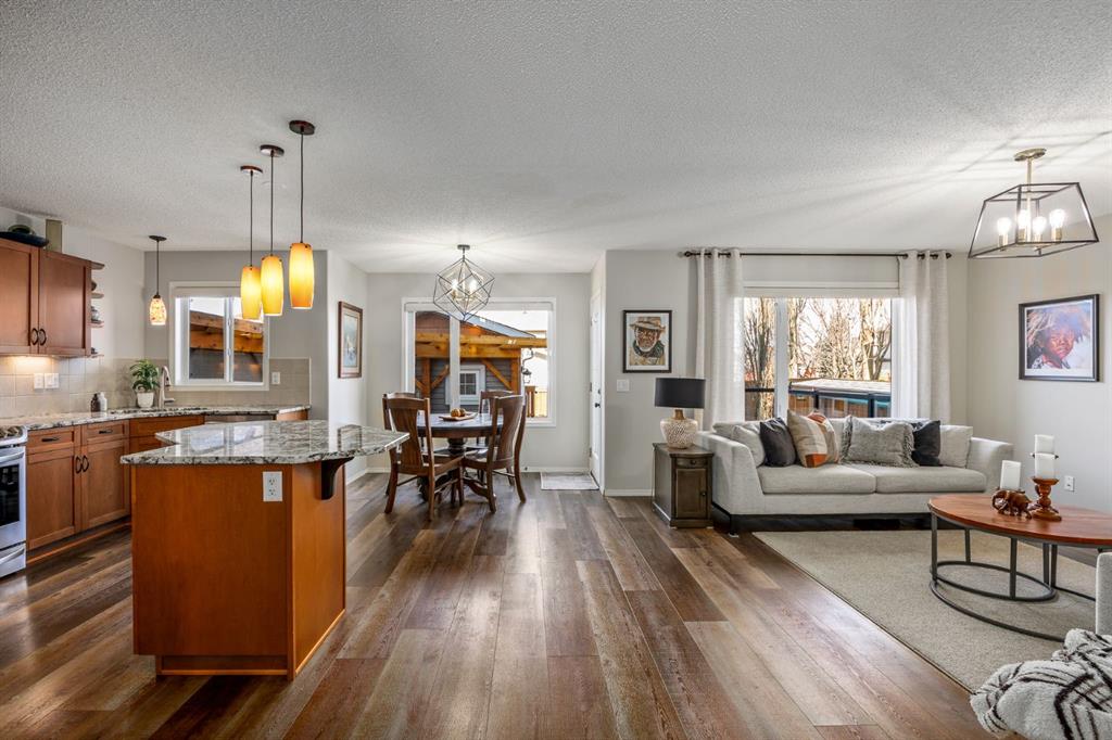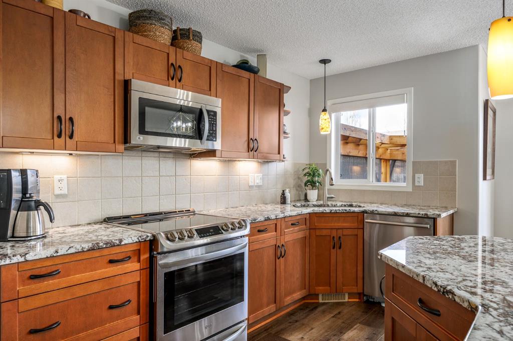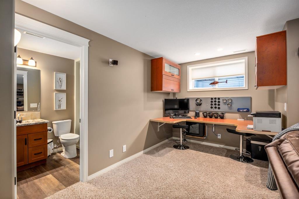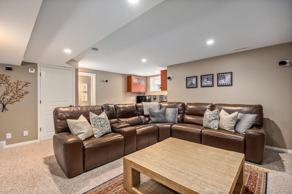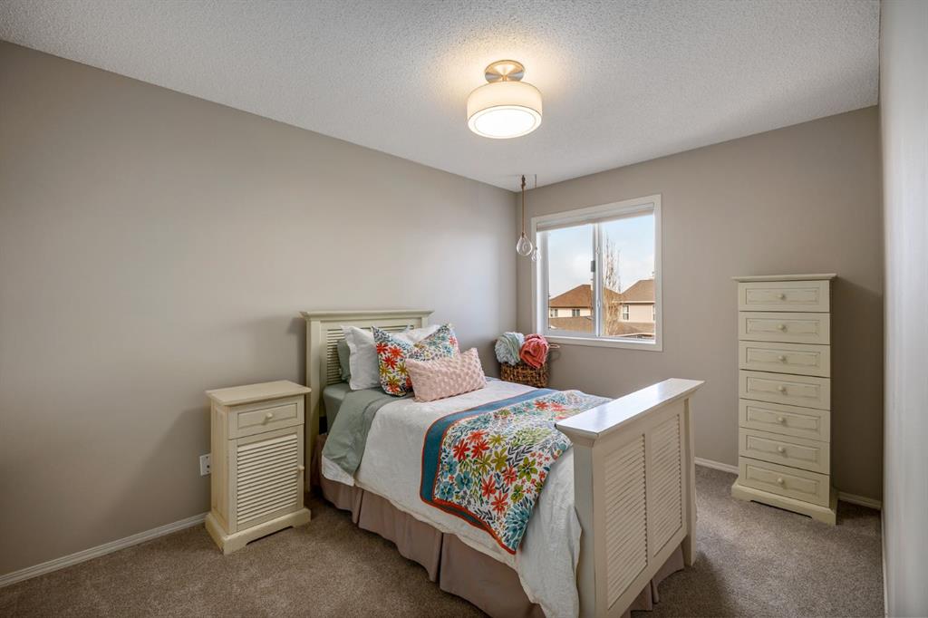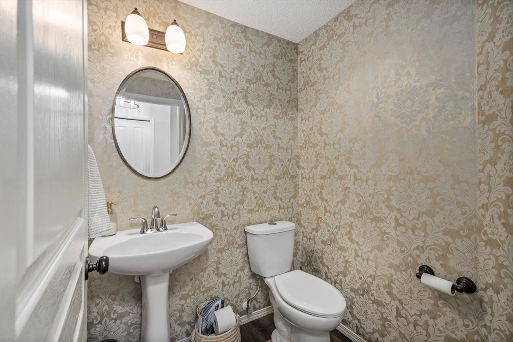 Step inside to a home that immediately feels inviting and thoughtfully finished. Designed for both comfort and everyday living, the space features luxury vinyl plank flooring and plush carpet throughout, paired with timeless granite countertops, Hunter Douglas blinds, and a cozy gas fireplace that anchors the main living area and sets the tone for the home. The kitchen is designed for ease with central vacuum and island kick, while main floor laundry adds everyday convenience. The fully developed basement expands your living space, perfect for movie nights, guests, or a home gym. Comfort and care shine throughout: air conditioning, new hot water tank (2022), new stove (2022), and furnaces that are professionally cleaned regularly with carpets cleaned annually. Storage is abundant with extra attic storage in the garage, plus a Vacuflo system. Step outside and you’ll find a backyard built for all seasons. Enjoy summer evenings on the two-tiered deck with cedar pergola and privacy shades, composite board landings, a propane rough-in for a fire pit on the lower patio, outdoor hot water bib, and hanging plant irrigation. There’s a shed, covered outdoor bicycle storage, and an extended driveway completed in 2024—perfect for extra parking or toys. This is more than a house—it’s a home that’s been loved, upgraded, and meticulously maintained. This beautifully maintained property offers the rare combination of a double attached garage complete with attic storage with a drop-down ladder plus a separate heated, fully finished single detached garage/shop—complete with electrical sub panel, more attic storage, alley access, and even a built-in basketball net on the concrete apron. Whether you’re dreaming of the ultimate man cave, workshop, or hobby space, this 200 sq ft heated shop (built in 2014) delivers. A rare opportunity in one of Airdrie’s most sought-after communities.