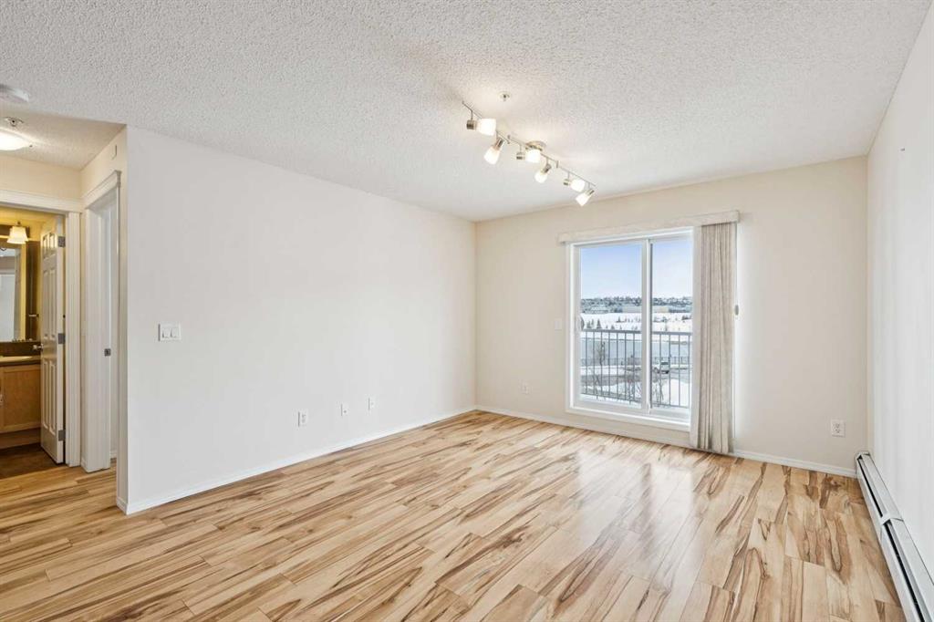 Welcome to this bright and spacious 2 bedroom + den condo in Lighthouse Landing, Country Hills, offering just over 840 sq.ft. of functional living space with beautiful pond views and incredible natural light. The open concept layout features a large living area with expansive windows and direct access to a private balcony overlooking the water, complete with a gas line for BBQ, creating the perfect space to relax and unwind. The kitchen flows seamlessly into the living space and is complemented by a dedicated dining area, while the den near the entrance provides an ideal setup for a home office or additional storage. Both bedrooms are generously sized and feature windows, including the primary bedroom with a walk-in closet and private 4-piece ensuite, while a second full 4-piece bathroom adds convenience for guests or additional occupants. Enjoy the added convenience of in-suite laundry, along with both an underground parking stall and a surface stall, plus a storage unit located directly in front of the underground space for easy access. Ideally located, you are just minutes from Country Hills Towne Centre, Superstore, Vivo Rec Centre, Landmark Cinemas, and countless restaurants and cafes. Quick access to Stoney Trail and Deerfoot Trail ensures an easy commute anywhere in the city, and Calgary International Airport is only 10 minutes away.