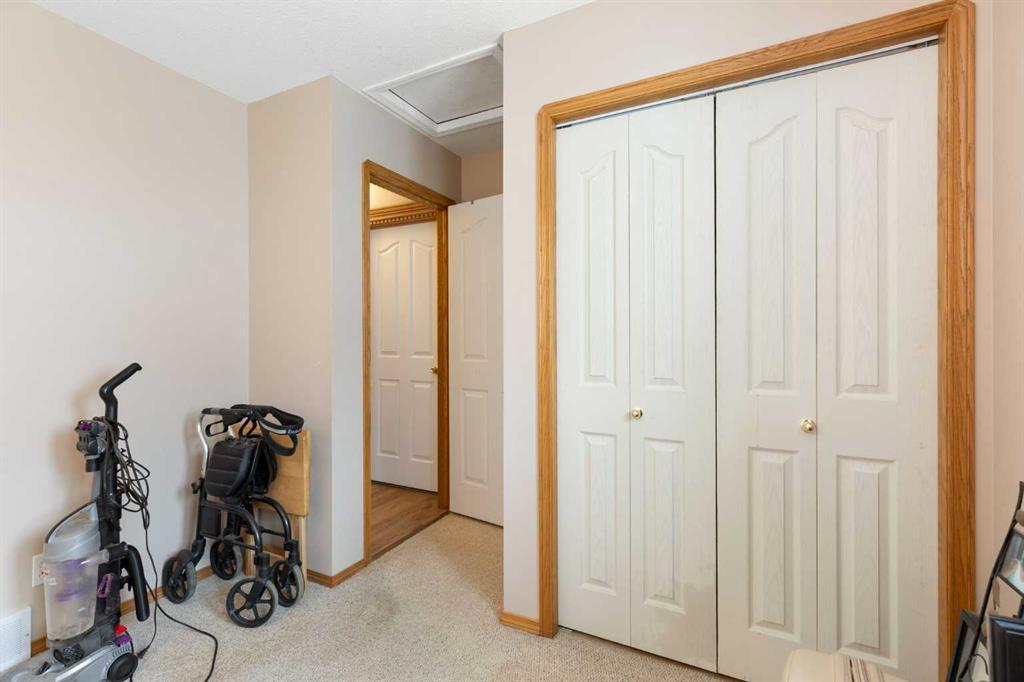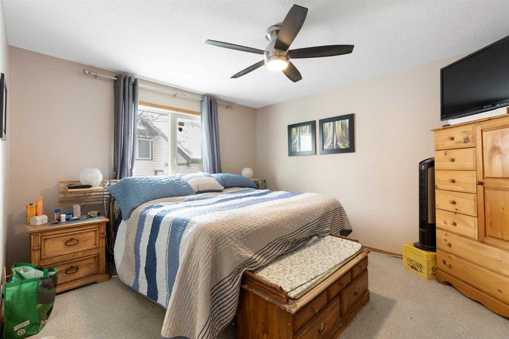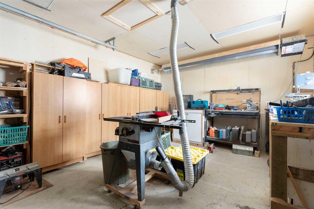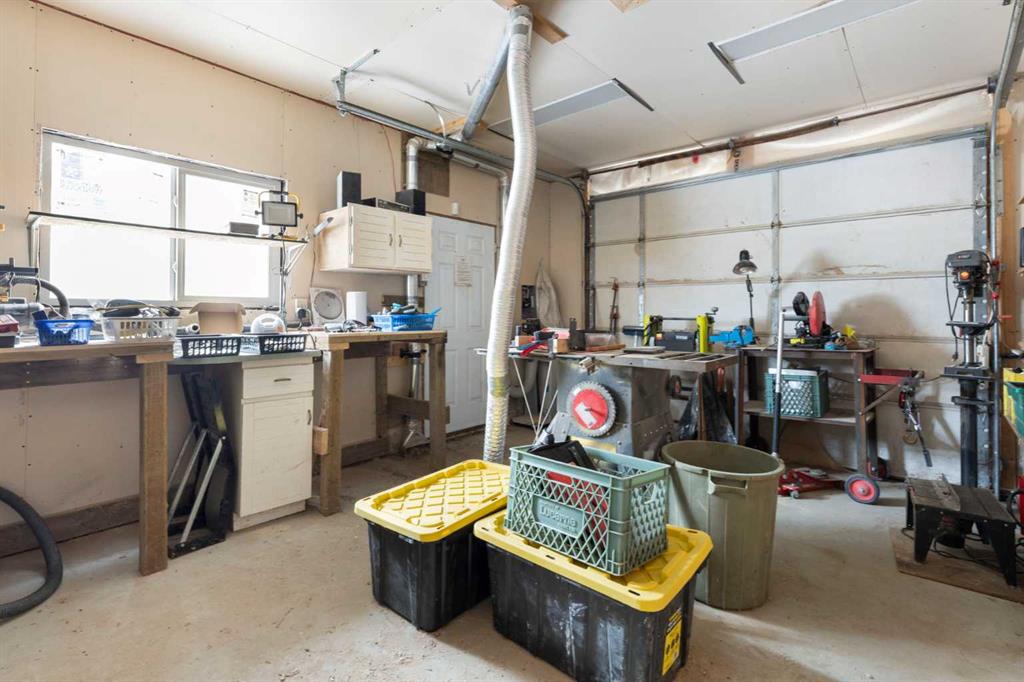 Welcome to this well-maintained and fully developed bungalow situated on a spacious, beautifully landscaped, corner lot in a mature, quiet area of Strathmore. Offering over 2,300 sq ft of developed living space, this home combines functional layout, generous room sizes, and the rare bonus of a second garage/workshop. The main floor features a bright and inviting living room filled with natural light, a dedicated dining area, and an updated kitchen complete with a central island, tile backsplash, and ample cabinetry for storage and prep space. There are three bedrooms (one currently used as an office) on the main level, including a comfortable primary bedroom with direct access to the 4-piece bathroom, creating an ensuite-style feel while still serving the main floor. Convenient main floor laundry adds everyday practicality. The fully developed basement offers exceptional additional living space, highlighted by a massive rec room with a cozy gas fireplace — perfect for movie nights or entertaining. The lower level also includes a large fourth bedroom with walk-in closet, a full bathroom featuring a relaxing jetted tub, plus utility and storage space. One of the standout features of this property is the garage setup. In addition to the attached double garage, there is a separate detached heated garage/workshop that is fully powered and ideal for hobbyists, woodworkers, mechanics, or anyone needing dedicated workspace. This flexible setup provides incredible versatility for storage, projects, or home-based business use. There is also a paved driveway in the yard that could be used for RV parking. Also outside, enjoy the large deck with privacy wall, mature trees, underground sprinklers in the flower beds and the privacy that comes with a corner lot. A rare opportunity offering developed space, functional layout, and the bonus of two garage structures — perfect for families, hobbyists, or anyone needing extra room to live and work.