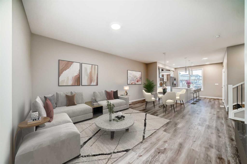 Boxing Day pricing starts NOW — brand-new specs, brand-new savings. Meet the brand-new “Heath,” a fresh take on a beloved layout that blends smart design with everyday comfort. Step inside to a bright, open main floor finished in warm luxury vinyl plank, with a versatile front flex room that suits a home office, homework zone, or cozy reading spot. The rear of the home opens to an inviting living room and an oversized dining area—perfect for weeknight dinners and weekend gatherings alike. Anchoring the space, the chef’s kitchen showcases wood-grain cabinetry raised to the bulkhead, crisp white quartz counters, a classic subway tile backsplash that wraps the standalone hood fan, stainless steel appliances, and a large island that makes prep, snacks, and conversation effortless. A generous back window brings in natural light, and the practical rear entrance keeps daily comings and goings simple. Upstairs, a centrally located loft creates a true second living space and smart separation between the sleeping quarters. The spacious primary retreat features a walk-in closet and a spa-inspired 4-piece ensuite with dual sinks, while two additional bedrooms share a well-appointed 4-piece bath. The upper laundry room keeps chores convenient and out of sight. A side/secondary entrance adds flexibility for future possibilities such as a guest, in-law, or private living area (subject to city/municipal approvals and permitting). Outside, the landscaping is complete—front and back—so you can enjoy the space from day one. Expect finished sod, mulched side yards, and thoughtfully selected trees/shrubs in the front that complement the streetscape and elevate curb appeal. And the setting? You’re in Mahogany—Calgary’s four-season lake community—where life revolves around water, parks, and connection. Enjoy two residents-only beaches, the Beach Club, tennis and sport courts, winter skating, fishing, playgrounds, and more than 22 km of pathways and preserved wetlands. Stroll to the Village Market for cafés, restaurants, fitness, and daily essentials, with the South Health Campus and Seton Urban District just minutes away. From paddleboards to sunset walks, the Heath puts a resort-style lifestyle within easy reach.