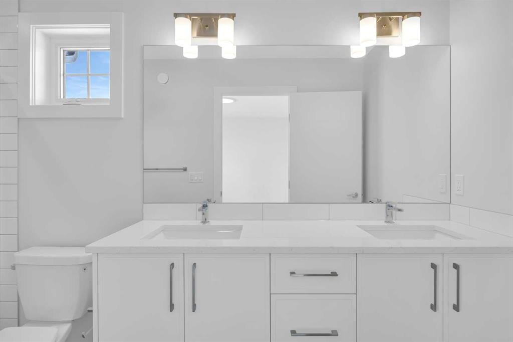 Welcome to The Edward by Partners, a brand new quick possession home in Logan Landing offering a rare fully developed two bedroom, two bathroom legal basement suite with a private side entrance. Positioned on a premium corner lot and complete with a 20’ x 21’ double detached garage, this home delivers exceptional flexibility for homeowners and investors alike. A rare main floor bedroom and full bathroom add immediate versatility, ideal for guests, a private office, or added living flexibility. Nine foot ceilings on both the main level and basement enhance the sense of space throughout. The kitchen is thoughtfully designed with full height cabinetry, upgraded quartz countertops with undermount sinks, under cabinet lighting, a chimney hood fan with built in microwave, and a Whirlpool stainless steel appliance package. The open concept layout connects seamlessly to the dining and living areas, creating a bright and functional environment for everyday living. Upstairs, the primary suite offers a walk in closet and a well designed ensuite with additional vanity storage, quartz surfaces, and a walk in shower. Two additional bedrooms, a central bonus room, and upper level laundry with washer and dryer included complete a layout that adapts easily to changing needs. The legal basement suite truly sets this home apart. Featuring two bedrooms, two full bathrooms, nine foot ceilings, walk in showers, and its own kitchen and living space, it functions as a fully independent residence. Whether used for consistent rental income, extended family, or mortgage support, this is a rare and highly desirable configuration. The double detached garage includes a 60 AMP subpanel and 50 AMP EV rough in, offering future ready convenience for electric vehicle charging and additional power capacity. Additional features include air conditioning rough in, knockdown ceilings, and quality finishes throughout. Located in Logan Landing with access to parks, pathways, and the Bow River, this property offers a strong balance of lifestyle, long term value, and income potential.