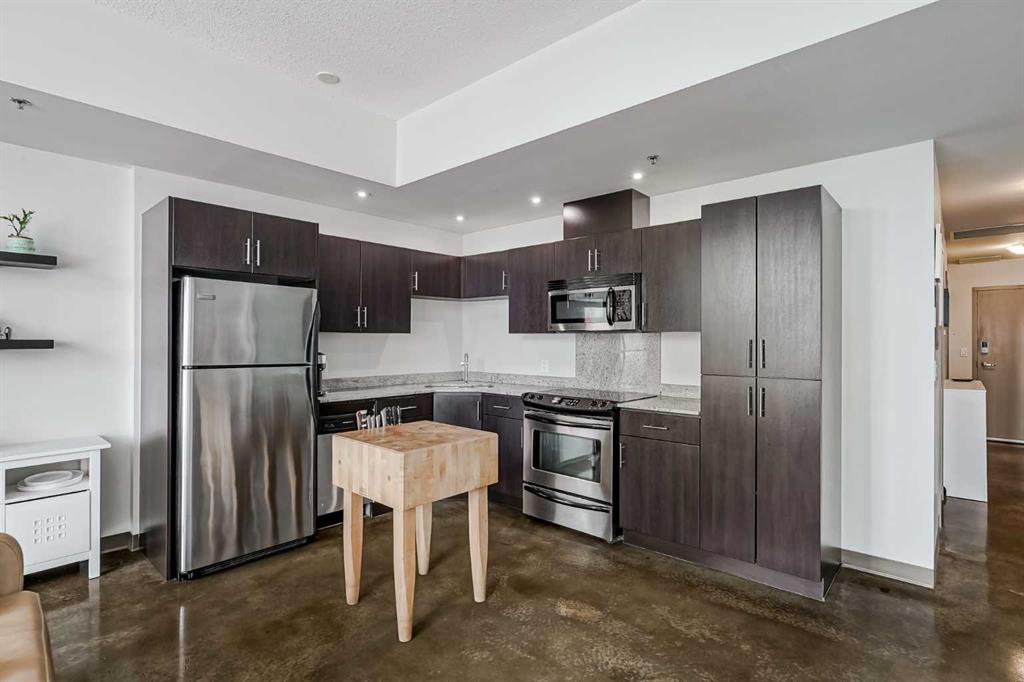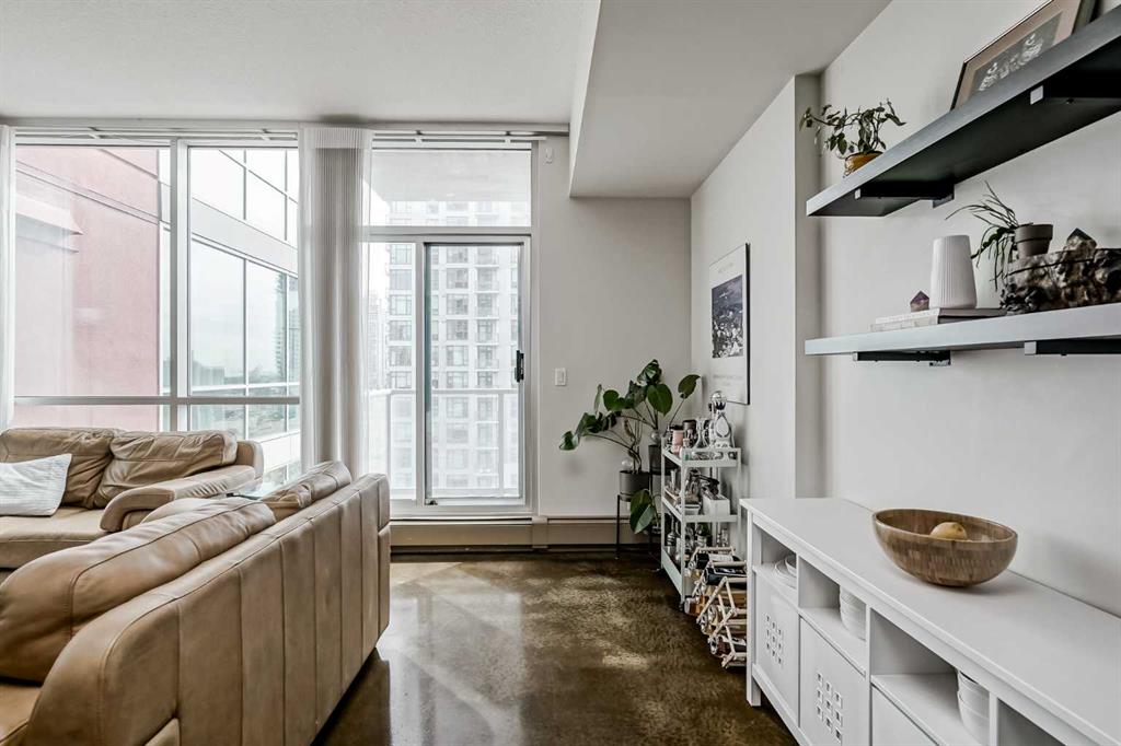 Welcome to Colours — where modern design, inner-city convenience, and urban energy all collide. This 2-bed, 2-bath condo isn’t just four walls and a roof — it’s a launchpad for your lifestyle, or a solid asset for your portfolio. From the moment you walk in, you’re hit with natural light streaming through floor-to-ceiling windows, highlighting polished concrete floors and those sleek, contemporary finishes that give the space its signature loft vibe. The open concept layout is versatile — big enough to entertain, yet perfectly functional for everyday living. The kitchen is a showpiece on its own, with granite countertops, stainless steel appliances, and modern cabinetry — whether you’re cooking for two, hosting friends, or just grabbing takeout, this space keeps up. The primary suite is a good size with its own 4-piece ensuite, while the second bedroom offers flexibility for a roommate, home office, or guest room. A sliding glass wall adds a modern twist, giving you the option to create privacy when you want it, or keep the flow open and airy. Step outside to your private balcony and take in the city from above. With glass railing and a built-in gas line for your BBQ, this space is perfect for summer grilling, morning coffee, or winding down as the city lights sparkle at night. And it doesn’t stop there. Living at Colours comes with perks designed for a modern lifestyle: secure bike storage, a shared rooftop patio for when you want a bigger hangout spot, heated underground parking, 24-hour surveillance for peace of mind, and a building that’s both pet-friendly and wheelchair accessible. The location? It doesn’t get better. You’re steps from Sunterra Market, the LRT, coffee shops, gyms, tennis courts, and some of Calgary’s hottest restaurants and nightlife. Work downtown? Your “commute” is now a short walk. Play downtown? You’re already there. Whether you’re a young professional chasing the ultimate downtown urban retreat, or an investor looking for a turnkey rental in one of Calgary’s most sought-after inner-city hubs, this condo checks all the boxes. Stylish, functional, and perfectly located — it’s everything inner-city living is supposed to be.