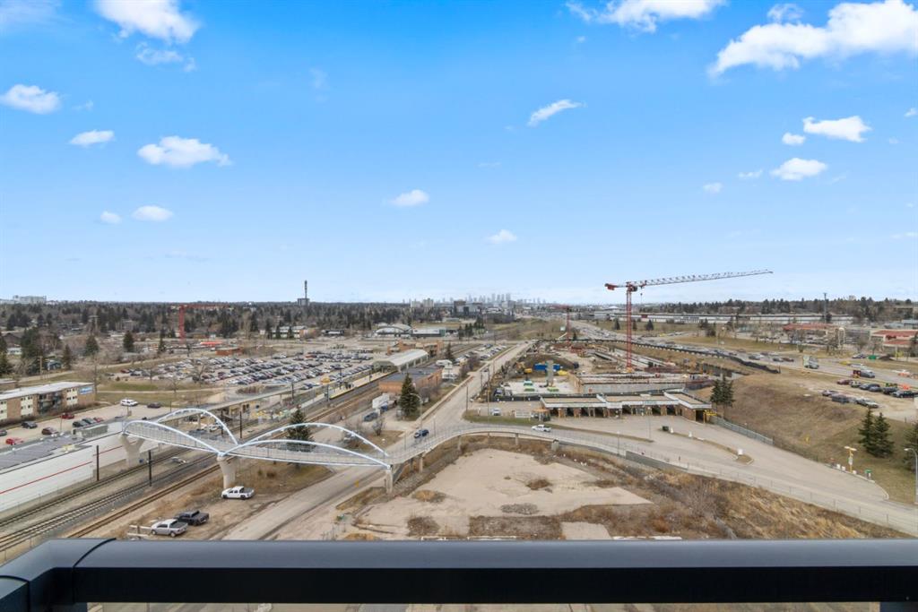 Welcome to the London at Heritage Station, where convenience, comfort and a touch of city energy all come together. This stylish one bedroom plus den offers a bright, open layout with just the right amount of space to live, work and unwind. Step inside and you’ll immediately notice how the kitchen flows effortlessly into the living area, creating a setup that feels both functional and inviting, perfect for everyday living or hosting friends. The kitchen is finished with granite countertops, dark cabinetry and a modern backsplash, giving it a clean, polished look. The living room opens onto your private balcony with a gas line, a great spot to relax and take in the views that stretch toward downtown and the mountains in the distance. The primary bedroom is generously sized and easily fits a king bed, complete with a walk through closet that leads to the main bathroom for added convenience. The den offers flexible space that can be used as a home office, reading nook or even a dining area depending on your needs. This well managed building is known for its unbeatable access and everyday ease, with 24 hour security, concierge service, secure package handling, heated underground parking and shared amenities including a rooftop patio and sunroom. What truly sets it apart is the direct indoor connection to shops, restaurants, Save On Foods and the Heritage LRT station, making commuting downtown or getting daily errands done incredibly simple. If you’re looking for a low maintenance home in a location that keeps everything within reach, this is one that delivers.