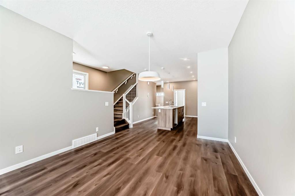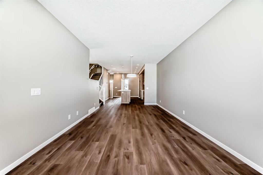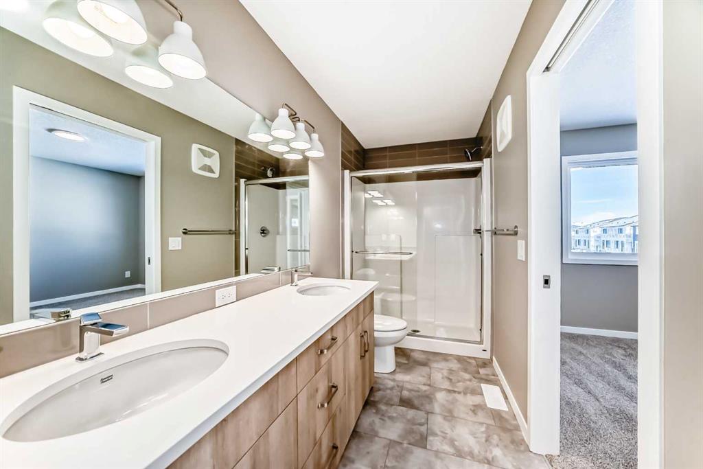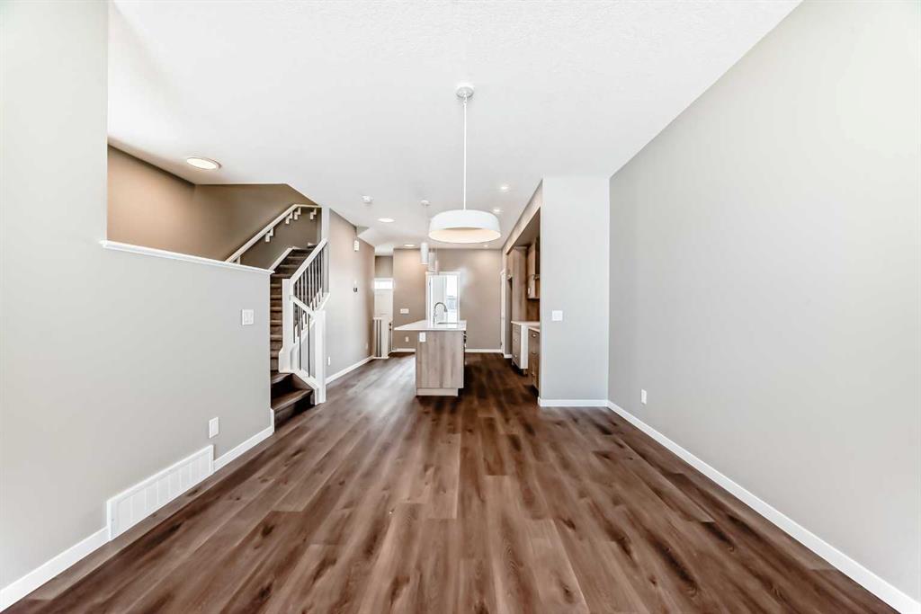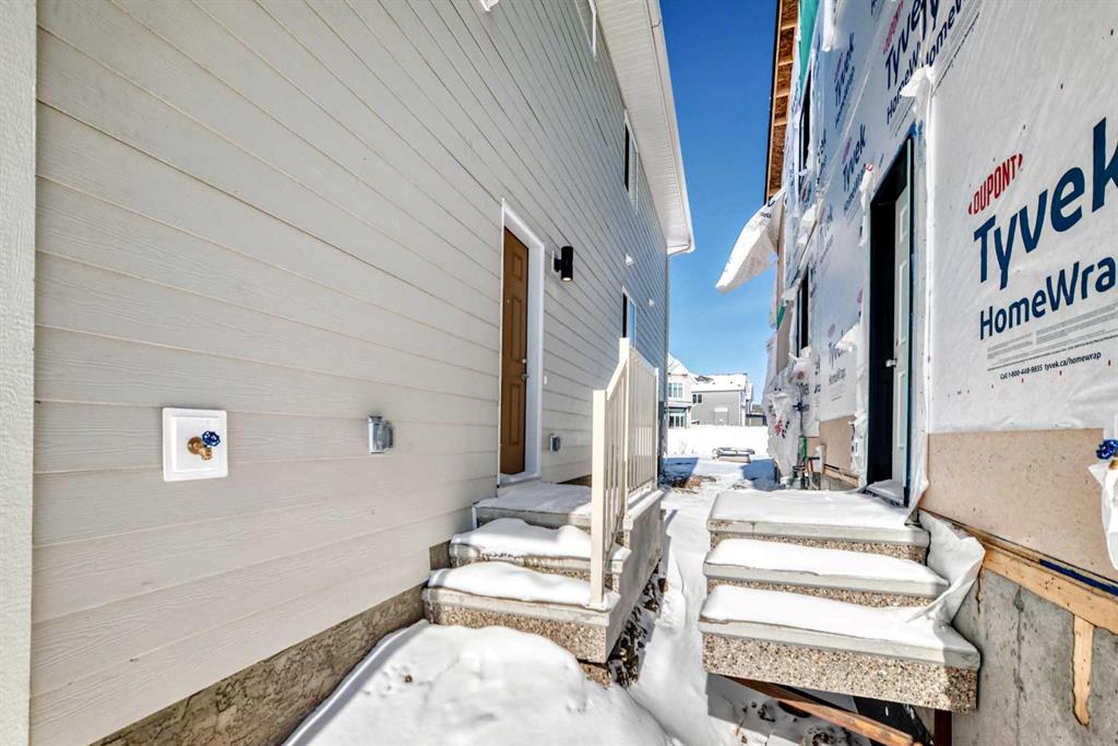 Welcome to the brand-new “Rayn” in Mahogany, a thoughtfully designed home that blends modern style, functional living, and family-friendly comfort. From the moment you step inside, the home makes a strong first impression with warm natural luxury vinyl plank flooring and a bright, contemporary interior that feels both welcoming and refined. The main floor is designed for everyday living and effortless entertaining with an open-concept layout that connects the kitchen, dining, and living areas seamlessly. At the heart of the home, the central kitchen features timeless white cabinetry extended to the bulkhead, sleek white quartz countertops, stainless steel appliances, and a marble-inspired backsplash that wraps the stand-alone chimney hood fan for a clean, upscale finish. A large island provides plenty of prep space, casual seating, and a natural gathering place for family and friends. The dining area sits comfortably between the kitchen and living room with room for a full dining table, while the rear living room is filled with natural light from impressive floor-to-ceiling windows. A convenient rear mudroom entry with a 2-piece bathroom adds everyday practicality, while the versatile flex room just off the kitchen can easily function as a home office, playroom, study space, or quiet reading area. A raised homework or tech nook overlooking the main floor adds another thoughtful and functional touch for busy households. Upstairs, a central bonus room creates the perfect place for movie nights, a kids’ lounge, or a comfortable space to unwind. The primary bedroom is privately positioned at the back of the home and features a large window, a spacious walk-in closet, and a well-appointed 4-piece ensuite with dual sinks and a full-size shower. Two additional bedrooms are well sized for family or guests, and the upper-floor laundry and linen storage help keep daily routines organized and convenient. Adding long-term flexibility, the home also includes a separate side entrance, offering the potential for private lower-level development or the option to explore a future secondary suite (a secondary suite would be subject to approval and permitting by the city/municipality). Mahogany is one of Calgary’s most sought-after lake communities, centered around Calgary’s largest freshwater lake and a spectacular 21-acre beachfront. Residents enjoy year-round recreation including swimming, paddleboarding, skating, scenic wetlands, and an extensive pathway network. The vibrant Urban Village offers restaurants, cafés, shops, and everyday services, while nearby schools, playgrounds, and quick access to Stoney Trail, Deerfoot Trail, and the amenities of Seton—including South Health Campus—make daily life both easy and connected. Mahogany offers the perfect balance of resort-style living and city convenience.