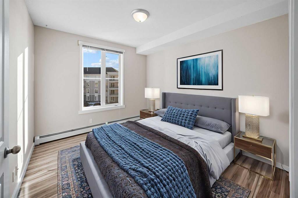The well-balanced layout features two spacious bedrooms, two full bathrooms, and in-suite laundry. The primary bedroom is complete with a walk-through closet and a private 3-piece ensuite. Positioned across the living area, the second bedroom enjoys excellent privacy and convenient access to a second 4-piece bathroom—ideal for family or guests.