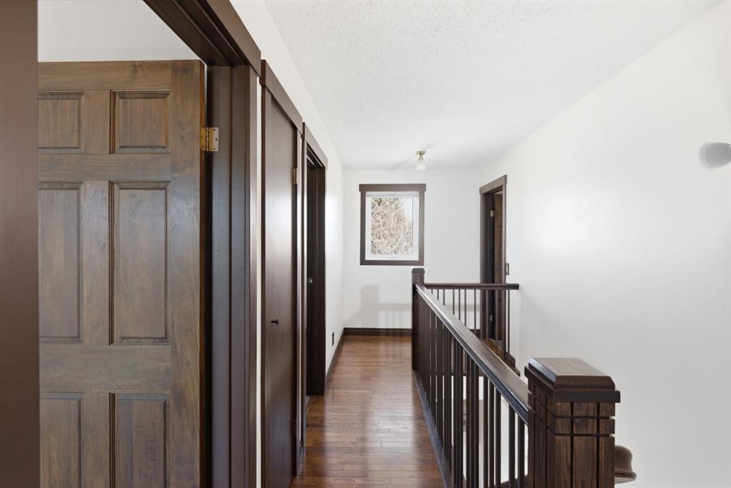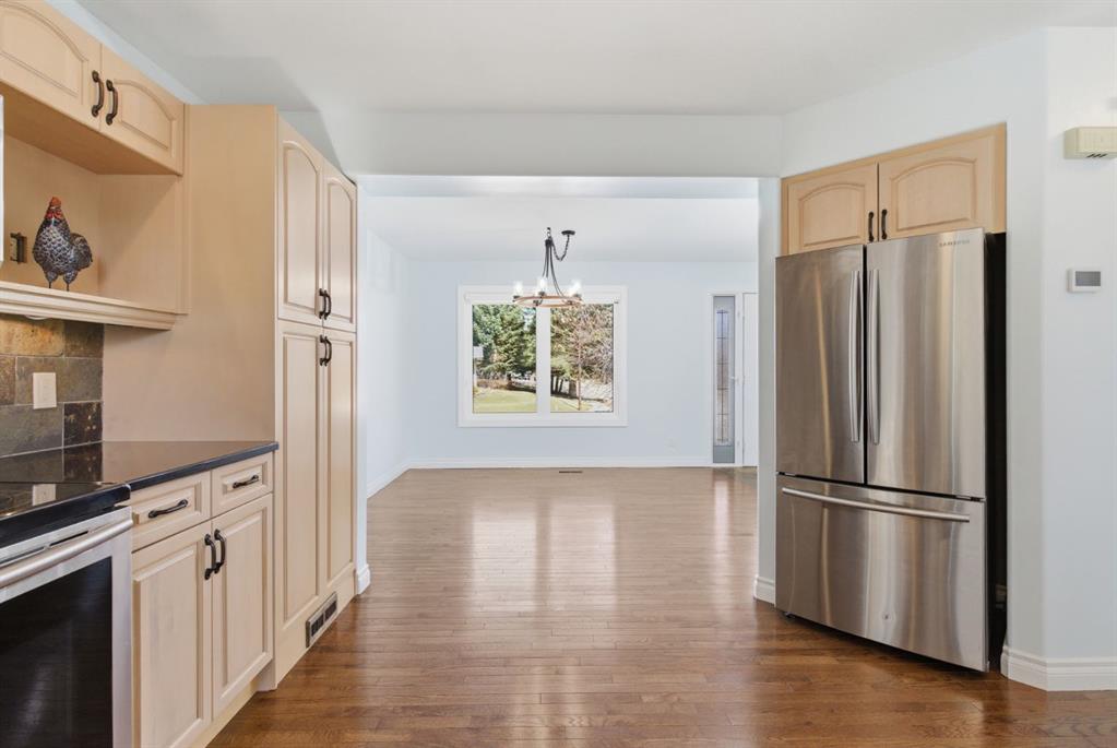 A thoughtfully, well-designed two-storey home with numerous improvements and upgrades is now available in the very desirable SE community of Bonavista Downs. This is a unique home in that it features two garages. The first is a front-facing, single (21’x12’), attached, insulated and heated garage with upgraded wiring, and finished interior which includes shelving. The front rubber-paved driveway offers additional parking. The second is an oversized double (25’ x 28’), heated, detached garage accessed from the paved alley, and has a finished interior which includes shelving, cabinets, and a workbench and is wired for 220 volts. Three bedrooms, 3.5 baths and 2,250 sq. ft. of living space on three levels. Upon entering the tiled foyer, the natural light flowing in from the upgraded triple pane windows on all sides is remarkable. Motorized window blinds allow you to control the light factor. The main floor is comprised of living room, dining room and kitchen and has warm hard wood floors throughout. To the left is the living room with woodburning, stone surround fireplace and enough space to experiment with various furniture configurations. The rear deck is accessed via French doors in the living room. To the right of the foyer is the dining room with ample room for entertainment and is adjacent to the kitchen. Cream cabinetry and plenty of it in the kitchen is a beautiful contrast to the dark granite countertops and tiled backsplash. Gleaming stainless appliances and a pantry add to the efficiency. A 2-pc. bath completes the main level. Moving upstairs, there is a combination of hardwood and laminate flooring. The primary bedroom is large and sunny with the benefit of a newly added walk-through closet and 4-pc. ensuite (double vanity). Two additional bedrooms, both with generous-sized closets, share a 4-pc. bath. The basement has been attractively finished and features a large, carpeted rec room with a second woodburning fireplace (both fireplaces passed WETT inspection in 2023). Across from the rec room is a tiled home office and tucked back of that is the laundry room with upgraded plumbing, venting and wiring; storage area and an upgraded 3-pc. bath. The house, attached garage and detached garage all have well-insulated (R40) attics. In 2023 the furnace was upgraded to a high-efficiency model with smart thermostat, a tankless water heater was installed and the humidifier was replaced. Both front and back yards are landscaped with lawn and mature trees. The back yard is fenced and has sprinklers installed. A bonus is your own hot tub. Well situated and close to Stoney, Deerfoot and Macleod Trails and Anderson Road. Proximity to shops and restaurants on both Macleod Trail and 130th Avenue; the Bow River; numerous schools (public and Catholic); churches; playgrounds; dog parks; Fish Creek Provincial Park and South Health Campus. This home has obviously been well tended as evidenced by the many upgrades and enhancements. Don’t miss out on this outstanding opportunity.