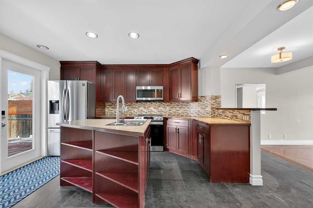 Located on a quiet street, this charming fully developed two-storey detached home offers a highly functional layout designed for everyday living and entertaining. The main floor welcomes you with an inviting living room that flows seamlessly into the dining area, creating a warm and cohesive space. The well-appointed kitchen is thoughtfully positioned nearby and features an island with breakfast bar, stainless steel appliances (all updated in 2021), ample cabinetry and counter space, and a convenient pantry. A two-piece powder room completes this level. Together, these living areas are ideal for hosting gatherings or enjoying quality family time. Upstairs, retreat to the spacious primary bedroom with a large closet, while two additional bright bedrooms and a four-piece bathroom provide flexibility for family, guests, or a home office. The developed basement adds even more living space with a comfortable recreation room, along with laundry and an additional den or storage room. Notable updates include a hot water tank (2021) and a high-efficiency furnace. Step outside to a low-maintenance backyard featuring a massive walk-around deck and patio—no grass means no summer upkeep. The oversized garage offers excellent storage, and RV parking is an added bonus. Ideally located close to playgrounds, parks, and Erin Woods School (just a five-minute walk), with shopping, amenities, an ice rink, and additional schools nearby. Quick access to Downtown, Deerfoot Trail, Stoney Trail, and Barlow Trail makes commuting a breeze. This well-loved home offers outstanding value and lifestyle convenience—book your showing today!