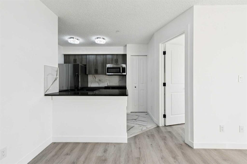 Modern, move-in ready living in the heart of Legacy. This fully updated 2-bedroom, 2-bathroom condo sits on the third floor with a west-facing exposure that brings in beautiful afternoon light. The open-concept design blends the living and dining areas seamlessly, offering a functional layout that works just as well for everyday living as it does for entertaining. A breakfast bar defines the kitchen space, while large windows throughout enhance the bright, airy atmosphere. Thoughtful upgrades include granite countertops, updated kitchen cabinetry, stainless steel appliances, fresh paint, and luxury vinyl plank flooring, delivering a clean, modern finish throughout. The primary bedroom features a walk-through closet and private 4-piece ensuite, while the second bedroom and full bathroom provide flexibility for guests, a home office, or shared living. In-suite laundry with full-size machines and extra storage add to the home’s practicality. Step outside to the spacious covered balcony, ideal for unwinding or hosting friends. This unit also includes a titled underground parking stall in a heated parkade, along with secure bicycle storage. Conveniently located near shopping, dining, parks, pathways, and the South Health Campus, with easy access to Macleod Trail, Stoney Trail, and Deerfoot Trail. Public transit is just steps away, making this a fantastic option for first-time buyers, downsizers, or investors looking for a stylish, low-maintenance home in a well-connected community.