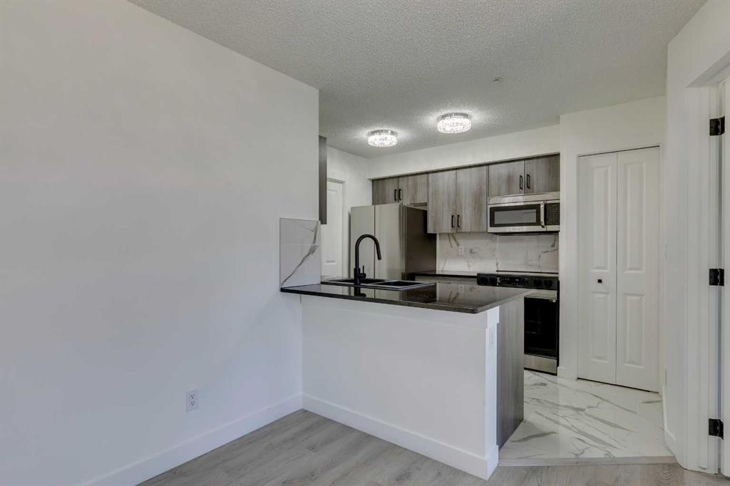 Welcome Home to Legacy Gate! Located on the 3rd floor of Building 1000, this west-facing, fully updated 2-bedroom, 2-bathroom condo is ideal for first-time homeowners, investors, or empty nesters. The bright, open-concept layout features a spacious living and dining area with a breakfast bar overlooking the kitchen. Large windows flood the space with natural light, creating a warm and inviting atmosphere. Upgrades include granite countertops, brand-new kitchen cabinets, stainless steel appliances, fresh paint, and luxury vinyl plank flooring throughout. The primary suite offers a walk-through closet leading to a private 4-piece ensuite. Enjoy the convenience of in-suite laundry with full-sized machines and additional storage. Step out onto the large, covered balcony—perfect for relaxing or entertaining. This unit comes with a titled parking stall in a heated underground parkade, which also includes secure bicycle storage. Situated close to shopping, dining, parks, walking paths, and the South Health Campus Hospital, with easy access to Macleod Trail, Stoney Trail, and Deerfoot Trail. Just steps from the #167 bus stop providing direct access to the Somerset/Bridlewood C-Train Station. Book your viewing today to see all that Legacy has to offer!