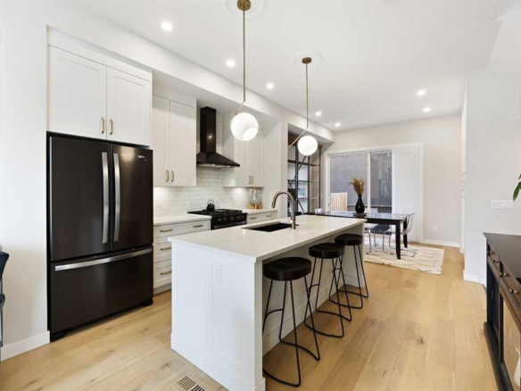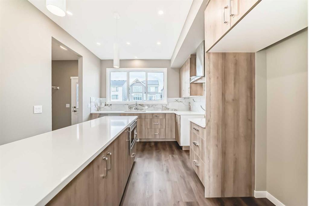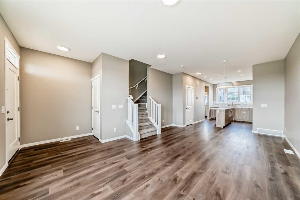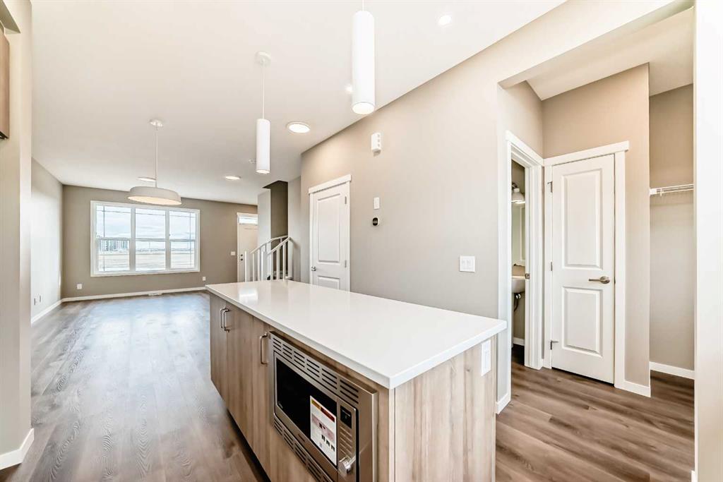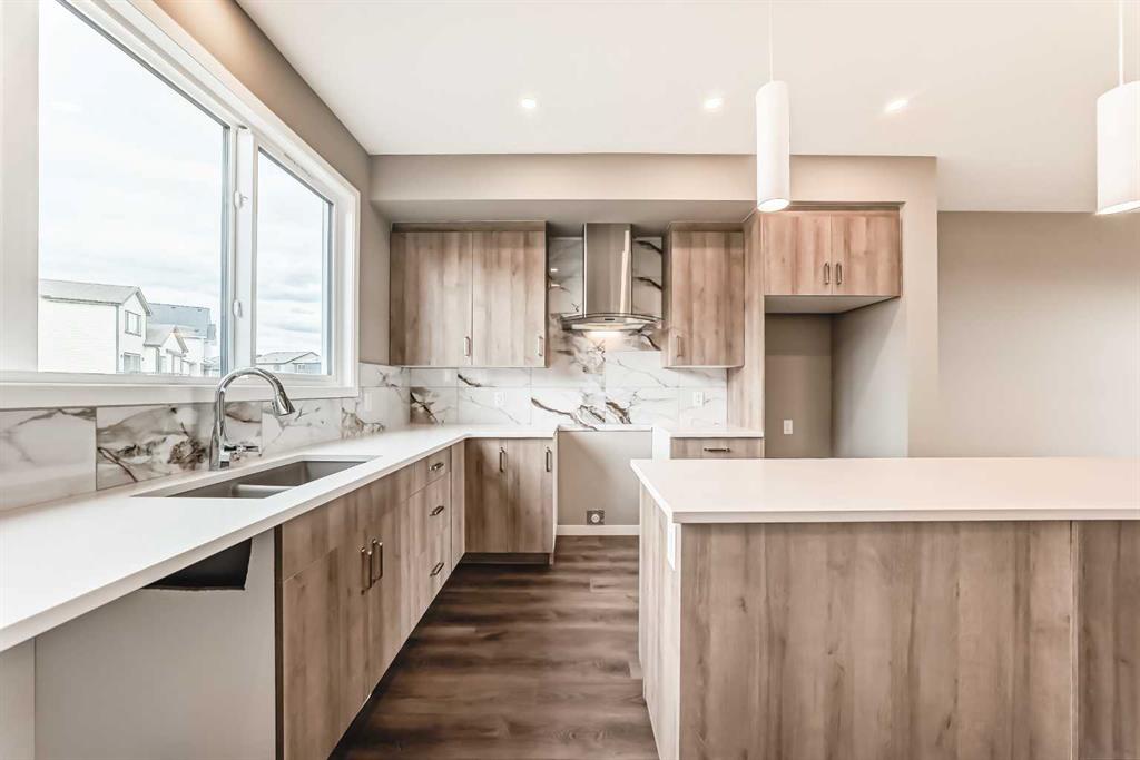 Welcome to the Zane by Hopewell Residential, a thoughtfully designed home that has become a favourite for its open-concept layout, functional use of space, and flexible bedroom design. Offering 1,260 sq. ft. of well-planned living space, this home blends comfort, style, and practicality in a way that suits both everyday life and special moments with family and friends. The main floor feels bright, warm, and welcoming, with an open-concept design that creates an easy sense of flow from one space to the next. At the front of the home, the lifestyle room offers a comfortable place to unwind or gather, while the central dining area helps connect the layout beautifully. At the rear, the kitchen serves as the heart of the home, featuring light wood grain cabinetry, generous storage, ample prep space, and a stylish backsplash with warm brown veining that adds softness and character to the space. The result is a kitchen that feels both modern and inviting — equally well suited to busy weekday routines and relaxed evenings of entertaining. A rear entry, added storage, and a discreetly placed 2-piece bathroom complete the main level with everyday functionality in mind. Upstairs, the thoughtful layout continues with a private primary bedroom at the front of the home, complete with a walk-in closet and its own 4-piece ensuite. Two additional bedrooms are positioned at the back, offering flexibility for children, guests, a home office, or creative space. A full 4-piece main bath rounds out the upper level and reinforces the home’s smart, balanced design. Downstairs, the basement adds long-term versatility with a separate entrance and 9’ foundation height, creating exciting possibilities for the future, whether that means additional living space, room for extended family, or potential for a future basement suite(subject to approval and permitting by the city/municipality). Located in the award-winning lake community of Mahogany, this home offers more than just beautiful interior living, it offers an exceptional lifestyle. Residents enjoy access to Calgary’s largest freshwater lake, two private beaches, the residents-only Beach Club, parks, playgrounds, scenic wetlands, and more than 22 kilometres of pathways. From sunny summer days spent at the beach or on the water to winter afternoons skating and enjoying the outdoors, Mahogany is a community designed around connection, recreation, and year-round enjoyment. Everyday convenience is close at hand as well, with shops, restaurants, cafés, groceries, and services nearby at Mahogany Village Market and Mahogany Village Commons, all helping make this one of Calgary’s most sought-after places to call home.