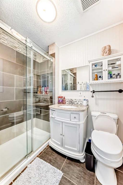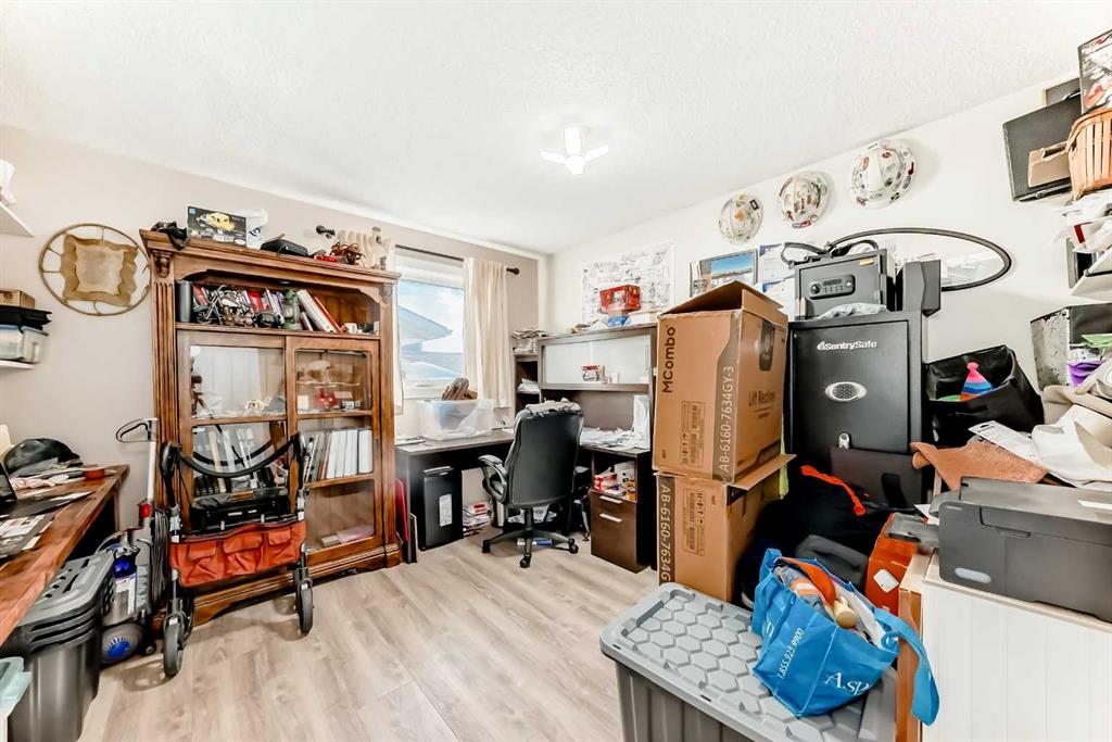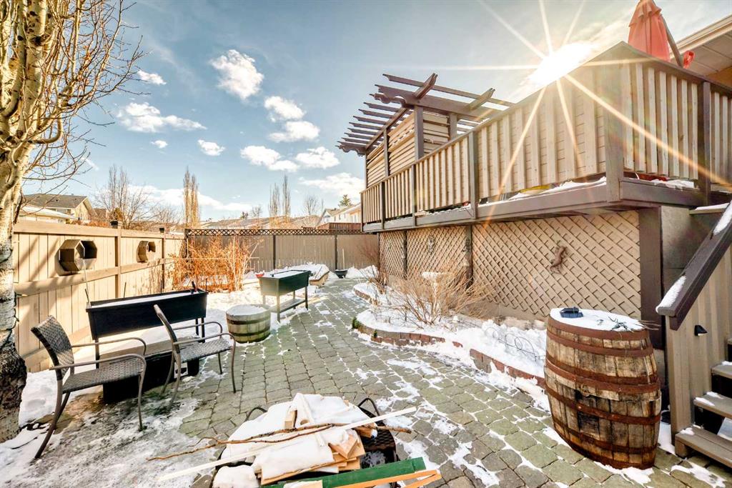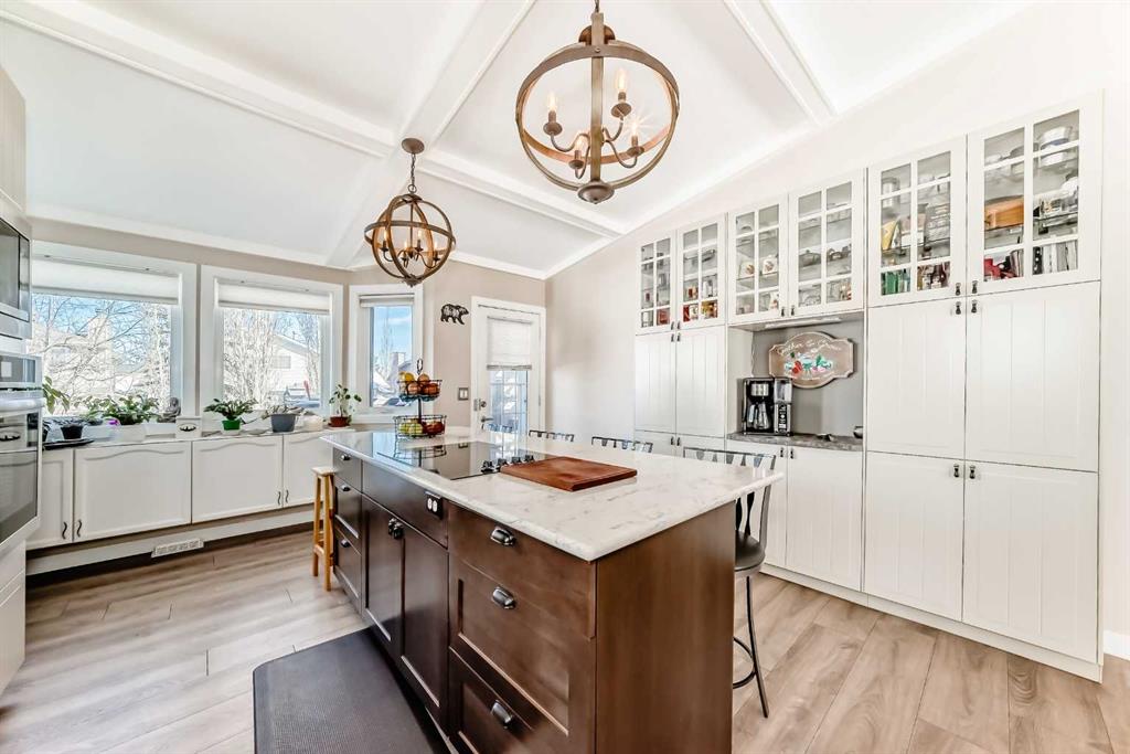 Welcome to this updated home offering a perfect blend of modern upgrades & timeless charm! Step inside to wonderful vaulted ceilings, living/dining room which is complemented by a cozy wood-burning fireplace with gas log lighter (cleaned in 2024). The main floor boasts luxury vinyl plank flooring, leading to a completely renovated kitchen featuring two-tone cabinets, quartz countertops, a massive 82” island, built-in coffee bar/pantry, upgraded appliances, & an under-mount sink with upgraded faucet. The spacious master bedroom includes a huge walk-in closet & 3 piece ensuite, while the good sized second bedroom, currently used as an office, offers versatility for your needs. The fully finished basement adds even more space with a large family room, 2 additional bedrooms with big windows & a 3rd full bathroom. Major upgrades include Poly B plumbing removal, a new furnace & 50 gallon hot water tank (2020), finished laundry & a garage door, opener/remotes (2024). The garage has upgraded wiring with extra plugs & lights. Enjoy outdoor living with a huge deck off the kitchen, a pergola, interlocking brick sidewalks, patio, & underground irrigation in the front yard. This move-in ready home is fully fenced & landscaped, providing both style & functionality. Don’t miss your chance to make this home your own.