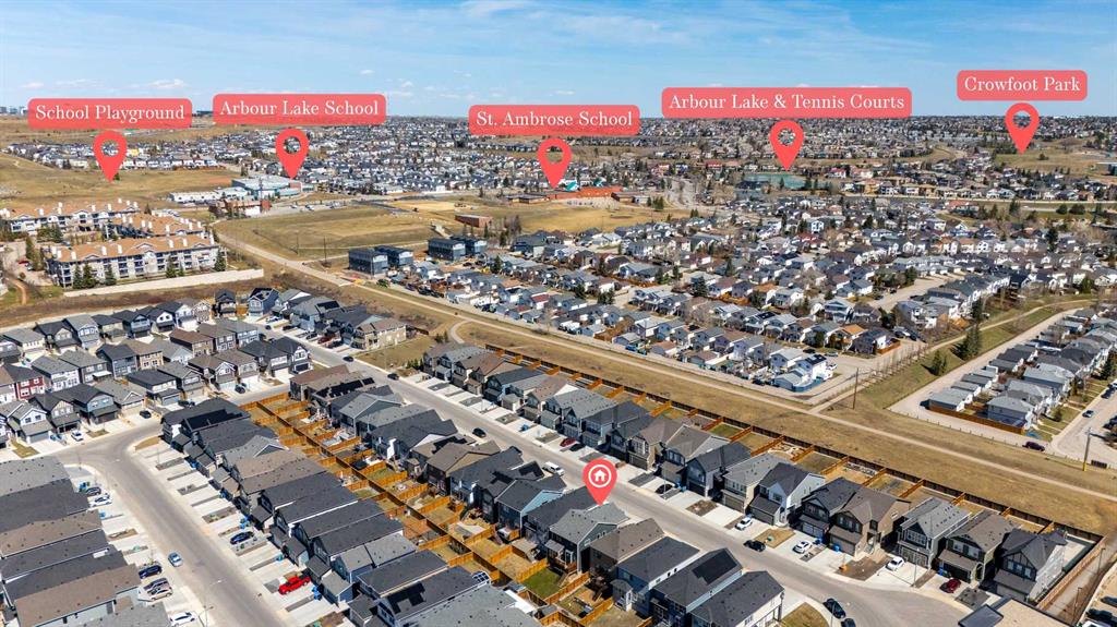 Welcome to this exceptional, like-new home in the highly coveted lake community of Arbour Lake – where modern design meets one of NW Calgary’s most desirable lifestyles. This meticulously maintained home offers the rare opportunity to enjoy a newer build without the wait, in a fully established neighbourhood. Boasting over 2,000 square feet above grade, the main floor delivers both impact and functionality. The open-concept layout is anchored by a stunning kitchen featuring a large central island, abundant cabinetry, and a dedicated pantry – seamlessly connecting to the dining area and spacious living room, creating the perfect environment for entertaining or everyday living. A main floor office and full bathroom add versatility that today’s buyers demand. Upstairs, the layout is designed with intention. A central bonus room provides separation and flexibility, ideal for a media space or family retreat. The primary suite is a true standout – generous in size with a walk-in closet and a well-appointed 5-piece ensuite. Two additional bedrooms, a full bathroom, and upper-level laundry complete a highly functional upper floor. The unfinished basement offers over 600 square feet of future potential – ready to be transformed to suit your lifestyle. What truly sets this home apart is its location. Arbour Lake is one of Calgary’s only NW lake communities, offering year-round lake access, scenic pathways, parks, and mountain views – all while being minutes from schools, shopping, and transit. A rare combination: newer construction, proven location, and immediate availability. Opportunities like this in Arbour Lake don’t come up often. Book your showing today!