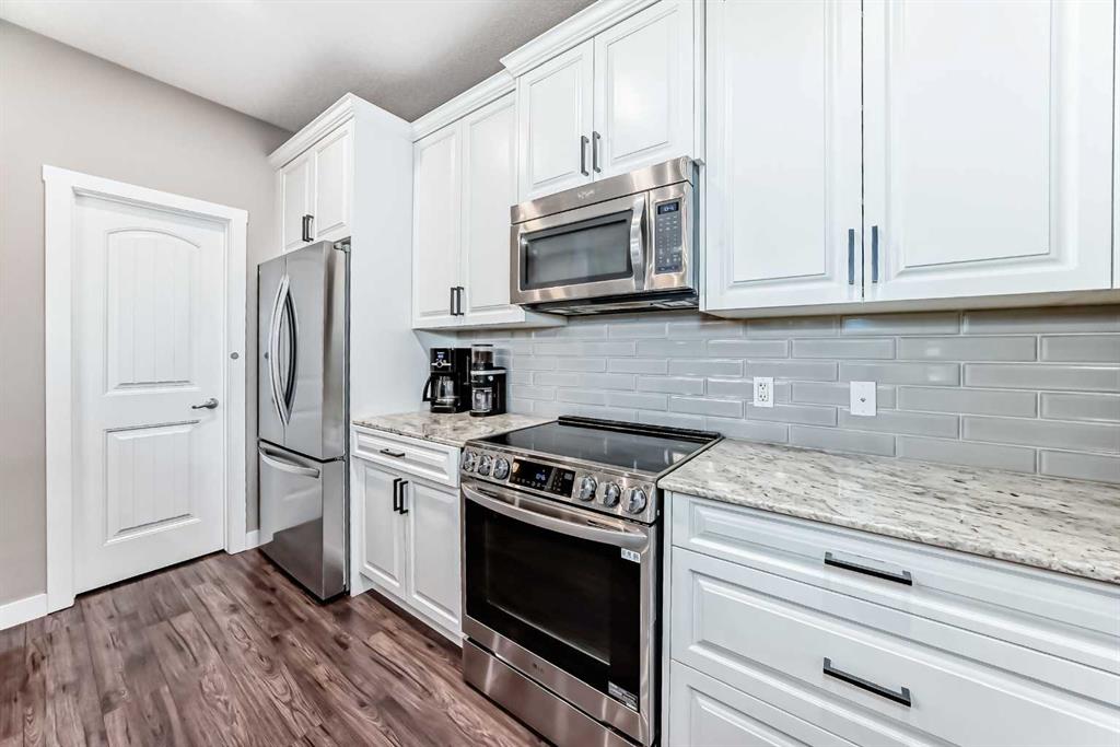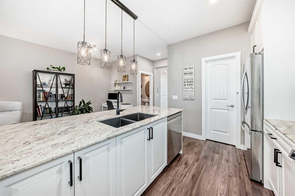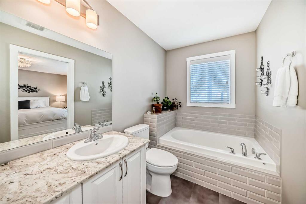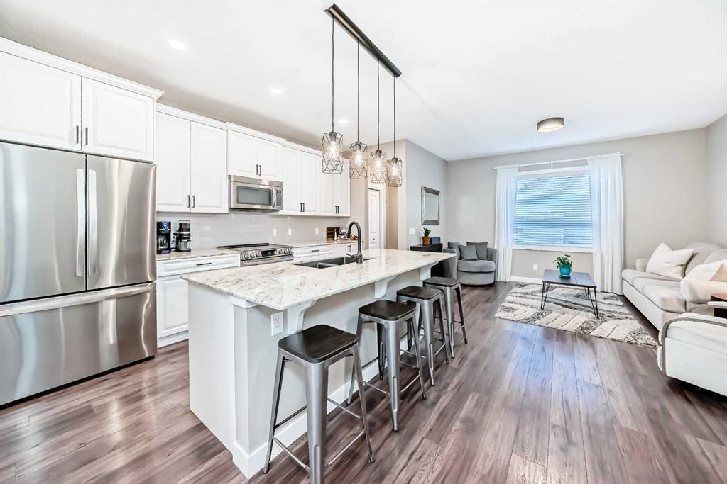 Open House Saturday, Mar 7th 1:30-3:30. Looking for a change of pace? Come and check out this stunning home whether you’re looking for a smart start or a great downsizing option this Centrally located home in the convenient Midtown neighbourhood of Airdrie offers a total of 4 bedrooms and 3 ½ bathrooms with numerous upgrades throughout. A covered front porch provides a welcoming entrance and a peaceful place to enjoy your morning coffee. The main level features vinyl plank flooring running seamlessly throughout which is both beautiful & durable for families & pets. Open front room can be used as a formal dining area, home office or 2nd living space. The stunning kitchen really is the heart of this home, large expanses of quartz counters, a newer suite of stainless appliances, corner pantry, loads of cabinets and a sit up island for casual meals and entertaining. It overlooks the living room and a great flex area that can be used as a dining room, or extra living space. The thoughtfully laid out upper level boasts new carpet, 3 bedrooms, a main 4 piece bathroom and a convenient separate laundry room. The Primary bedroom has a large walk in closet and a beautiful en-suite bathroom with a deep soaker tub & separate shower. The basement was professionally developed in 2024 with all permits in place. It features a spacious family room anchored by a gorgeous electric fireplace & mantle with heat & light settings, a large 4th bedroom and a stunning full 4 piece bathroom.