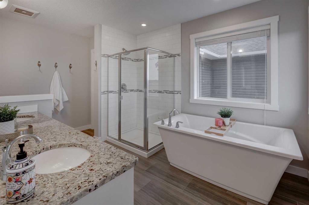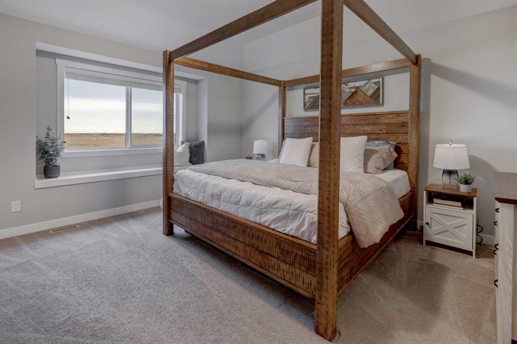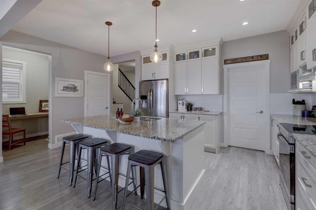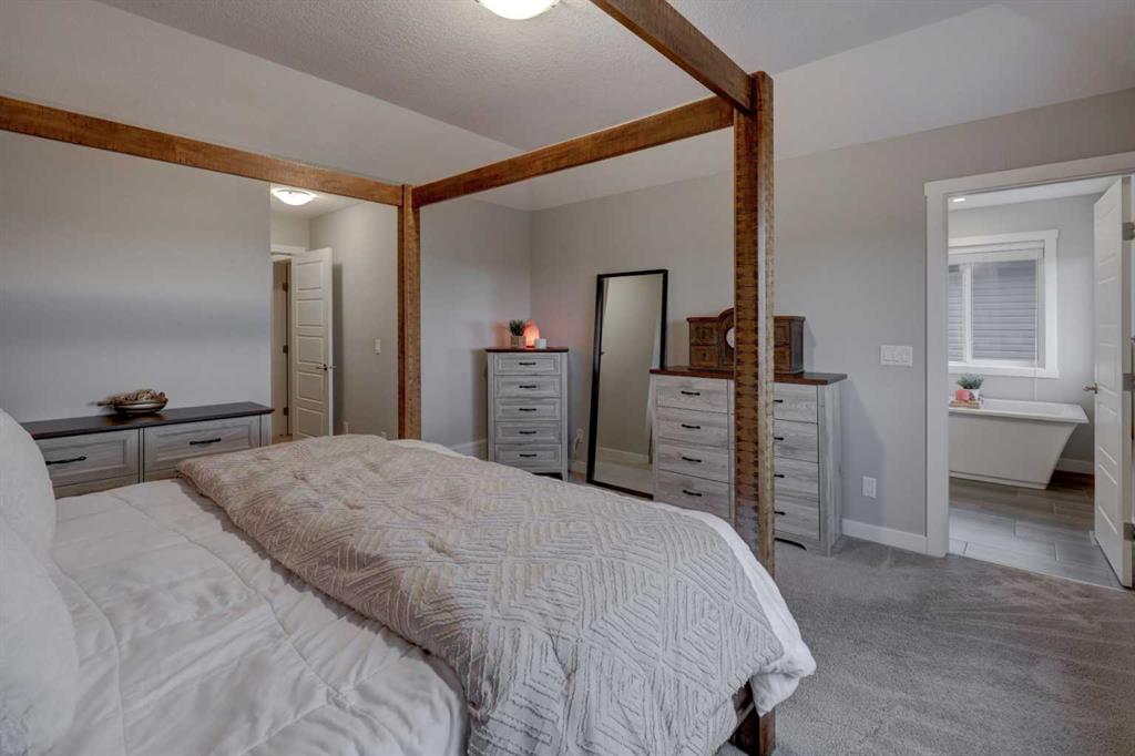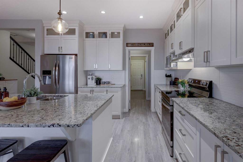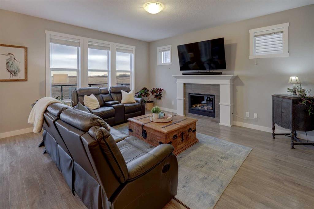 OPEN HOUSE | Saturday Feb 7th @ 2-5pm ** Stunning 4-Bedroom home with ALL the bells and whistles, backing onto a serene environmental reserve and creek, on a quiet street in Williamstown. From the moment you arrive, you’ll appreciate the low-maintenance front driveway and gravel yard accented with mature tree, plus the convenience of a double attached oversized garage. Step inside to an open foyer featuring durable laminate flooring, 9′ ceilings, and an organized front closet with built-in storage for coats and shoes. The heart of the home is the grand and elegant Kitchen, showcasing floor-to-ceiling white cabinetry with glass upper display cabinets, granite countertops, tiled backsplash, SS appliances, and a large eat-up island with sink—perfect for gathering and entertaining. A highly desirable double walk-through Pantry with built-in shelving connects seamlessly to the Mudroom, which is complete with built-in storage, a bench, and hooks. The main floor also features recessed lighting, and expansive windows that flood the space with natural light. The spacious Dining area easily accommodates a large table, while the inviting Living Room is anchored by a cozy gas fireplace with mantel. Step outside from the Dining Room onto the large back deck with glass railings, offering unobstructed views of the north-facing creek and nature reserve with NO neighbors behind for total privacy. Completing the main level is a charming Office Nook with its own window and a 2-pc bathroom with a pedestal sink. Up the elegant spindled stairs, you’ll find a massive Bonus Room with vaulted ceilings, perfect for movie nights or a kids’ retreat. The inviting Primary bedroom features a tray ceiling, an oversized window with a bench seat, breathtaking views and a massive walk-in closet! The luxurious 5-pc ensuite offers a standalone soaker tub beneath a window, dual vanities with granite countertops, and an oversized tiled walk-in shower. THREE additional bedrooms—each with their own closet—share an easily accessible 5-pc bathroom with dual vanities, granite counters, and ample storage. Finishing off the upper level is the convenient Laundry Room with tiled floors, shelving, and a linen closet. Downstairs hosts a partially finished basement, ready for your finishing touches. It already features Family room/Gym area, Rec Room space, and an abundance of storage. You can stay cool with the central air conditioning or enjoy the fabulous outdoor space this home offers. The fully fenced backyard comes with a stamped concrete pad, under-deck storage, and low-maintenance landscaping—the perfect place to soak in sunshine and serene views. Even the location is 10/10—ideally located close to schools, parks, walking paths, shopping, and amenities, with easy access for commuting. This home offers the perfect blend of space, style, and setting in one of Airdrie’s most family-friendly communities. Book your private viewing TODAY!