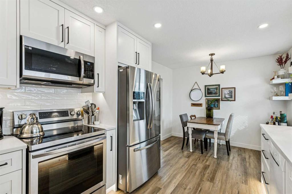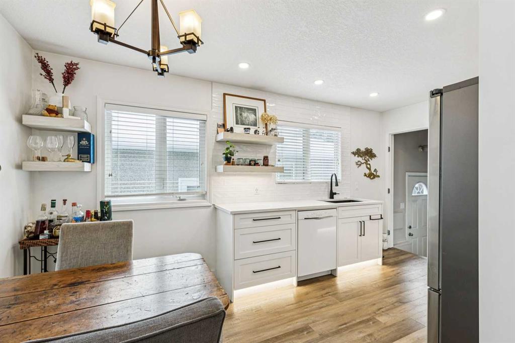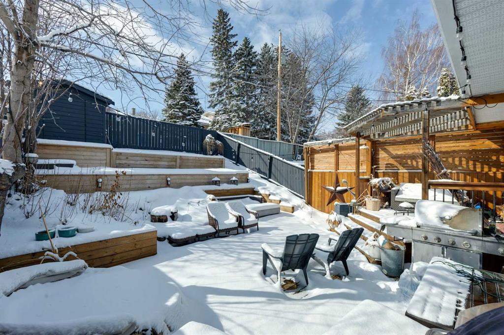 Welcome to Rosemont and this stunningly updated home with over 1700sf of developed space with 3 bedrooms and 2 full bathrooms. Location is primo with access to great public schools, including U of C and SAIT, transit corridors, restaurants and retail. Simply hop on your bike or walk to Confederation Park, a 160 hectare urban oasis. The home has had many upgrades throughout the years, furnace 2016, roof 2012, new vinyl windows & doors 2010s. The upstairs underwent a facelift in 2023 with new luxury vinyl plank floors throughout the main level, along with new baseboards and flush mount lighting. The kitchen is bright and full of updates – new white full height cabinets with toe kick lighting, built in pantry, quartz countertops with undermount sink, Stainless Steel Appliances, and functional floating shelves in the breakfast nook. Both upper bedrooms have closet organizers. The sliding doors open onto the Private Dream Yard. The fully fenced back yard is a stunning oasis perfect for entertaining. Low maintenance landscaping allows you to simply enjoy the company of friends around the firepit or soak up the sun with a good book. The lower level offers a generous sized bedroom (with non egress window), full bathroom, massive family room with electric fireplace, loads of storage and laundry pair. There is a separate side entrance for the basement and lots of street parking out front. Beautiful and quiet tree lined street with proximity to downtown make this a perfect place to call home.