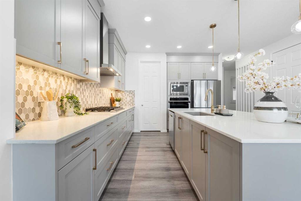 From the moment you enter, you are welcomed by soaring 9-foot ceilings and impressive 8-foot doors that create a grand, open atmosphere. The thoughtfully designed main floor showcases office/flex room, Powder room and a seamless open-concept layout ideal for both everyday living and entertaining. The chef-inspired kitchen is beautifully appointed with built-in appliances, premium finishes, and sophisticated gold fixtures that add a touch of modern luxury throughout the home.