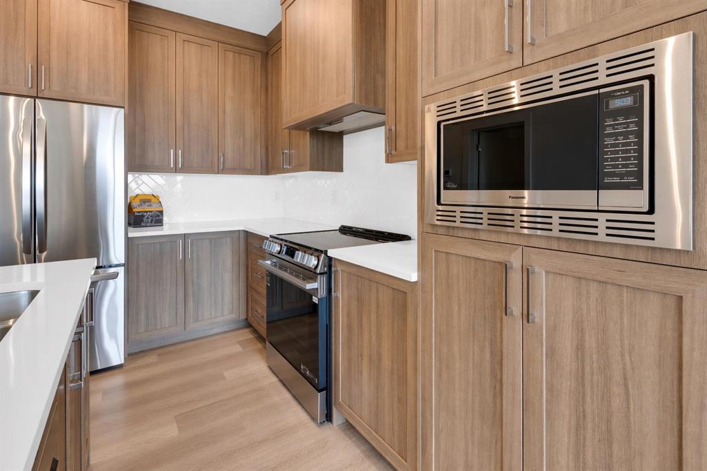 The main floor offers 9′ ceilings and a bright open layout that feels easy to live in and perfect for gathering. The kitchen is thoughtfully finished with quartz countertops, ceiling height cabinetry, and upgraded details that bring both style and function together. A built deck extends your living space outdoors, creating the perfect spot to unwind or host. The main floor also includes a dedicated office and a full 3 pc bathroom, adding flexibility and convenience.