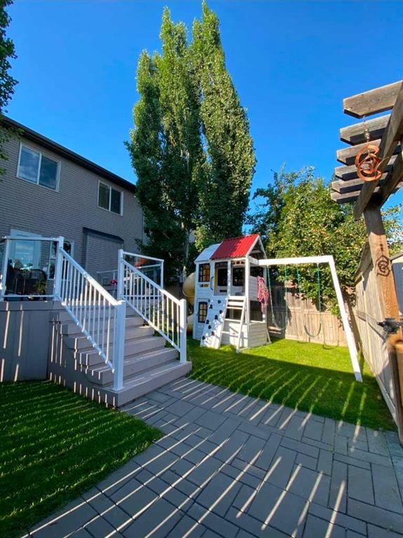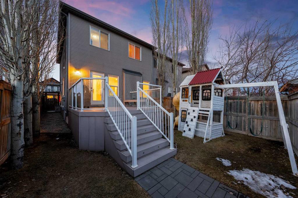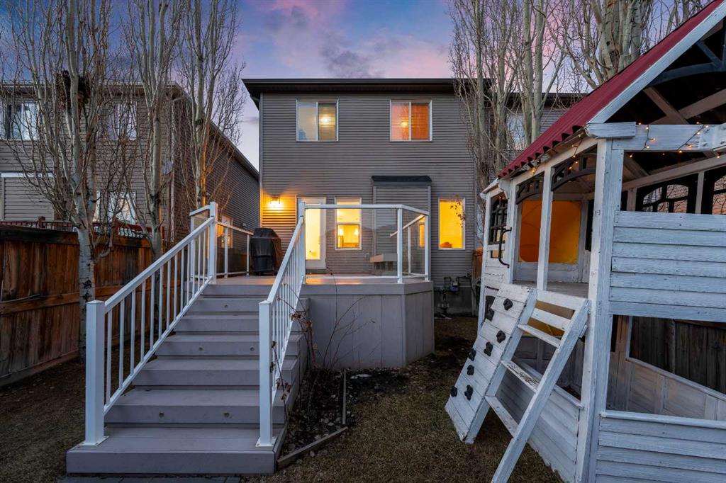 Welcome to this immaculately maintained Morrison-built two-storey home in the highly sought-after lake community of Auburn Bay. Offering approximately 1,460 sq. ft. above grade, this beautiful property immediately stands out with its exceptional pride of ownership, thoughtful updates, and impressive curb appeal. From the moment you arrive, you will appreciate the professionally landscaped yard, raised garden beds, and eye-catching stamped concrete walkway that create a warm and inviting first impression.