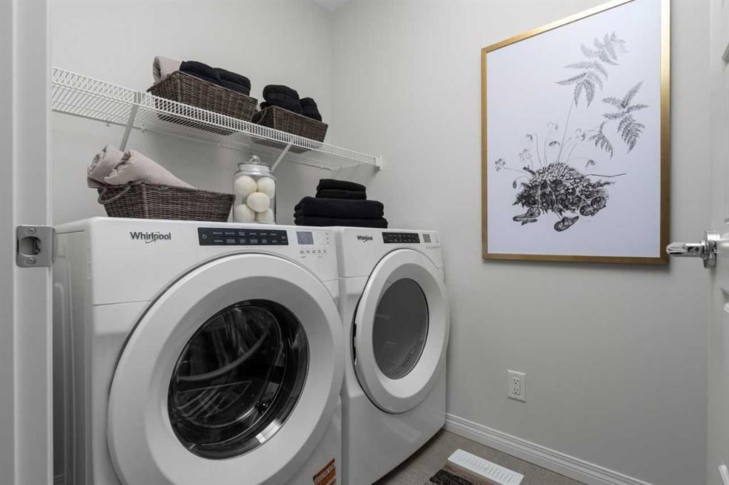 THIS IS A SHOWHOME AVAILABLE THROUGH LEASEBACK – the builder will temporarily rent the home back after possession and it will continue to be used as a showhome. Beautifully designed Raeya showhome by Trico Homes, featuring a fully legal 2-bedroom basement living space. This well-appointed property offers an open-concept main floor with a spacious kitchen, large island, walk-in pantry, and a flexible main floor room. The upper level includes three bedrooms, a bonus room, and a well-planned layout for family living. The legal basement living space includes two bedrooms, a full kitchen, laundry, and a comfortable living area. Additional features include air conditioning, a full appliance package, and a double detached concrete parking pad with a retaining wall. The home has been professionally maintained and is covered under the Alberta New Home Warranty Program. Photos are representative.