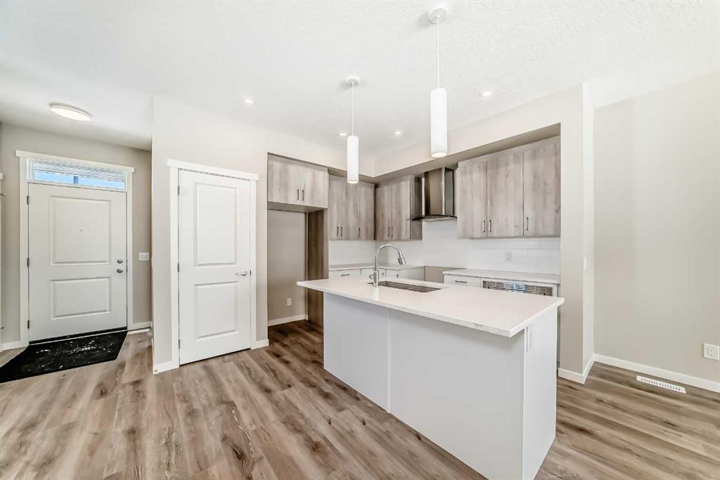 Welcome to the Barwell in Mahogany, an intelligently designed laned home that blends everyday function with elevated lifestyle appeal in one of Calgary’s most sought after lake communities. Offering 1,515 sq. ft. of thoughtfully planned living space, this brand new home delivers the comfort, style, and flexibility today’s buyers are looking for. The main floor is bright and inviting, featuring 9’ ceilings and durable luxury vinyl plank flooring throughout. At the front of the home, the spacious living room creates a warm and welcoming place to relax or gather with guests, while the heart of the layout unfolds into a beautifully arranged L-shaped kitchen with sleek quartz countertops, contemporary cabinetry, and plenty of prep and storage space. Just beside it, the generous dining area is perfectly positioned for family meals, casual entertaining, or hosting friends. Tucked discreetly off the kitchen, a convenient pocket office adds valuable versatility for working from home, managing daily routines, or creating a dedicated study space. Upstairs, the layout continues to impress with three well-proportioned bedrooms, including a spacious primary retreat designed to feel like a true escape. The ensuite features a tile-to-ceiling shower that adds a polished, upscale touch to your daily routine. Thoughtful finishing details such as painted spindle railings on the main level and knockdown ceiling texture contribute to the home’s clean, modern aesthetic. A separate side entrance opens the door to future possibilities in the basement, whether for extended family, added flexibility, or future income potential (a secondary suite would be subject to approval and permitting by the city/municipality). The basement also includes a wet bar rough-in, making it even easier to bring your future development ideas to life. One of the standout features of this property is the lot itself. The oversized side yard offers a rare opportunity for buyers who value outdoor space and flexibility. Whether you envision an expansive backyard retreat, room for kids or pets to play, a stunning outdoor entertaining area, or even the potential for a larger garage configuration, this unique lot gives you options that are hard to find in this style of home. It’s the kind of space that lets you truly create your dream backyard. Beyond the home itself, Mahogany is a community that needs little introduction. Known for its four-season lake lifestyle, residents enjoy access to Calgary’s largest lake, private beaches, a Beach Club, extensive parks and playgrounds, and over 22 kilometres of community pathways, along with natural wetlands and scenic open space. Local shops, restaurants, and everyday amenities are also woven into the community, making it easy to enjoy both convenience and recreation close to home. It’s a neighbourhood built around connection, outdoor living, and lifestyle—where summer days can be spent at the lake, evenings on the pathways, and everyday errands are just minutes away.